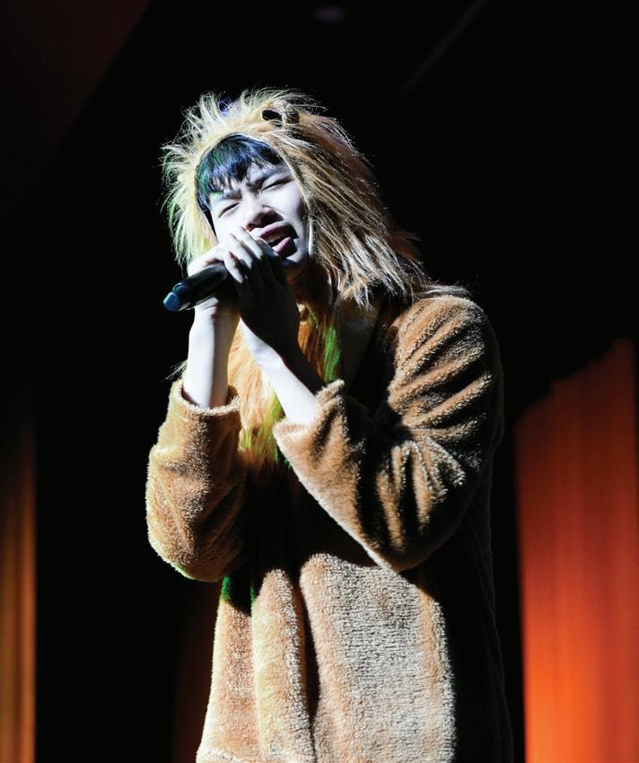 在这次学校的春节活动 The Sing!唱歌比赛中,我 唱了 “天亮了”。虽然没能获奖,但我仍然很感激 这次机会。用不常用的语言演唱一首歌确实充满 挑战,不过我对自己的表现感到满意,也希望观 众们在欣赏我的表演后能够记住我的声音。