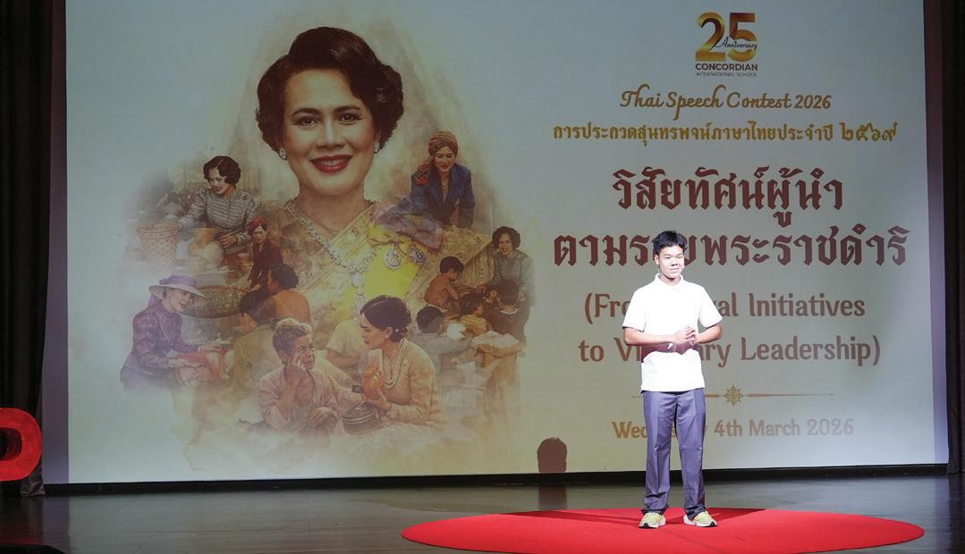 The 2026 Thai Speech Contest at Concordian International School was more than a language competition—it was a meaningful opportunity for students to reflect on values, leadership, and the power of communication. Organized as part of the Thai Language, Thai Culture, and Thai History program, the contest encouraged students to explore how the life and royal initiatives of Her Majesty Queen Sirikit, The Queen Mother, continue to inspire moral values and visionary leadership.