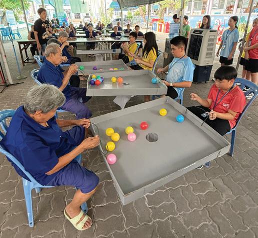 On March 3rd, students introduced a simple ball game the club had built (and later donated), and what began as a small activity quickly turned into a lively moment of laughter as students and residents played side by side. Club members also spent time painting with the residents, giving them a chance to express their creativity while chatting and connecting with the students. Finally, Students also shared traditional Thai desserts with the residents as a small treat.