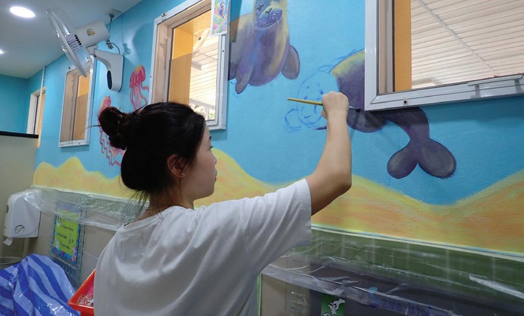 What made the project especially meaningful was creating something specifically for younger students to enjoy. The mural transforms the wall into a lively and imaginative scene, helping to create a more positive and inspiring environment. It is rewarding to know that our work can brighten their daily experience at school.