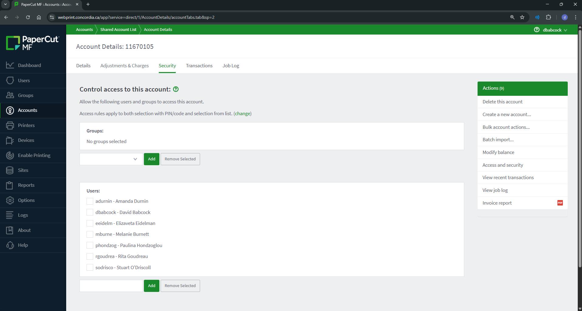 1. Under “Print job actions”, select “Charge to Shared Account”.