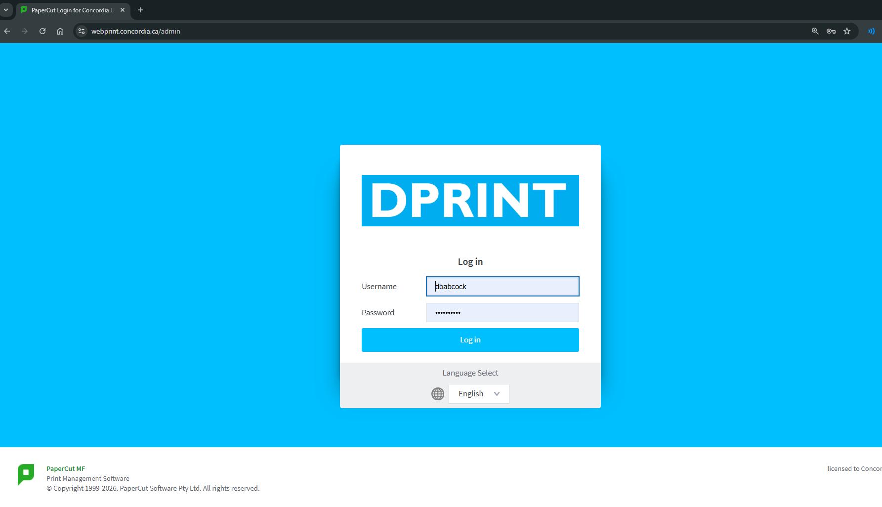 1. Log into “webprint.concordia.ca’ with your netname and password.