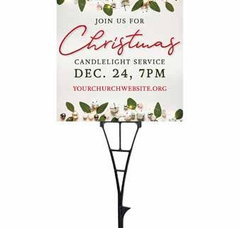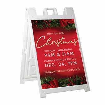 Whether displayed on local streets or nearby neighborhoods, outdoor signage is an effective way to let your community know about your Christmas services, while adding a festive touch to your church's permanent outdoor signage. We recommend putting your signage up at least 3-4 weeks ahead of your services to ensure your invitation is seen by as many people as possible.