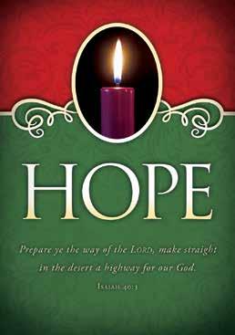 ADVENT SUPPLIES (left to right) : Hope 11" bulletin, U4352, $8.99/pack of 100 (page 31) 11" bulletin, AP2190, $8.99/pack of 100 (page 31)