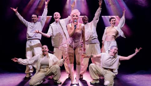 Cake: The Marie Antionette Playlist is a brand-new musical, which defies our expectations of what a musical can be. Since the mass popularity of Hamilton, the world was introduced to historical figures they knew in a modern, hip-hop, and rapping retelling. Other creatives eagerly jumped on board. Six went one step further, placing the familiar six queens married to Henry VIII, in a concert setting belting out pop ballads. It was clear from the moment I sat down in my seat at Norwich Playhouse, and saw a mannequin sporting Marie Antionette’s cage-skirt drowned in pink spotlights, positioned behind a microphone, Cake aspired to be what Six successfully is.