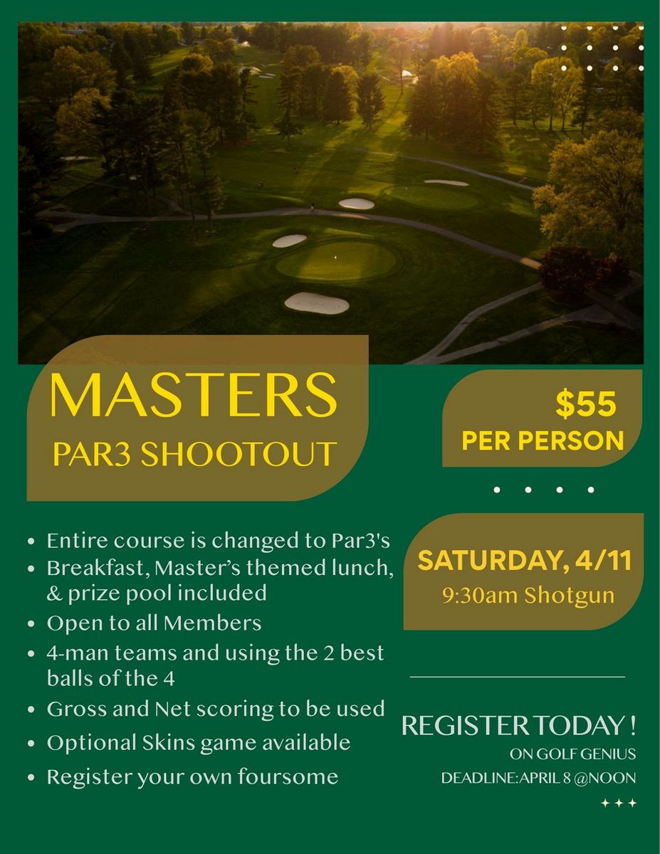 April is shaping up to be a busy and exciting month There are a number of great events and activities planned, so I encourage you to take a few moments to review everything included in this newsletter. It is hard to believe that summer is right around the corner, and with that comes so much to look forward to including junior golf league, junior clinics, swim team, ladies and men’s golf events, and a full calendar of social events I recommend taking a look ahead and marking your calendars to ensure you get the most out of your club experience.