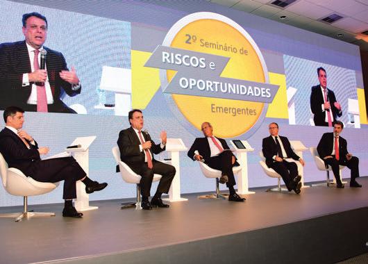 Como o setor de seguros vive as tecnologias disruptivas? Até 2020, o mundo investirá US$ 37 bilhões (cerca de R$ 118 bilhões) em pesquisas de inteligência arti cial. Entre os players mais ousados, o jornalista João Mostacada, da Globonews, moderador dos debates, citou a Lemonade, seguradora digital lançada há um ano baseada em