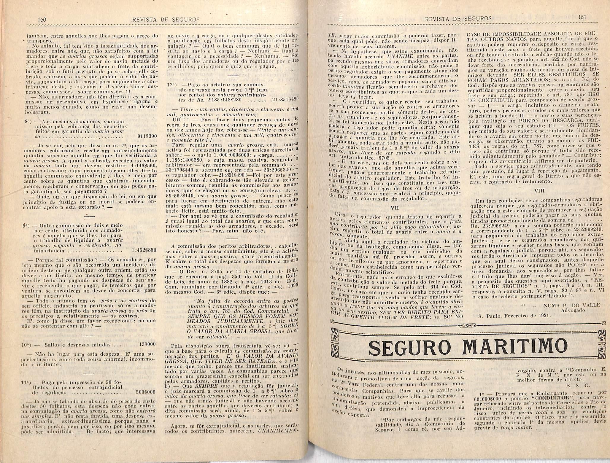 Uma easa commercial I'cciuiiioii a uma cotnpo* nhia de scguros uma indemnisasao. provciiicnl^ de riscos de guerra. dcz dias depois de lef Incnrrido e.m jircscripsao e nao obslante recebcii; il2' coiilmuin irppareccrem rcciauiacocs prcscriptas, as quaes sao nuiitas vczcs altendidas. iCinco dias depois do naufragio dv um navio. •anno passado. uma companhia rvcCbeu nm pedi''" de avcrbaciio iia apolicc de cargas neltc einbarcadas e interprctaiulo lilieralinc'nte as condijoes d'' contracio acceitou a averbasuo c indemiiis'ou co"' alguiis contos de rcis.