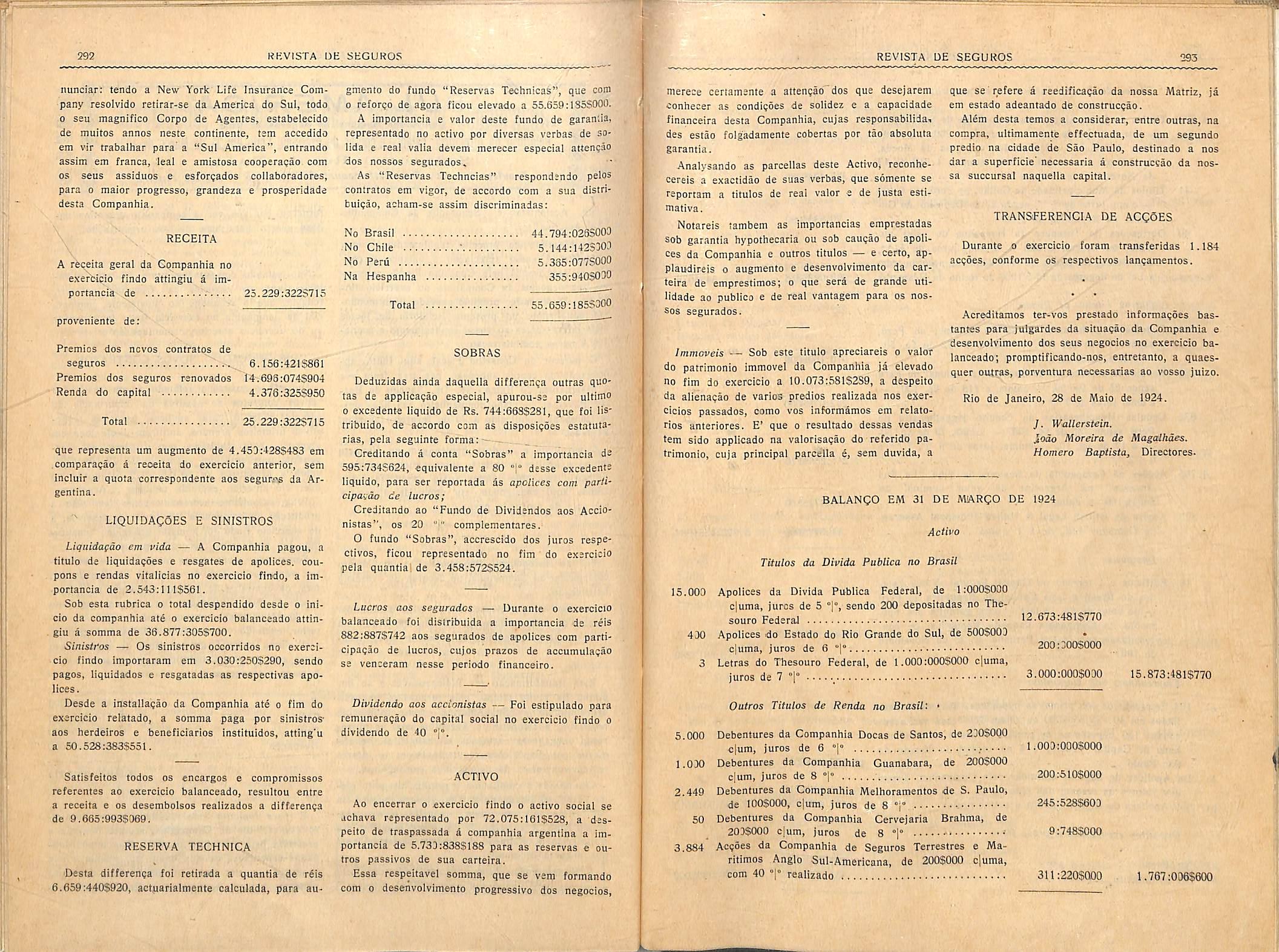 0 seguro e a fiscalisasao — Dr. Decio .Atvim 188 0 seguro no Brasil Dr. Abilio de Carvnlho 106 O seguro e as informagoes commcrciacs.... '124 Rcgulamcnto de Seguros 51 Reg^^it-.lo de Apolices 133 Regislro do .Apolices HI Regimen dc excepcao e as companhias cstrangciras 101 Relatorio da Directoriii da Associacuo de Companhias de Seguros 165 Relatorio da "Argos Fluminense" 202 Reprcsentucao ao Cougresso — (pela .Associagao dc Companhias do Seguros) 73 Resolvendo duvidas sobre o Imposto do sello 106 Rcsponsahllidade das Estradas de Ferro... 191 Rcspoiisaliilidade das Estradas de Ferro 66 He.-.ponsahilidade das E.stradas de Ferro.... 59 Rotalhos e pcnsamentos 200 Rcvista de Seguros 135 Rcvistu <ic Seguros 220 Rio Grande do Sul — A nova tarifa e o Co mity — Seguros conti'n fogo 79 S • "SagfA-s" 208 Sogiiro 2011 "Segui-os y Buncos" 182 Seguros na Alienianha — A. N. Belotswetov 16/ Seguros na .America do Norte, em 1923 186 Seguro no Brasil — Dr. Abilio de Carvalho 106 Seguros sooiaes 107 Seguradores e Segurados 88 Seguro contra pcrda cle hici'os 188 Seguro do caff- (Rcpresentagao da Assoclngao dc Coinpanhin do Seguros) ' 159