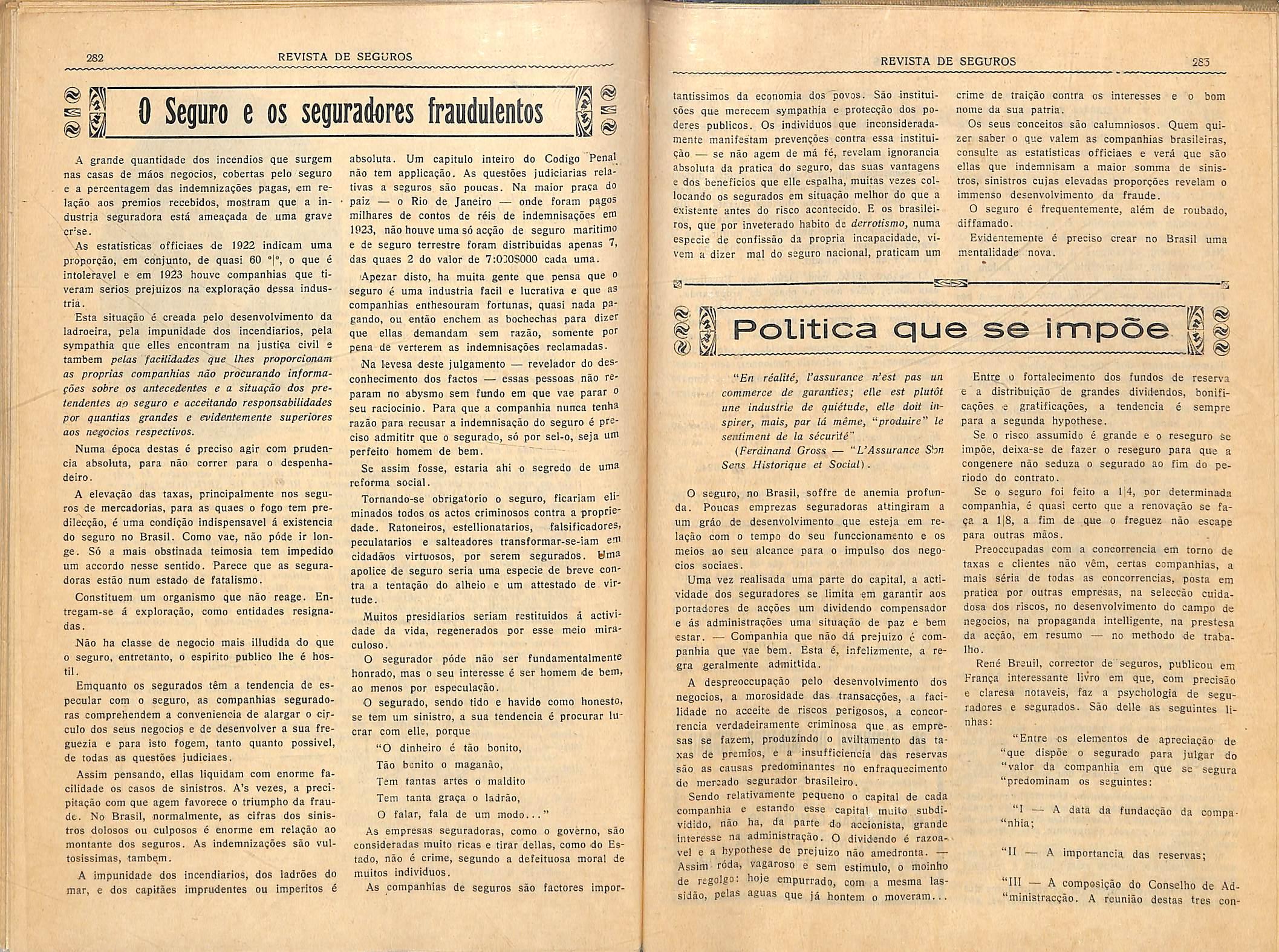 Rene Breuil. corrector de seguros, publicou em Franga interessante livro em que, com precisao e claresa notavels, faz a psychologia de segu radores e segurados. Sao delle as seguintes Unhas: