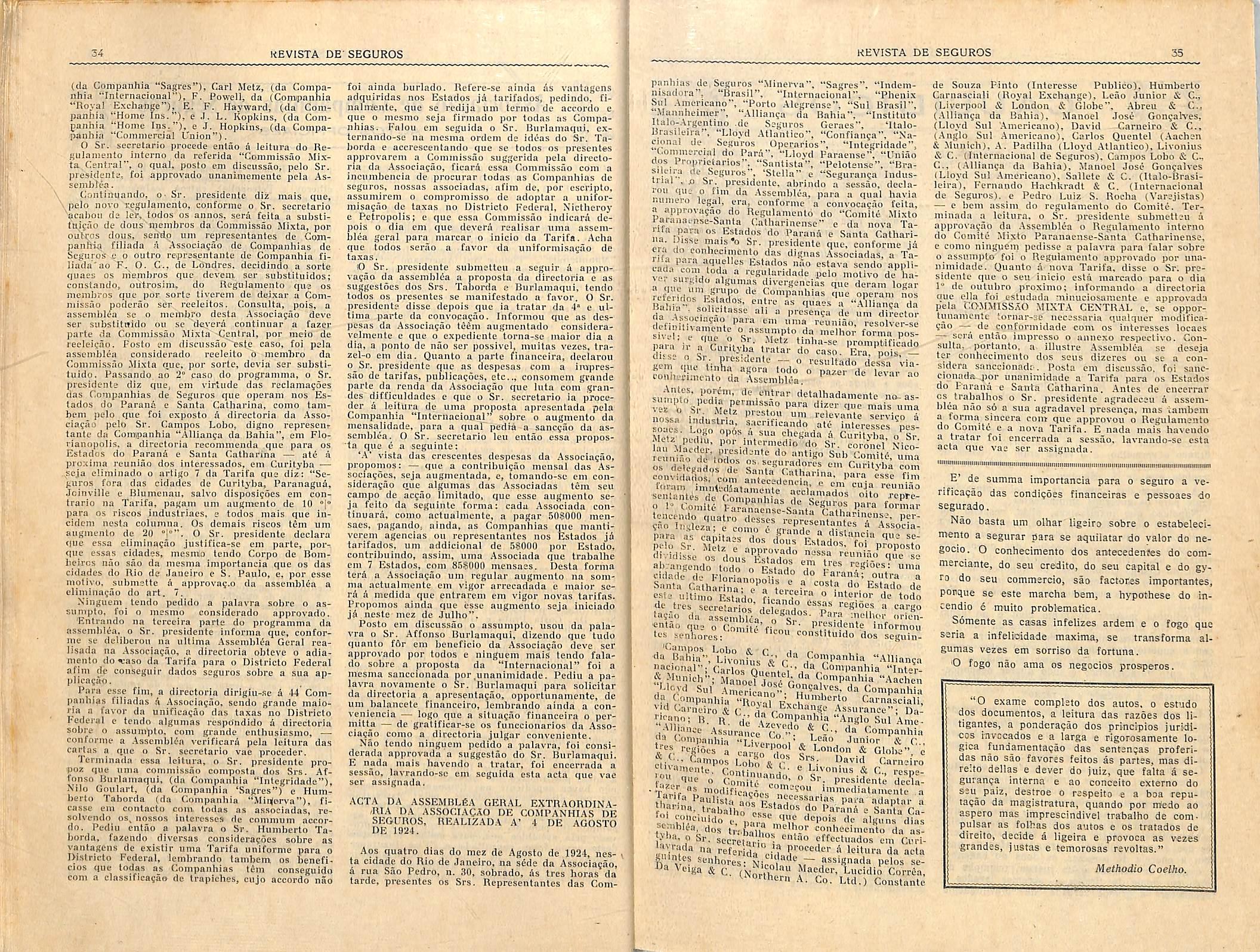 Nos que temos pugnado tatito pela instituiqao do segupo nacional, pela melhoria dos seus methodos, por uma comprehensao mais elevada da sua finalidade social, nao podemos delxar de lamentar a existencia de um pequeno sentimento de competiqao e de inveja, que domina aigumas empresas.