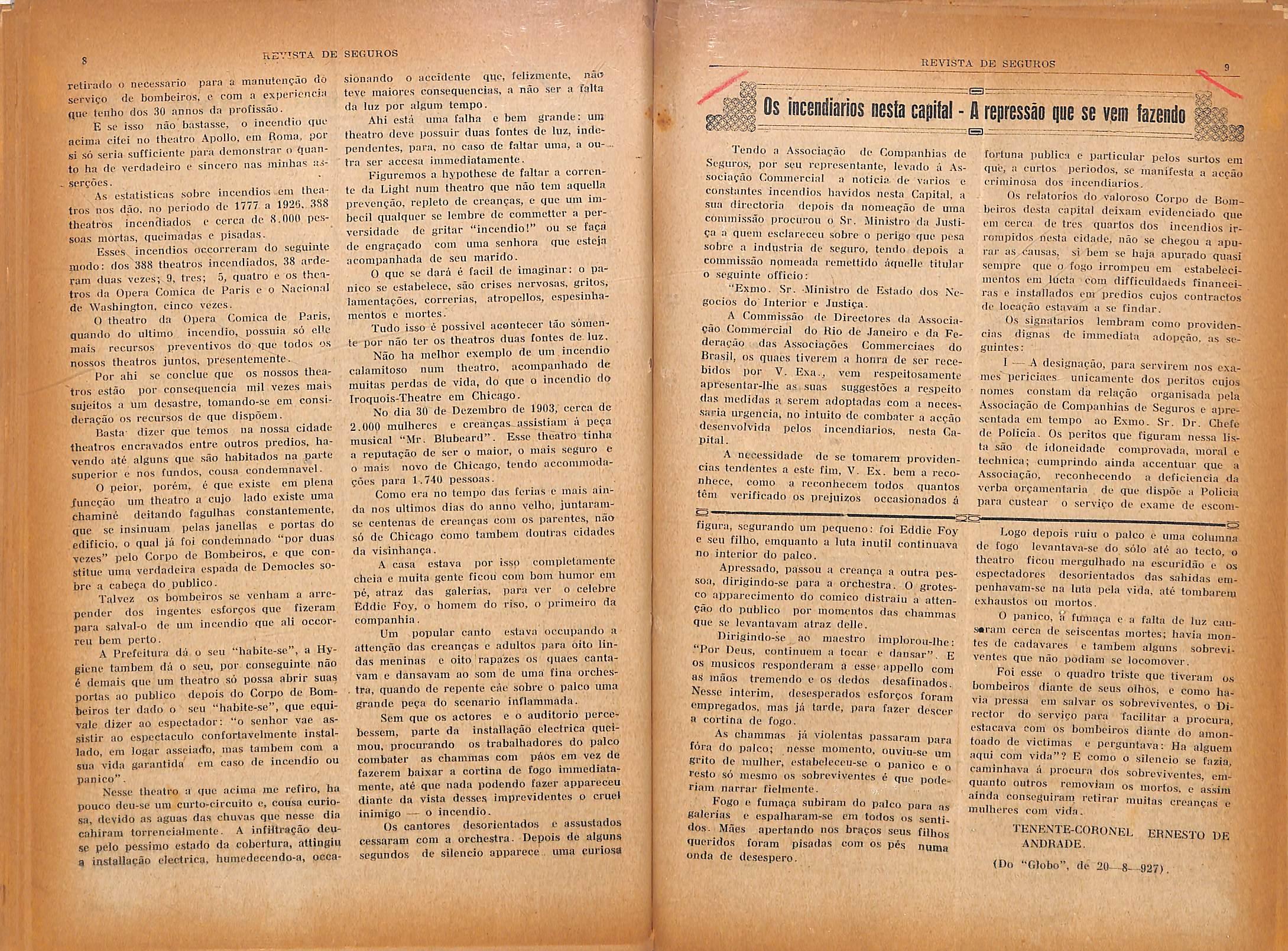A "Associagao dc Companhias cle Scgu ros" conlinita a agir junto as autoridades compet'cntcs para que scjam devidamcnlo esclarociclas as causas dos incendios que se verificam con.stantcmente nesta Capital e para que OS sens auctores scjam rigorosamente processados quando sc confirnte a proccdenciii do crime.