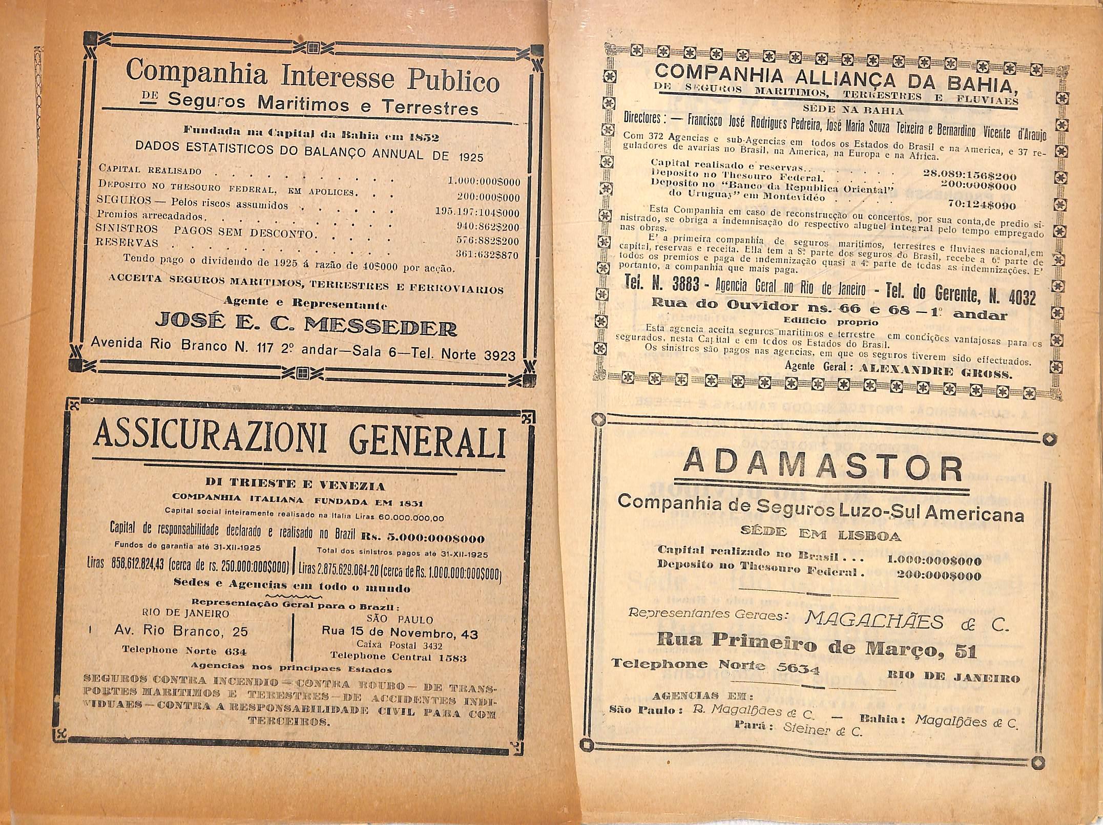 nadores, professores de faculdades e advogados de boa fama nao tlvcram escrupulo em prestar os seus nomes, como chamariz, a es.sas arapucas, que roubarara milhares de contos de reis a confian?a dos seus segurados.