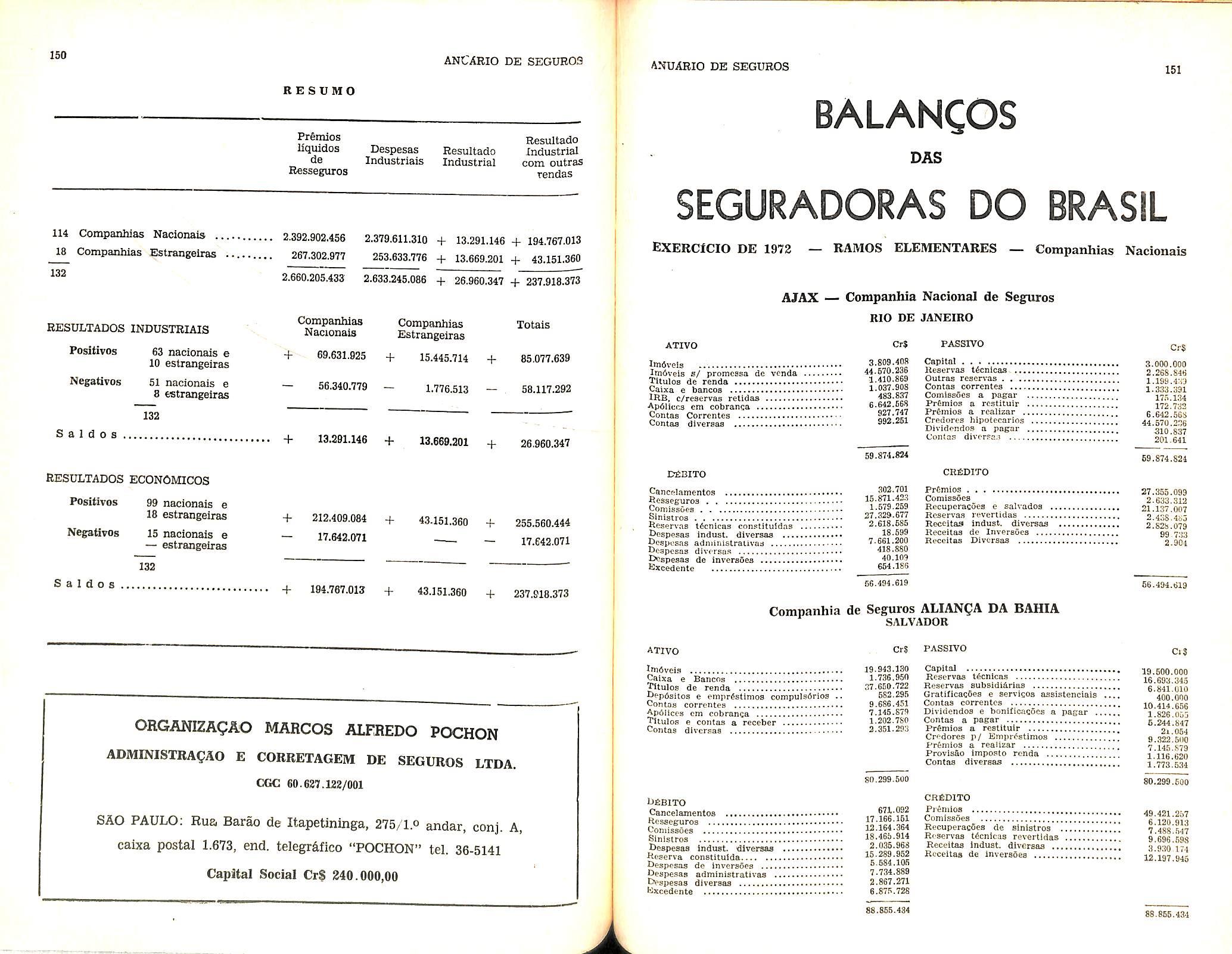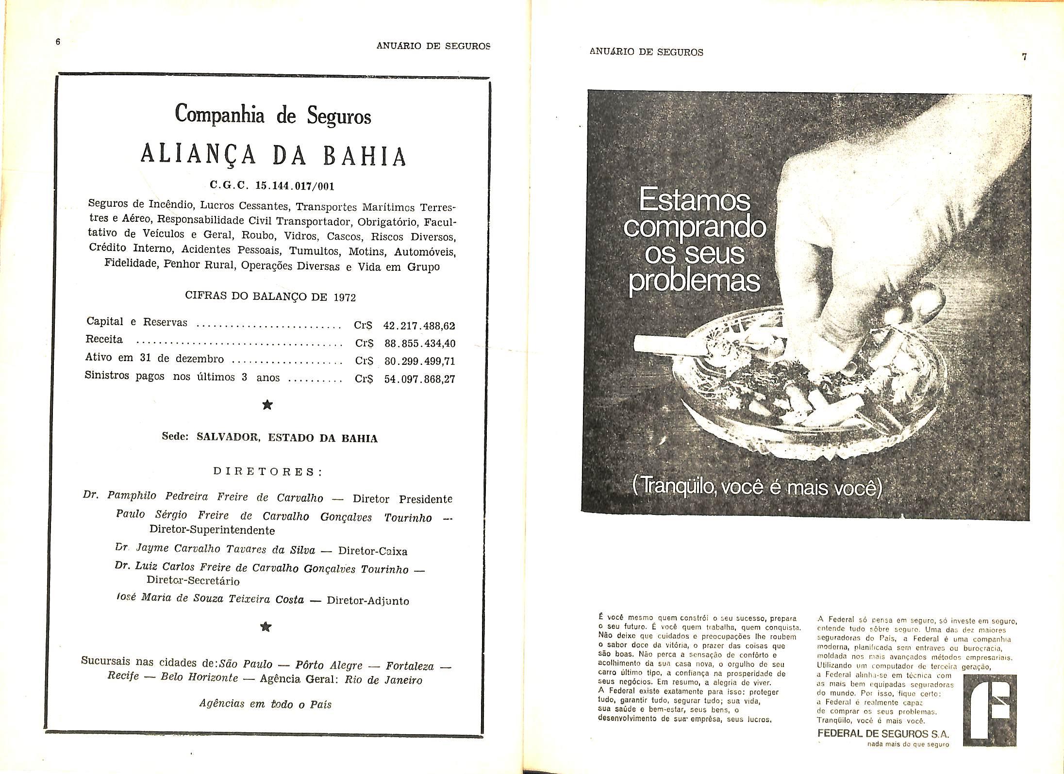 Aglncia da Alianga Gaucha. Filial da Itau Seguradora. Jos6 Guimaraas Axagao Alianga da Bahia, Orcil Org ContabU Ltda Seguradora Industria e Comercio. Representagao da Sao Paulo. Sucursais das Clas Minas BraslI e Seguradora Industrial e Y,T , Mercantil. Walter de Jesus Santos Federal