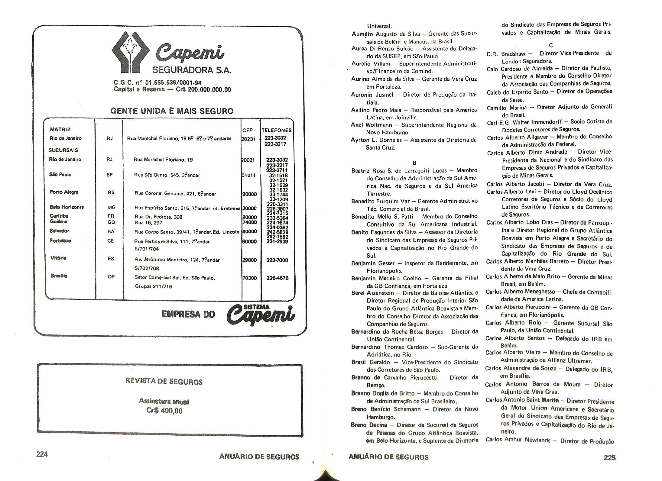 Capital e Reservas; Cr$ 614.293.562,42 Fundadaem 1868