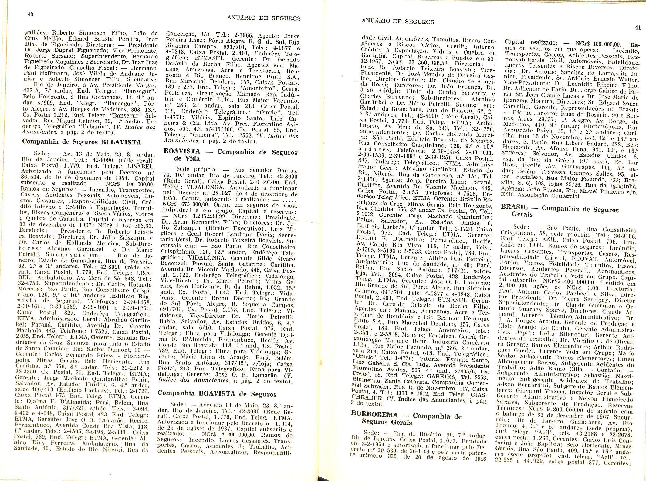 Para os demais leitores em geral, as informagoes a respeito das companhias de seguros e personalidades do meio segurador, constituem valioso elemento nas suas relagoes com esse imporlante ramo de negocios.