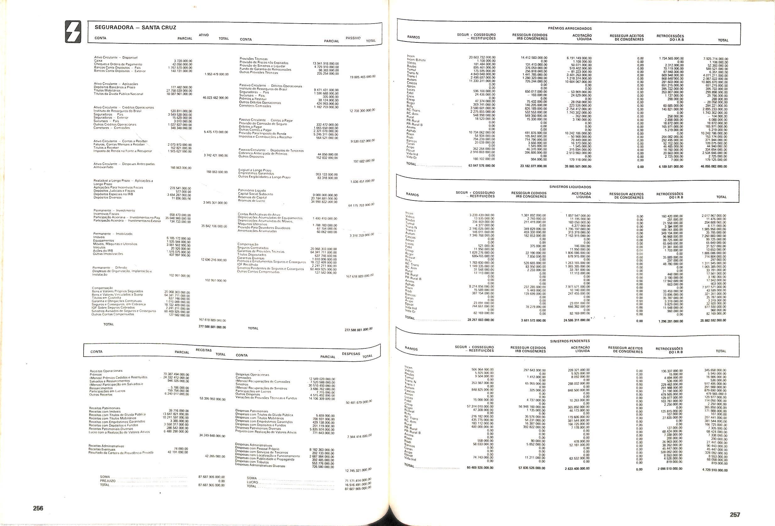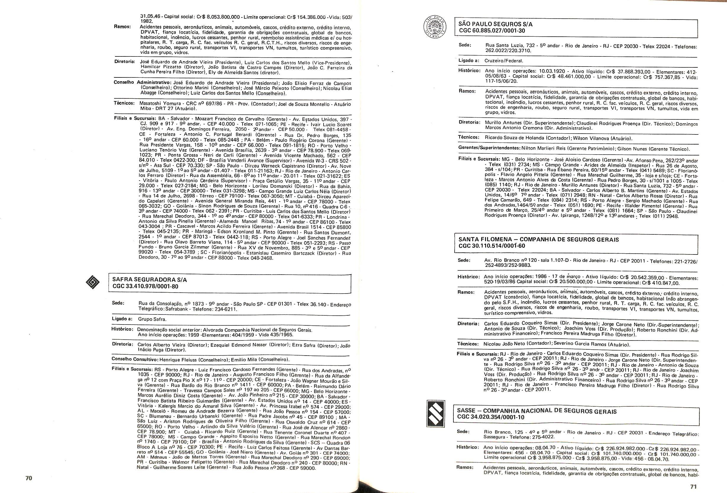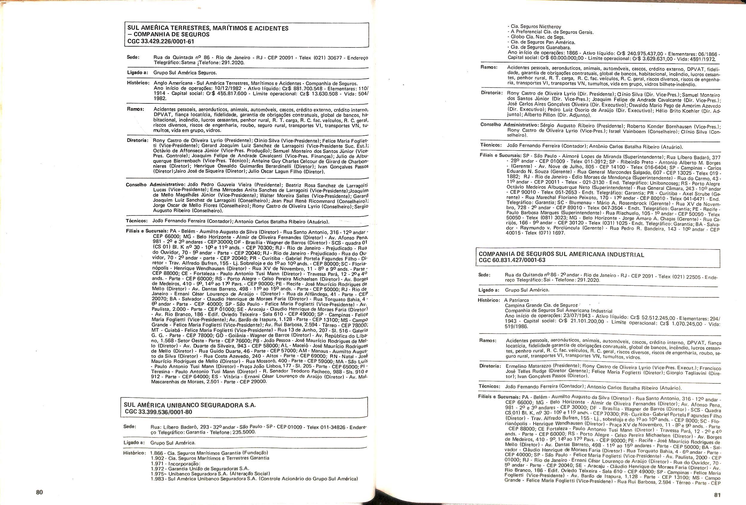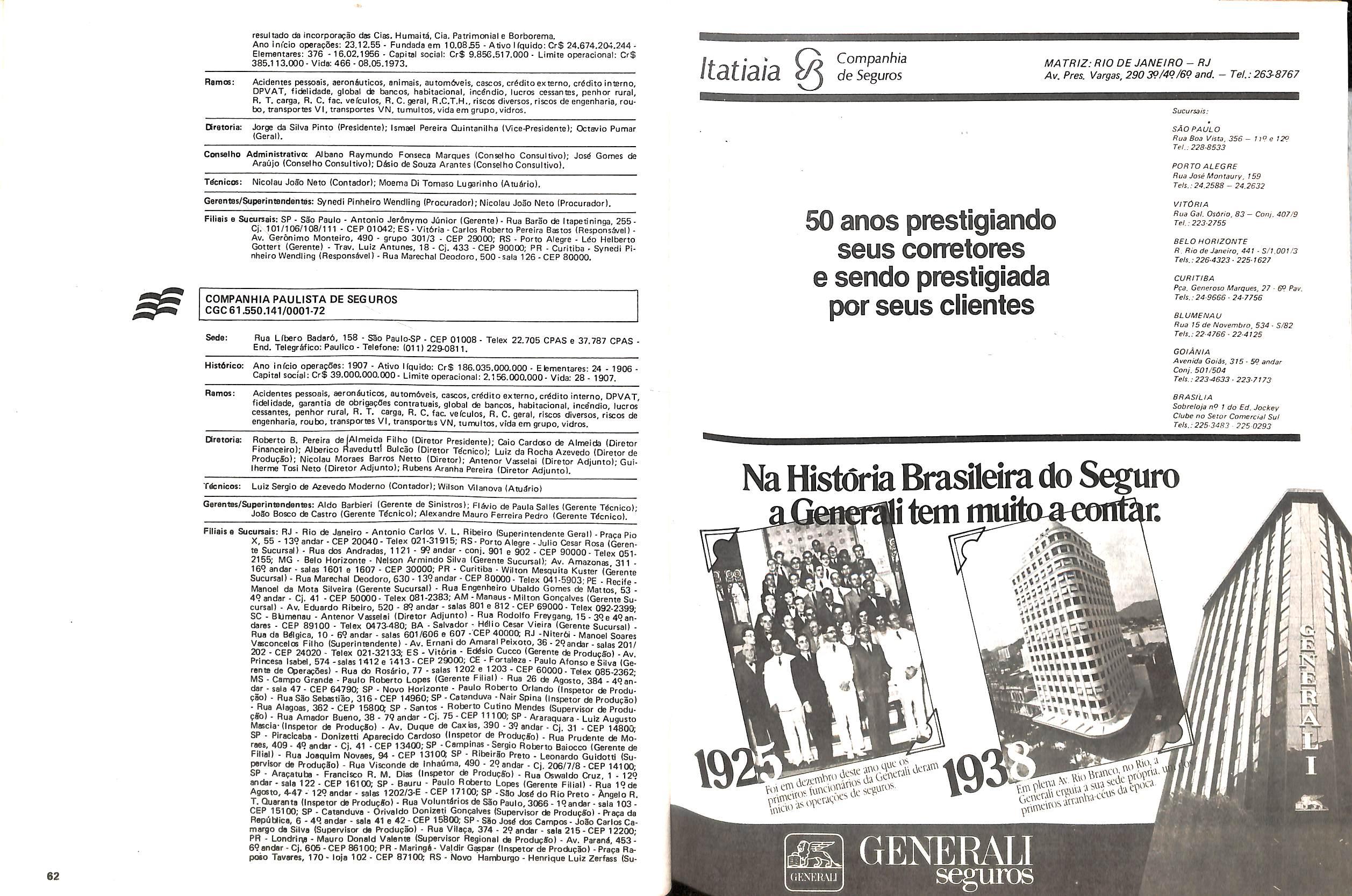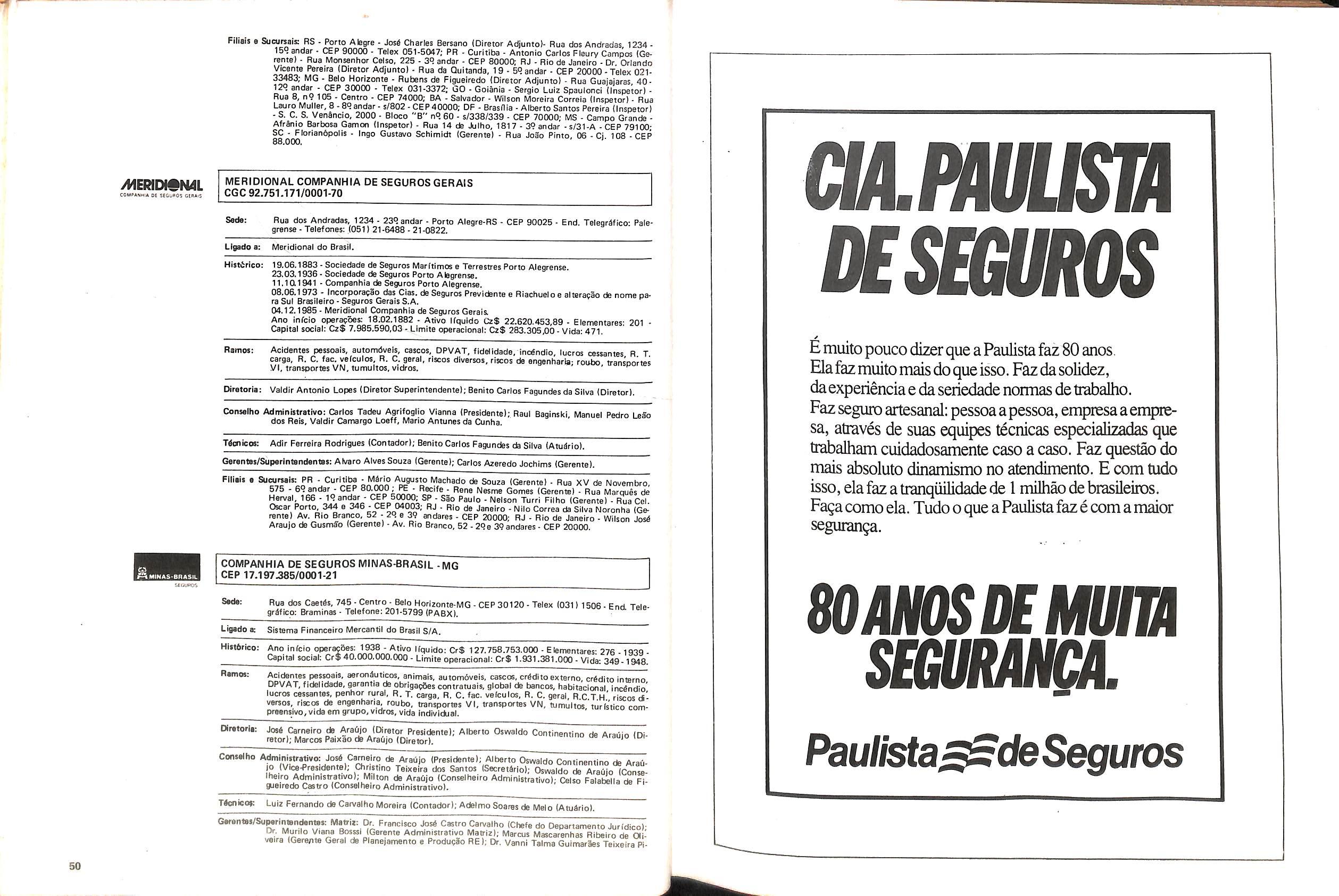 Histbrico; OriglnSria da representacao esirangelra da "Riuniona AdriStica de Sicurta". — Trieste — Itilia. Ano infcio operagoes: 1929; Atlvo iCquido: Cz$ 66.466.700,00; Elementares:482-1980; Capi tal Social: Cz$ 45.000.000,00; Limite operaclonal: Cz$ 1.402.000,00; Vida: 482 - 1980.