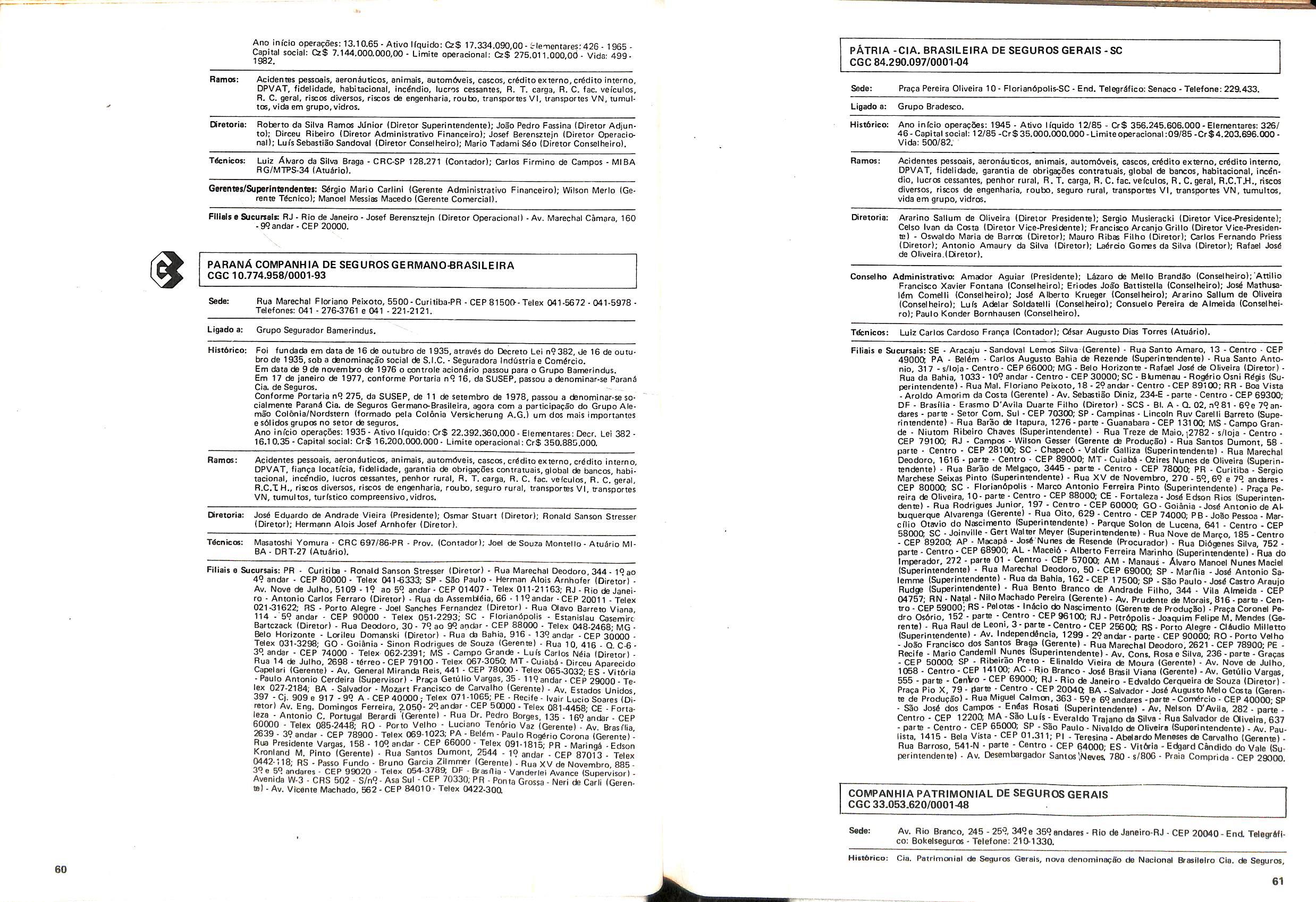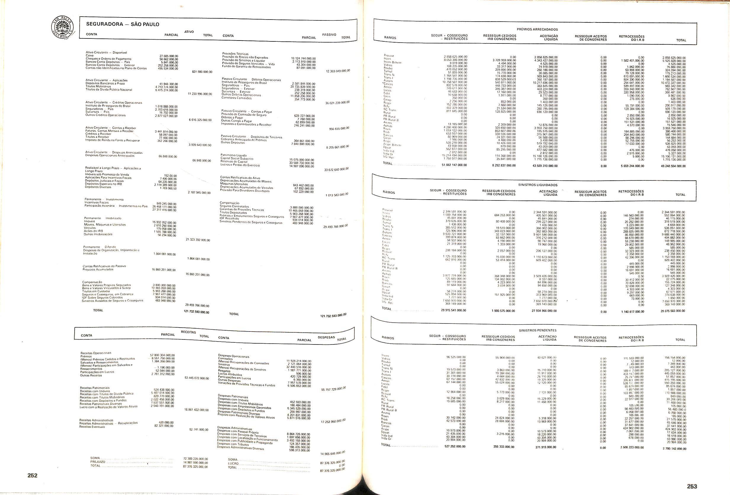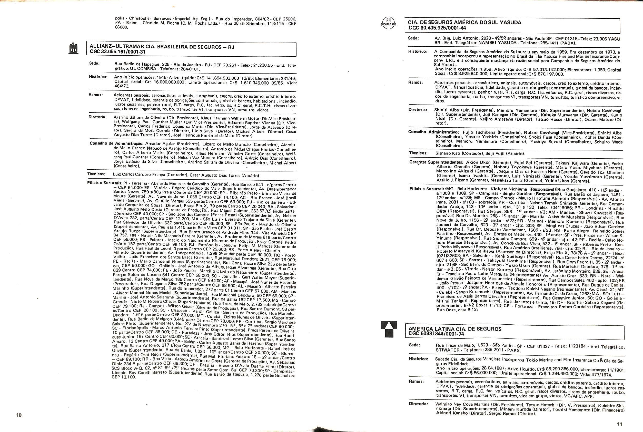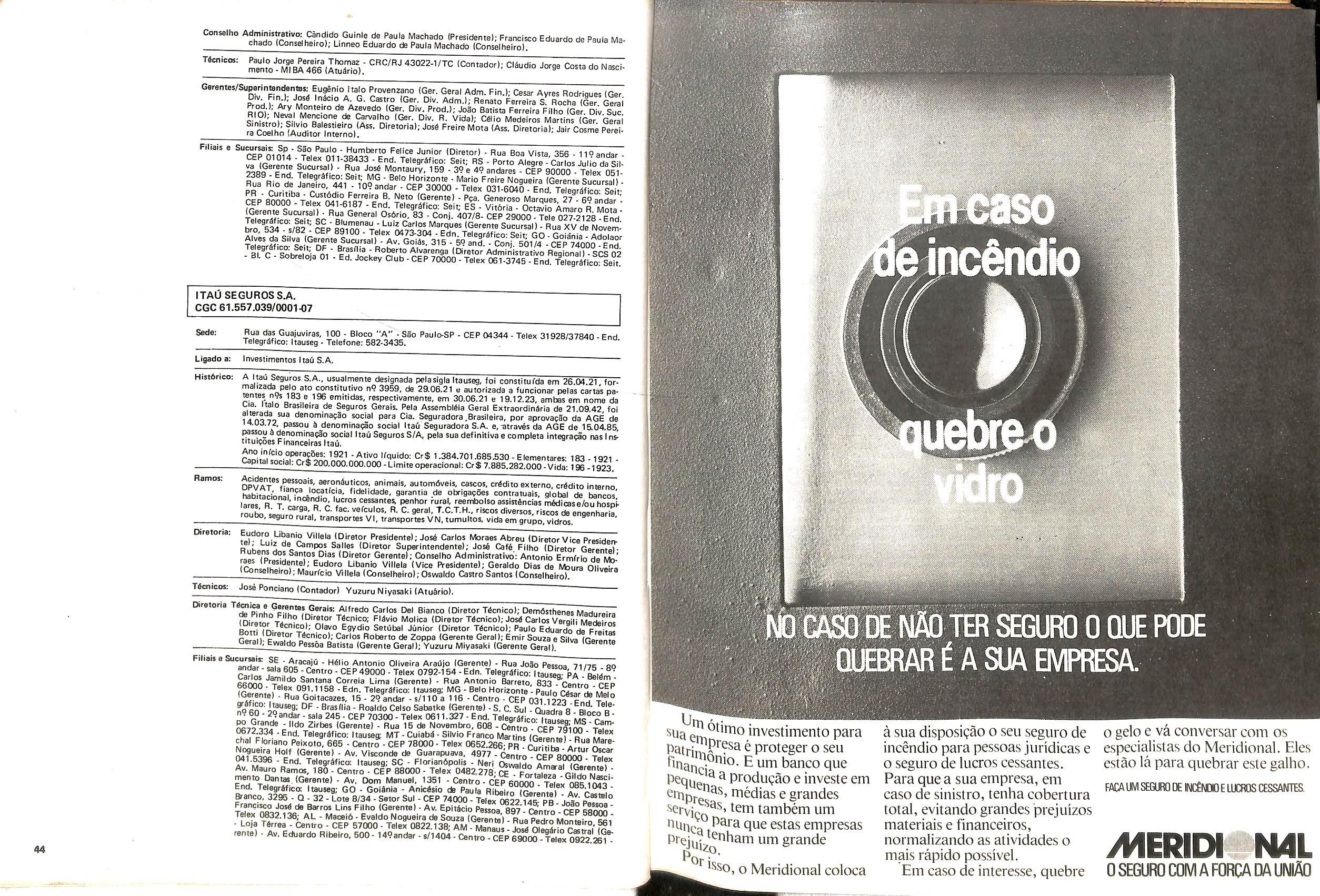 Histbrico; OriglnSria da representacao esirangelra da "Riuniona AdriStica de Sicurta". — Trieste — Itilia. Ano infcio operagoes: 1929; Atlvo iCquido: Cz$ 66.466.700,00; Elementares:482-1980; Capi tal Social: Cz$ 45.000.000,00; Limite operaclonal: Cz$ 1.402.000,00; Vida: 482 - 1980.