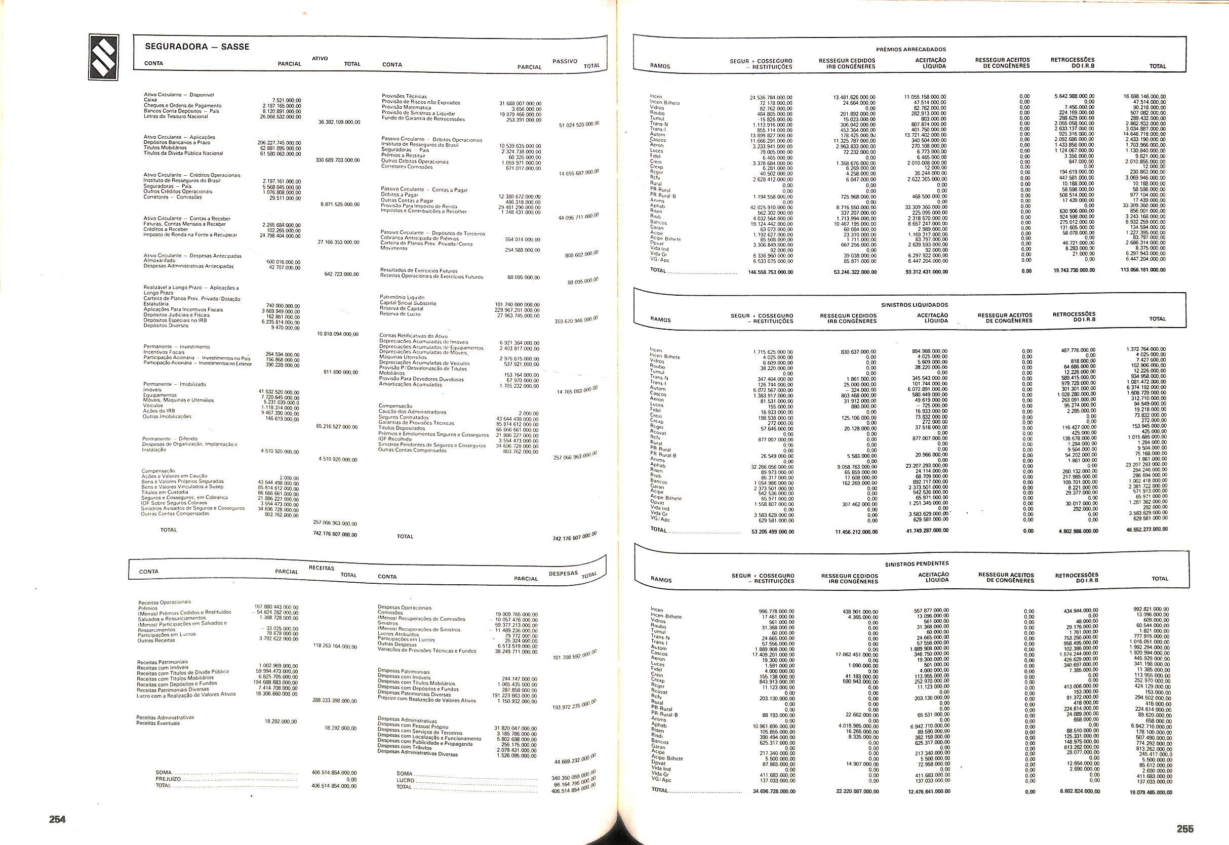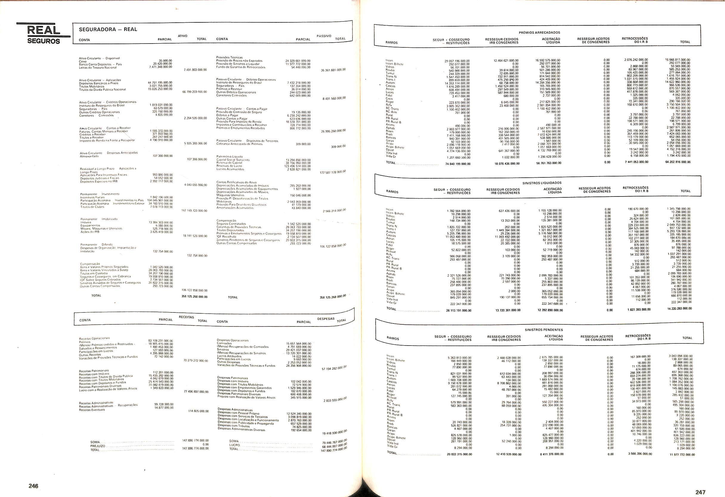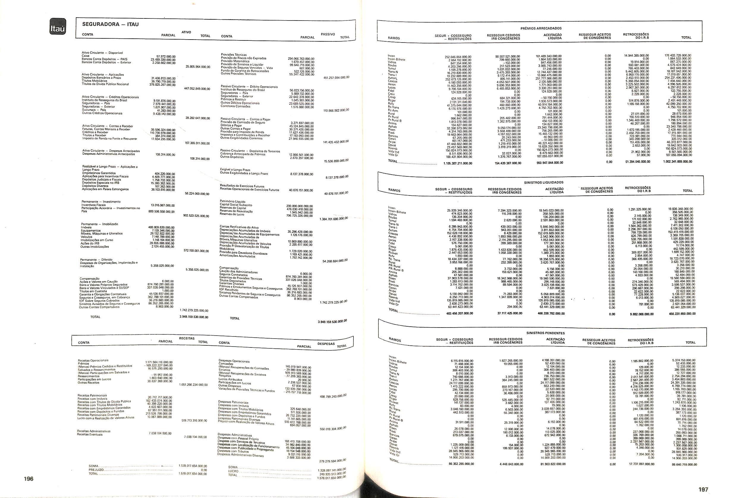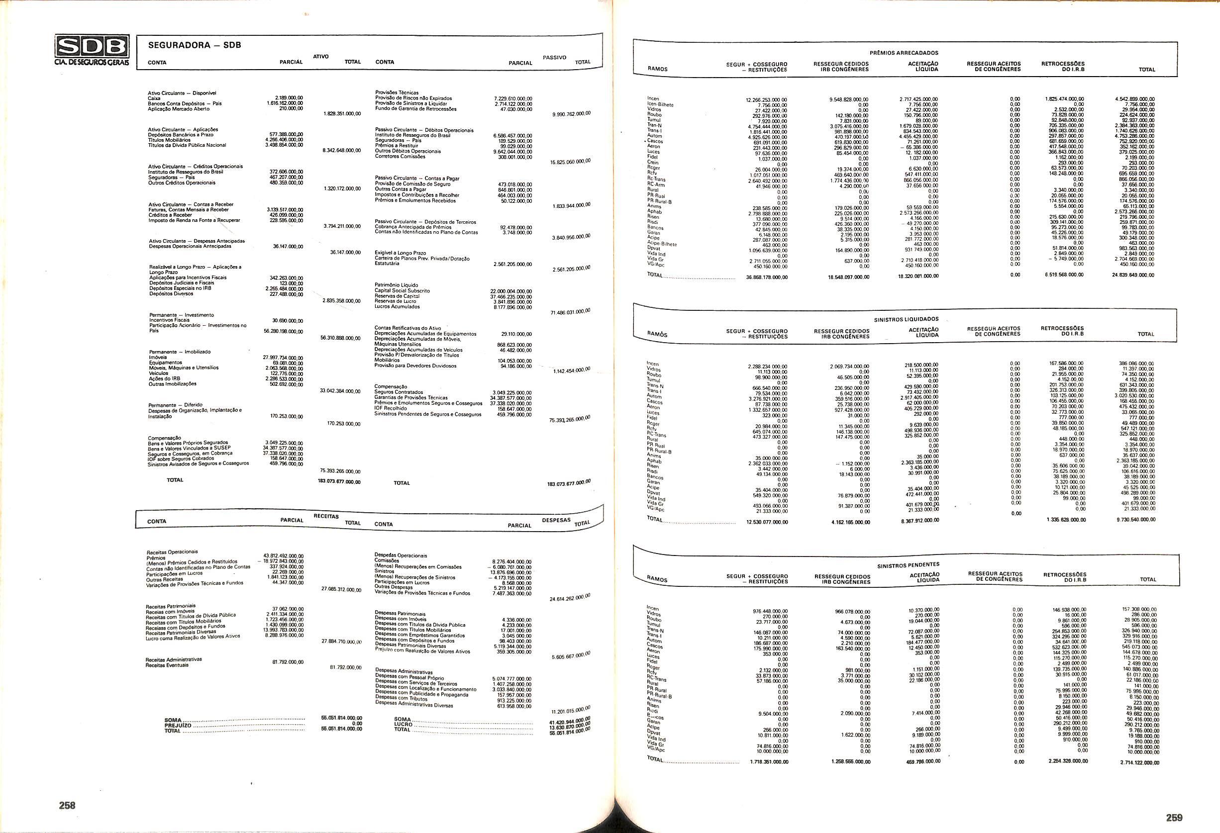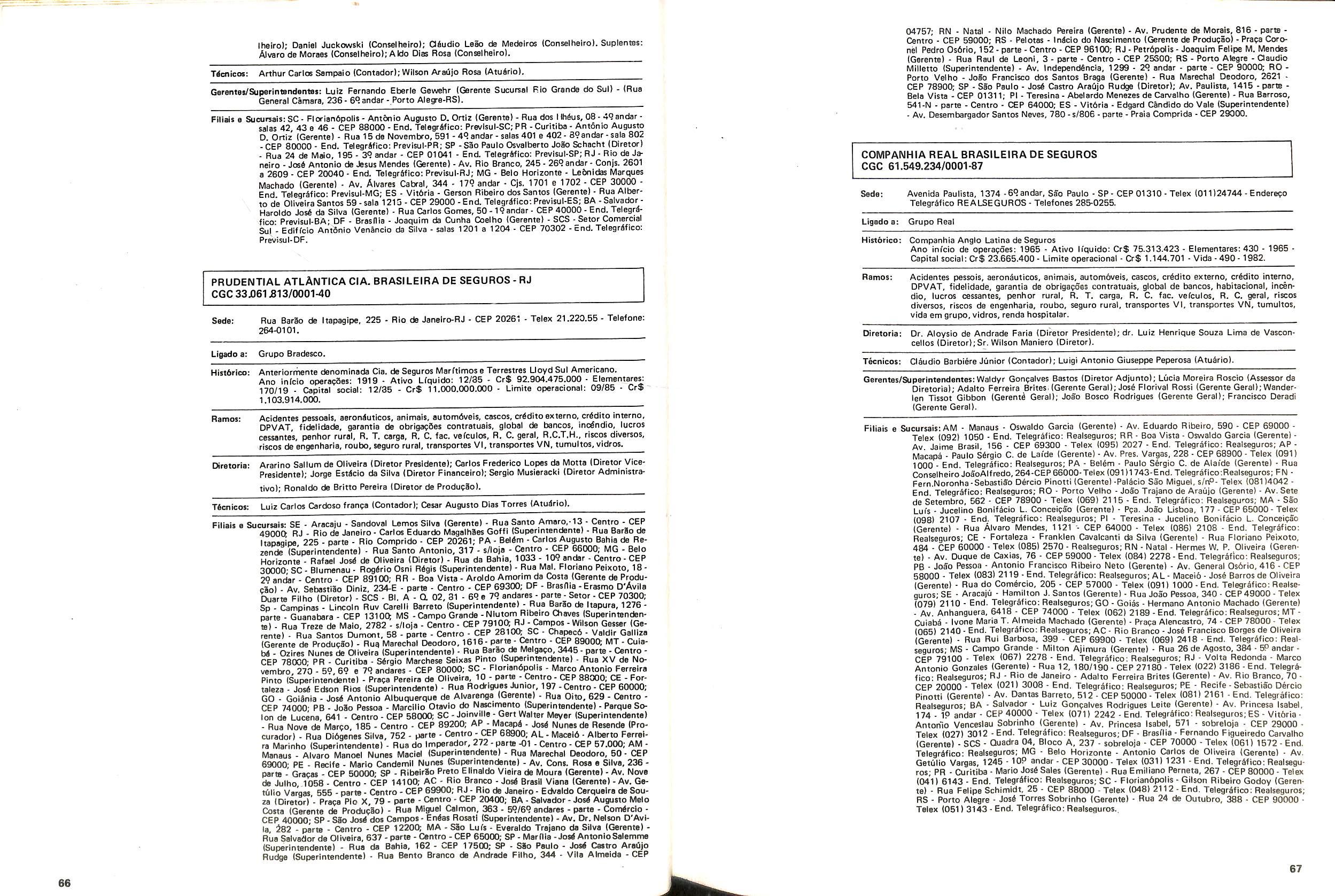 Histbrico; OriglnSria da representacao esirangelra da "Riuniona AdriStica de Sicurta". — Trieste — Itilia. Ano infcio operagoes: 1929; Atlvo iCquido: Cz$ 66.466.700,00; Elementares:482-1980; Capi tal Social: Cz$ 45.000.000,00; Limite operaclonal: Cz$ 1.402.000,00; Vida: 482 - 1980.