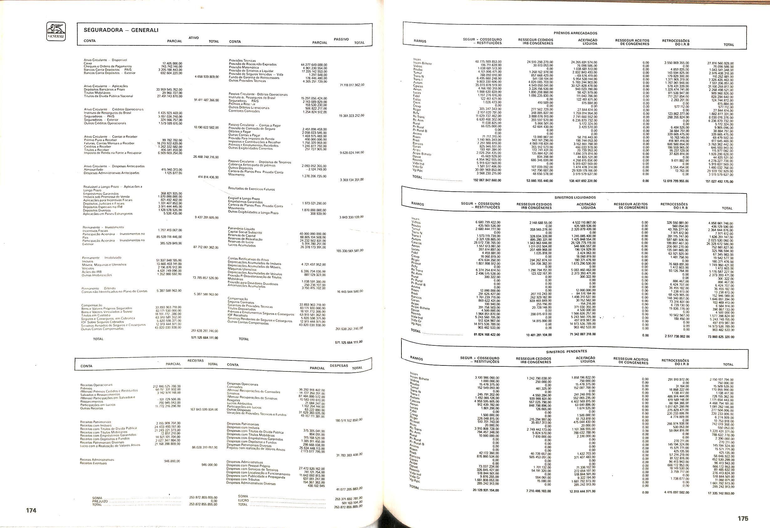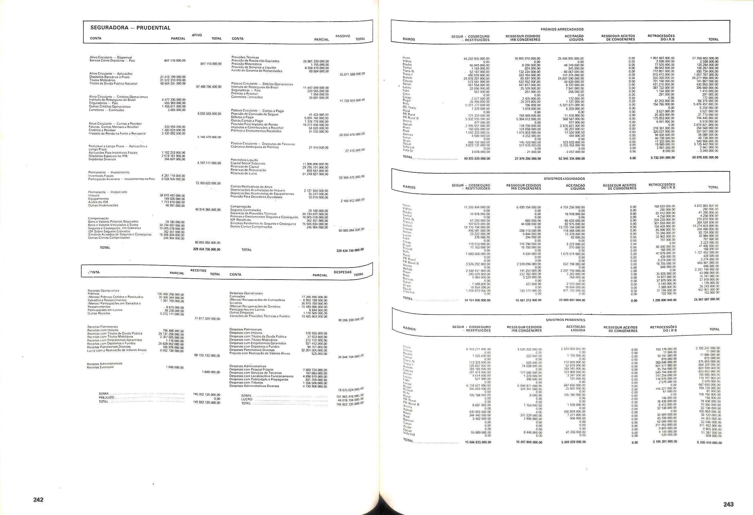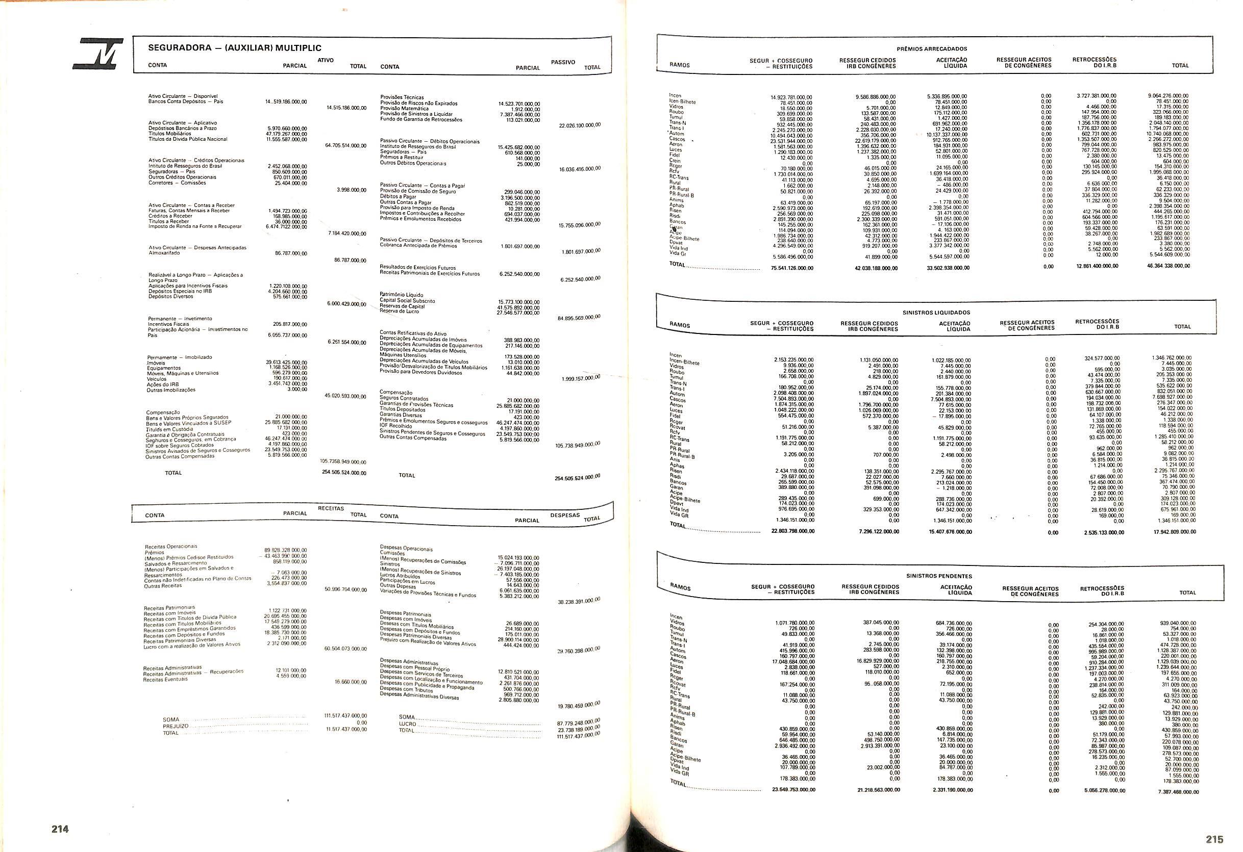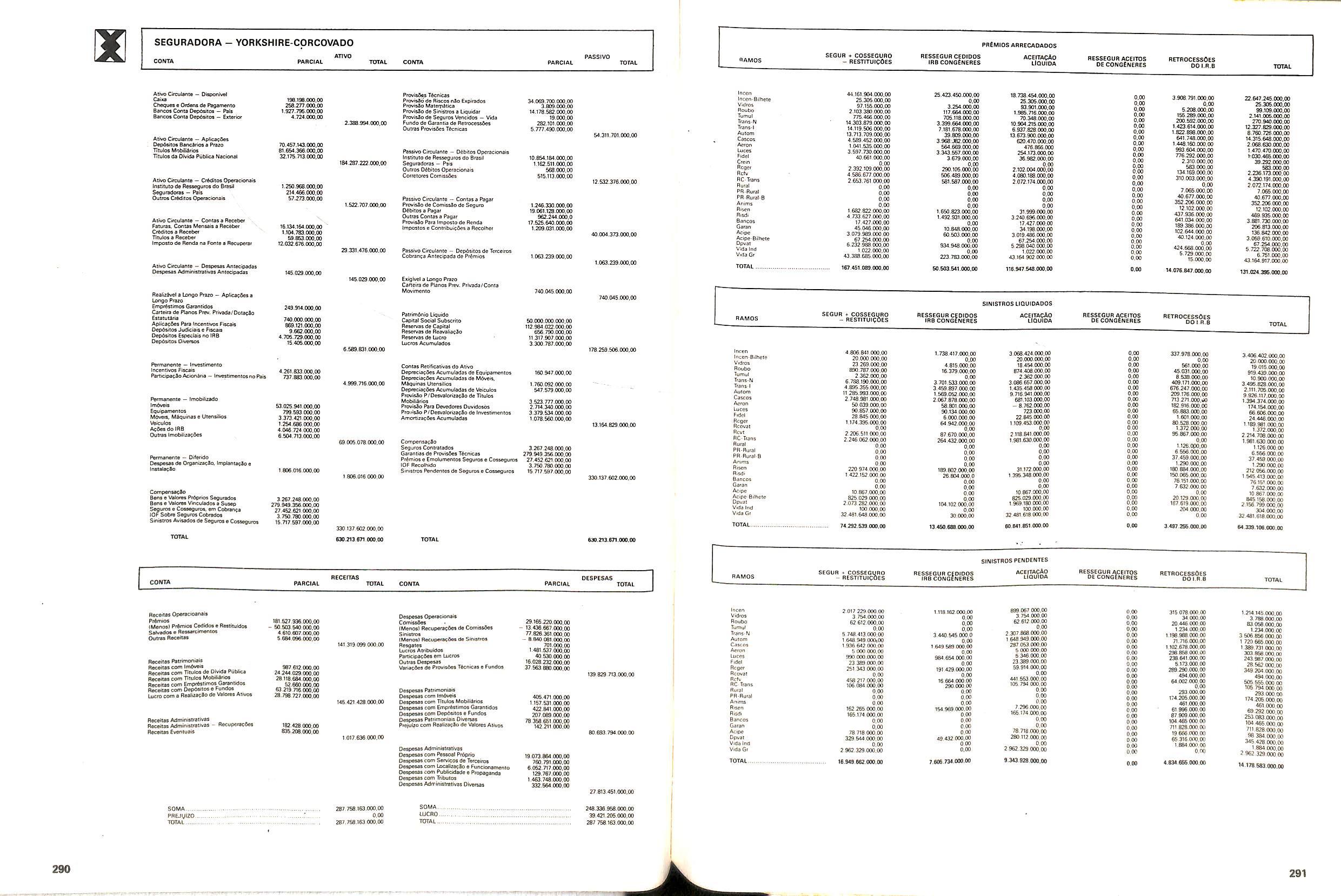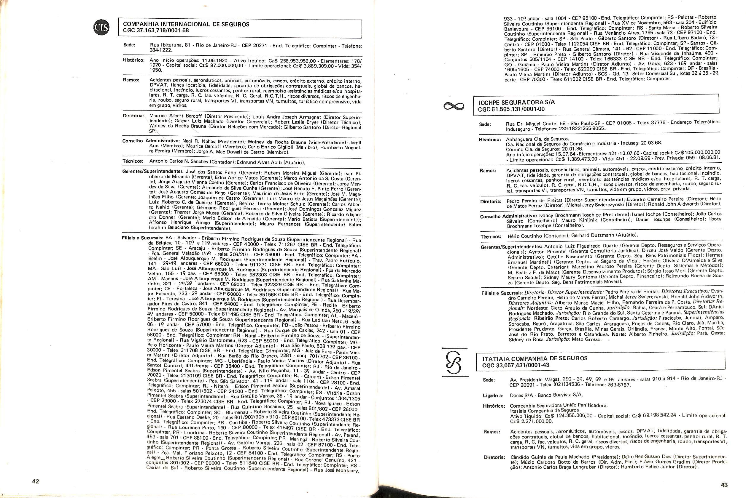 Histbrico; OriglnSria da representacao esirangelra da "Riuniona AdriStica de Sicurta". — Trieste — Itilia. Ano infcio operagoes: 1929; Atlvo iCquido: Cz$ 66.466.700,00; Elementares:482-1980; Capi tal Social: Cz$ 45.000.000,00; Limite operaclonal: Cz$ 1.402.000,00; Vida: 482 - 1980.
