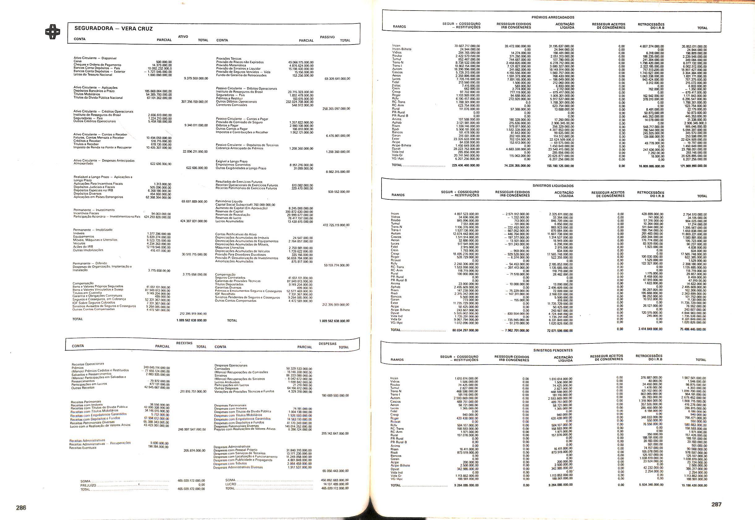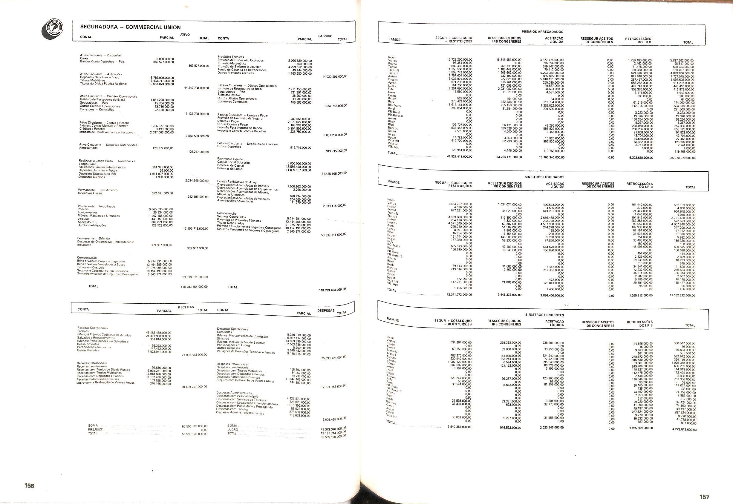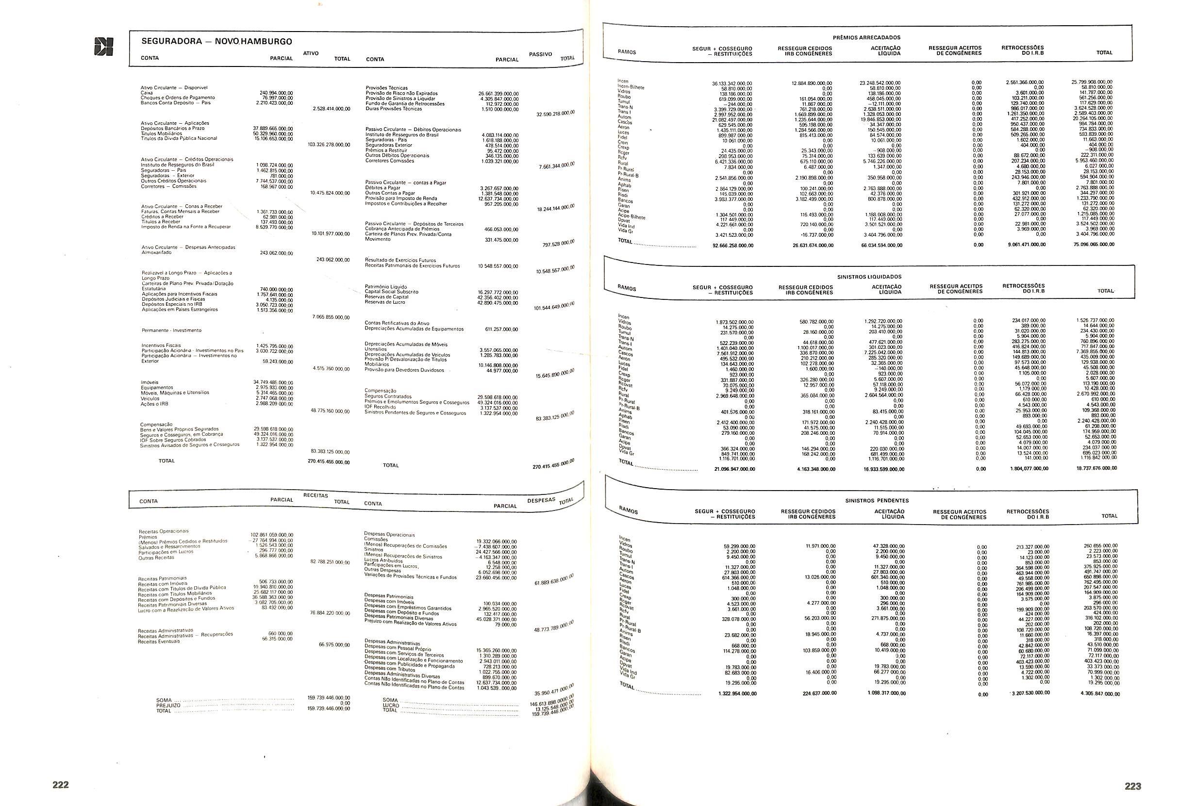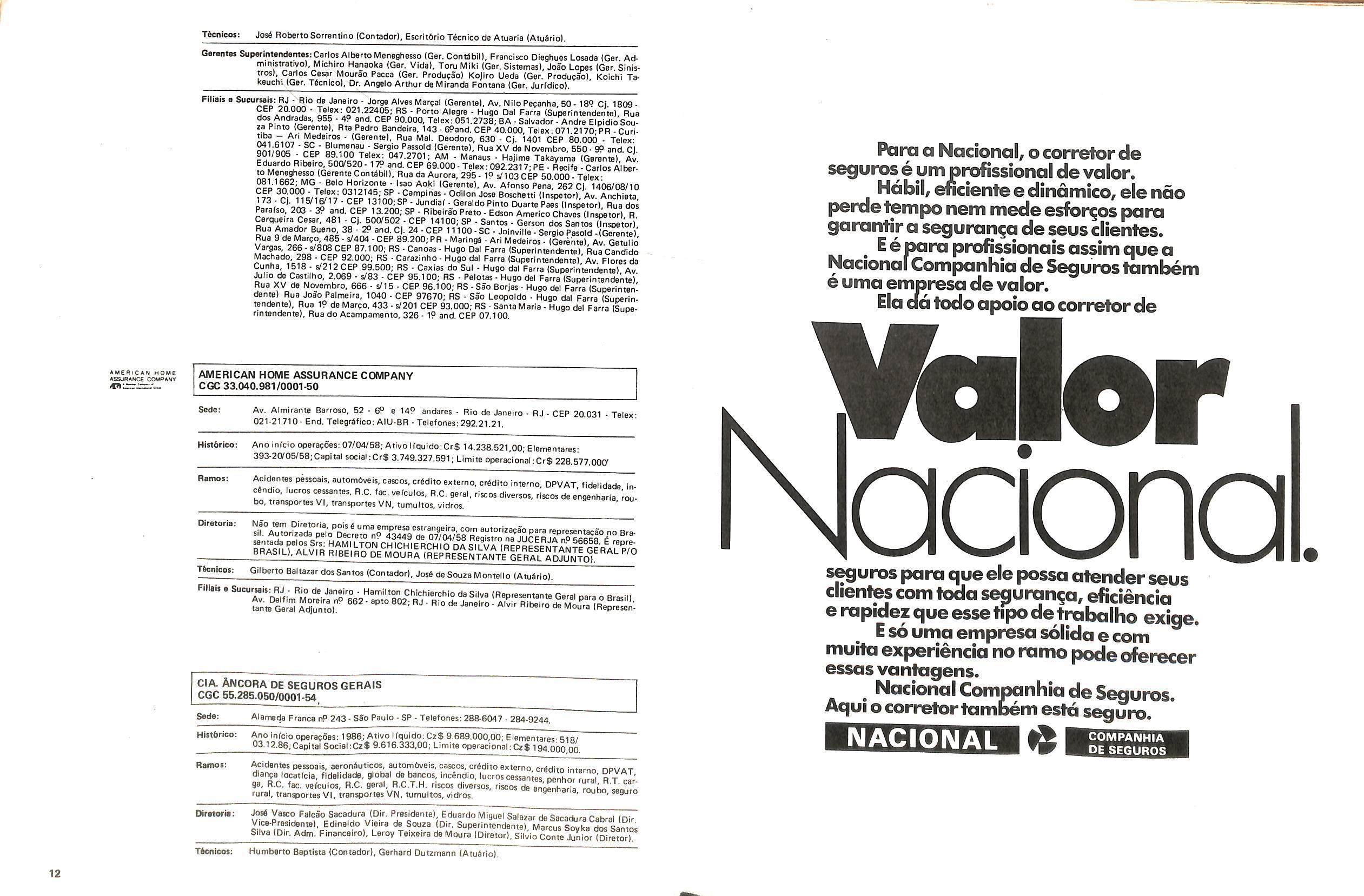 Histbrico; OriglnSria da representacao esirangelra da "Riuniona AdriStica de Sicurta". — Trieste — Itilia. Ano infcio operagoes: 1929; Atlvo iCquido: Cz$ 66.466.700,00; Elementares:482-1980; Capi tal Social: Cz$ 45.000.000,00; Limite operaclonal: Cz$ 1.402.000,00; Vida: 482 - 1980.