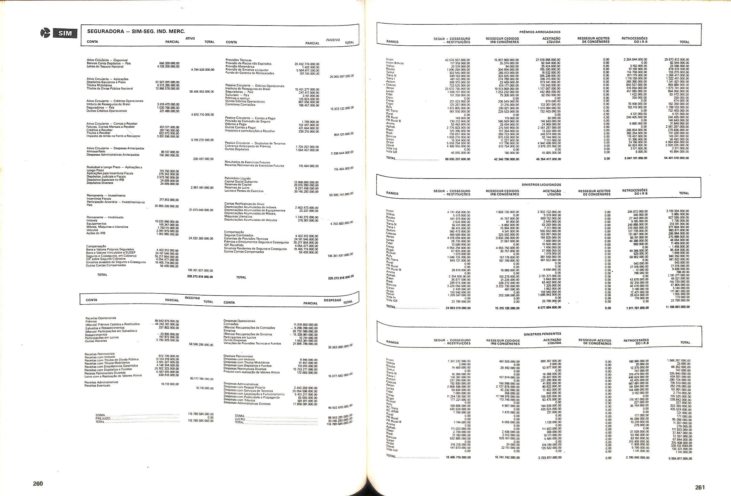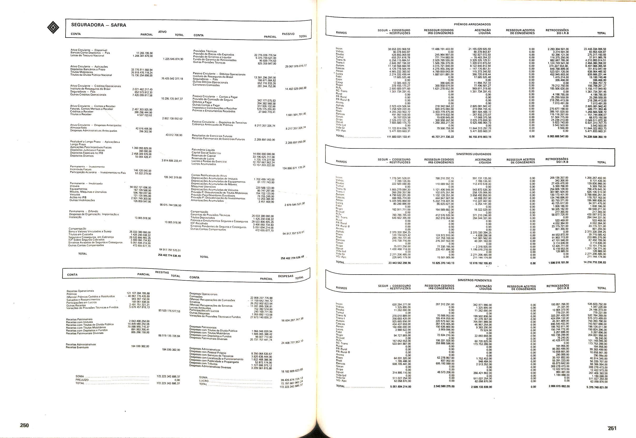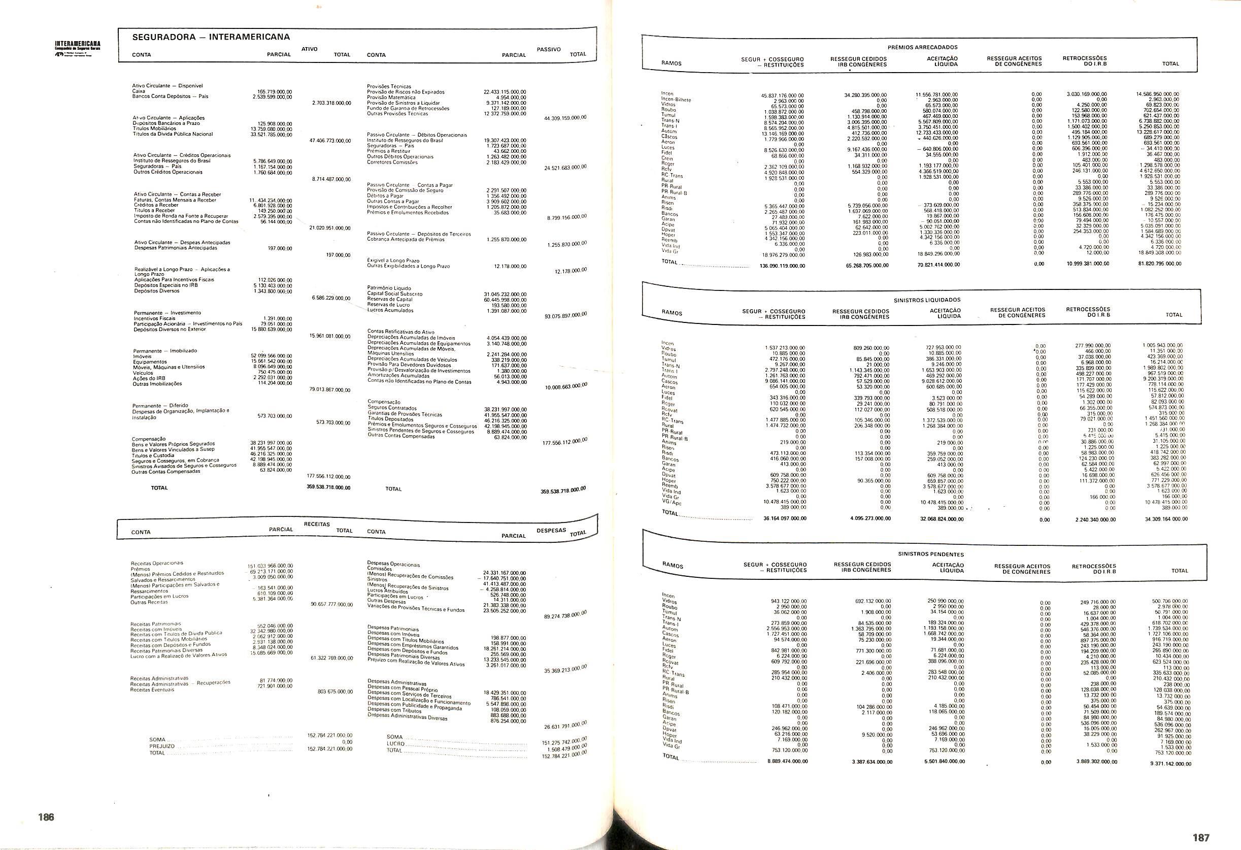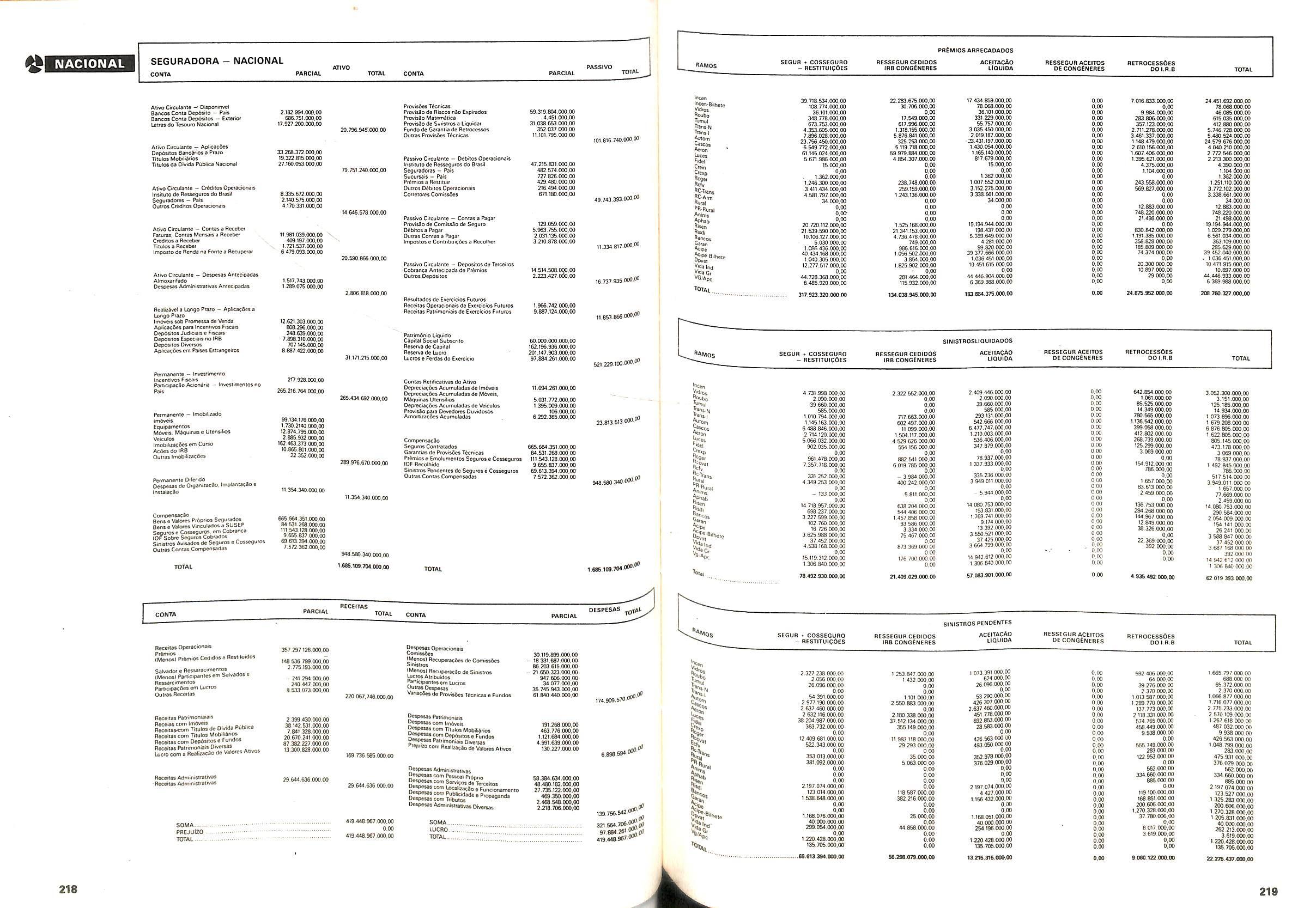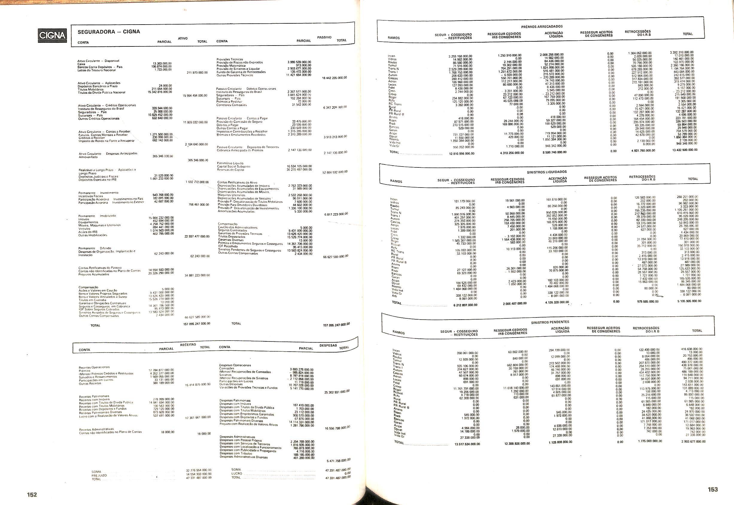 Histbrico; OriglnSria da representacao esirangelra da "Riuniona AdriStica de Sicurta". — Trieste — Itilia. Ano infcio operagoes: 1929; Atlvo iCquido: Cz$ 66.466.700,00; Elementares:482-1980; Capi tal Social: Cz$ 45.000.000,00; Limite operaclonal: Cz$ 1.402.000,00; Vida: 482 - 1980.
