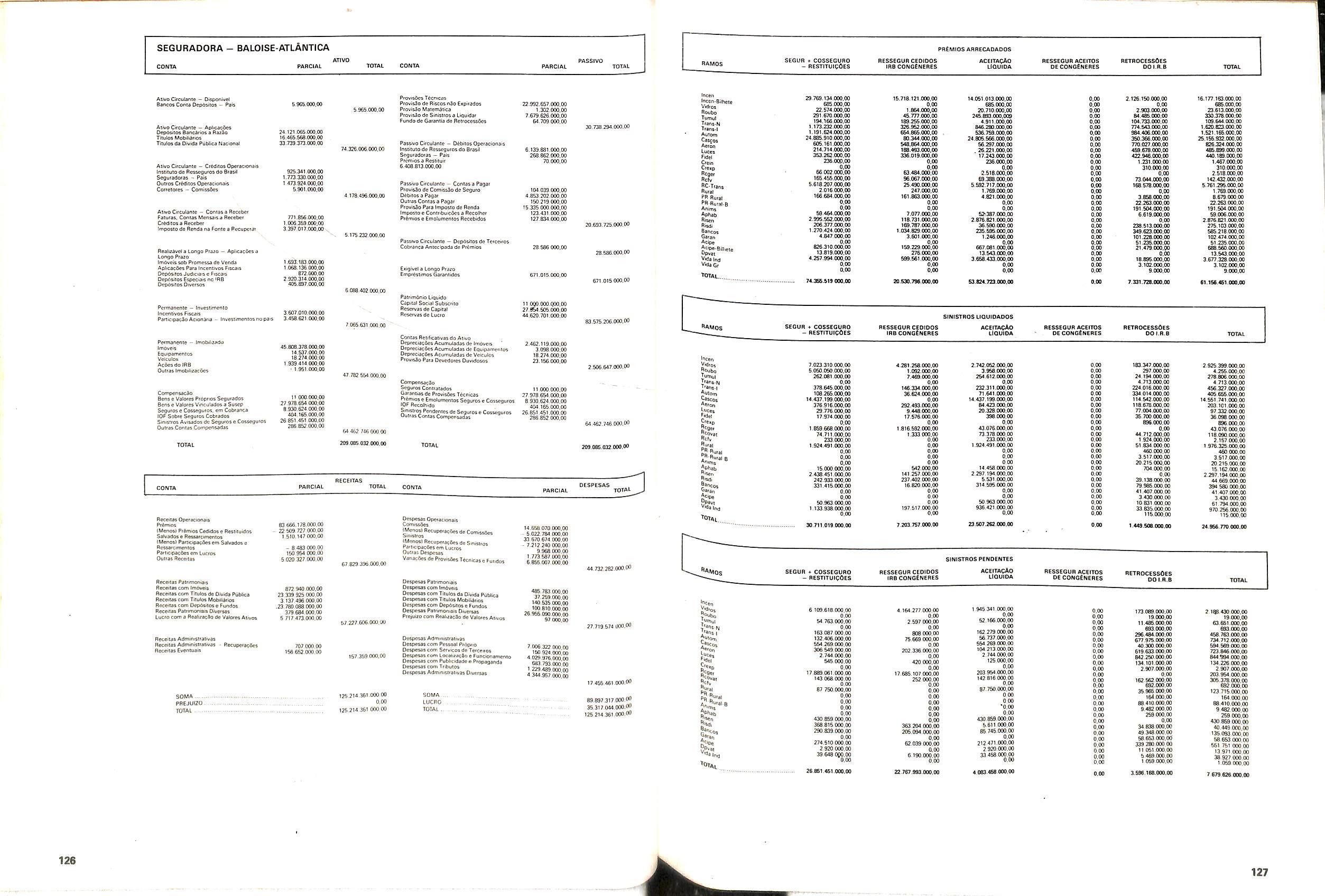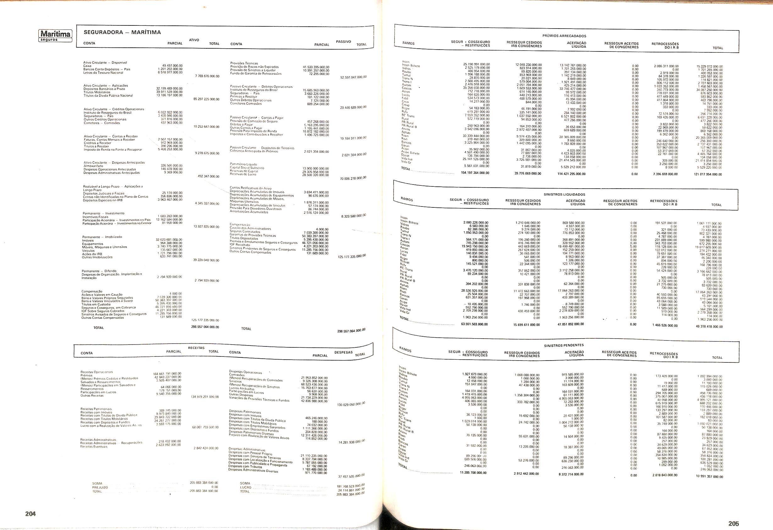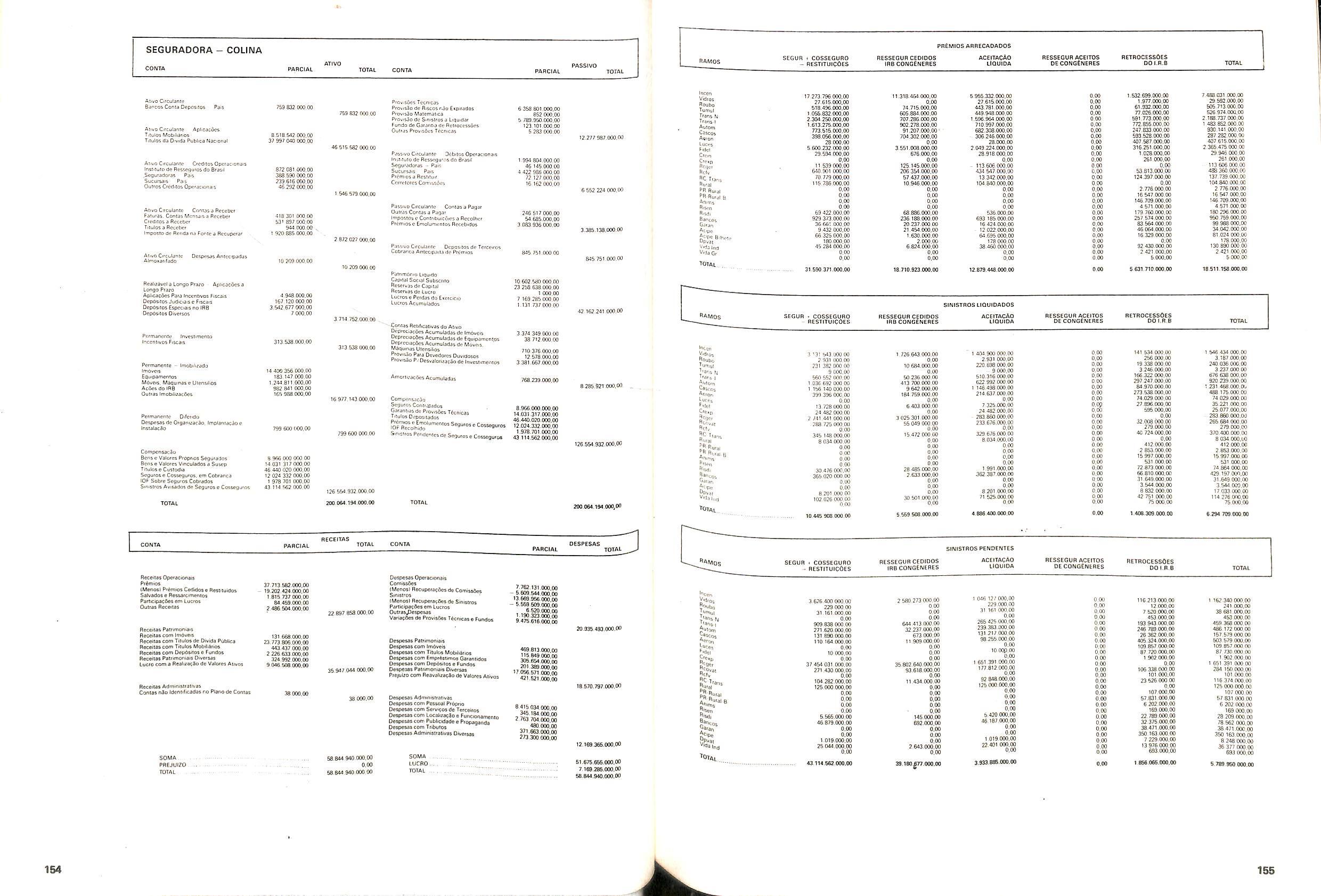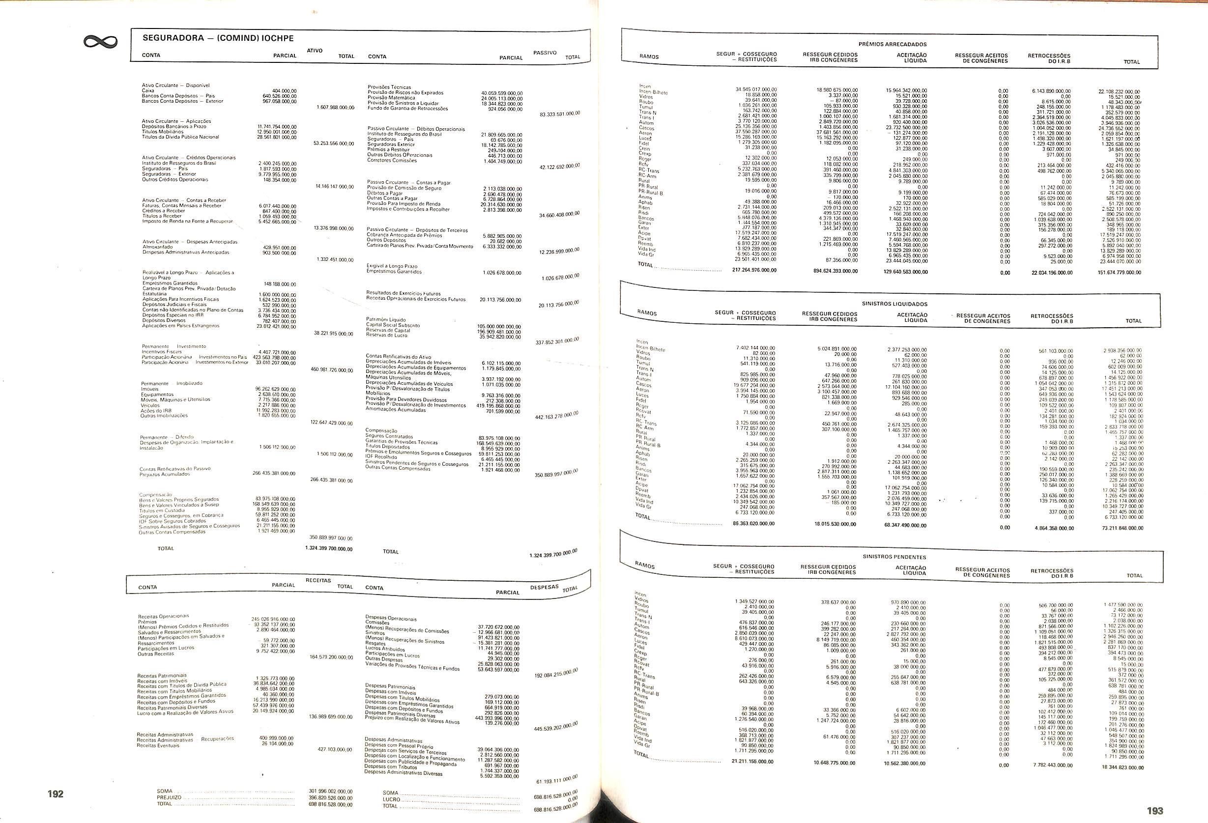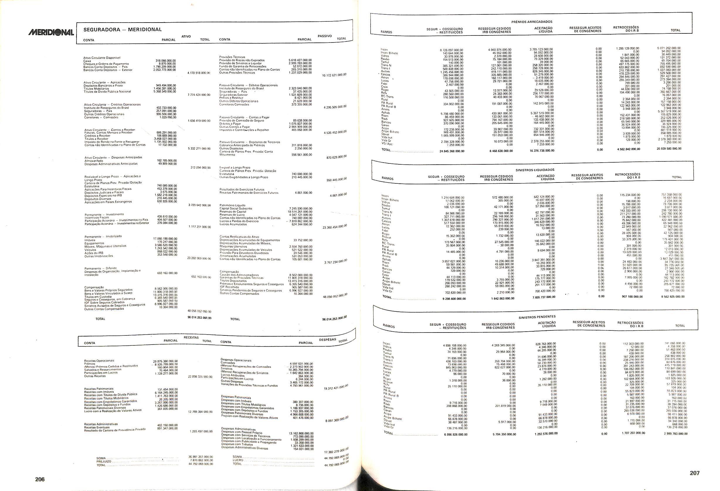 Histbrico; OriglnSria da representacao esirangelra da "Riuniona AdriStica de Sicurta". — Trieste — Itilia. Ano infcio operagoes: 1929; Atlvo iCquido: Cz$ 66.466.700,00; Elementares:482-1980; Capi tal Social: Cz$ 45.000.000,00; Limite operaclonal: Cz$ 1.402.000,00; Vida: 482 - 1980.