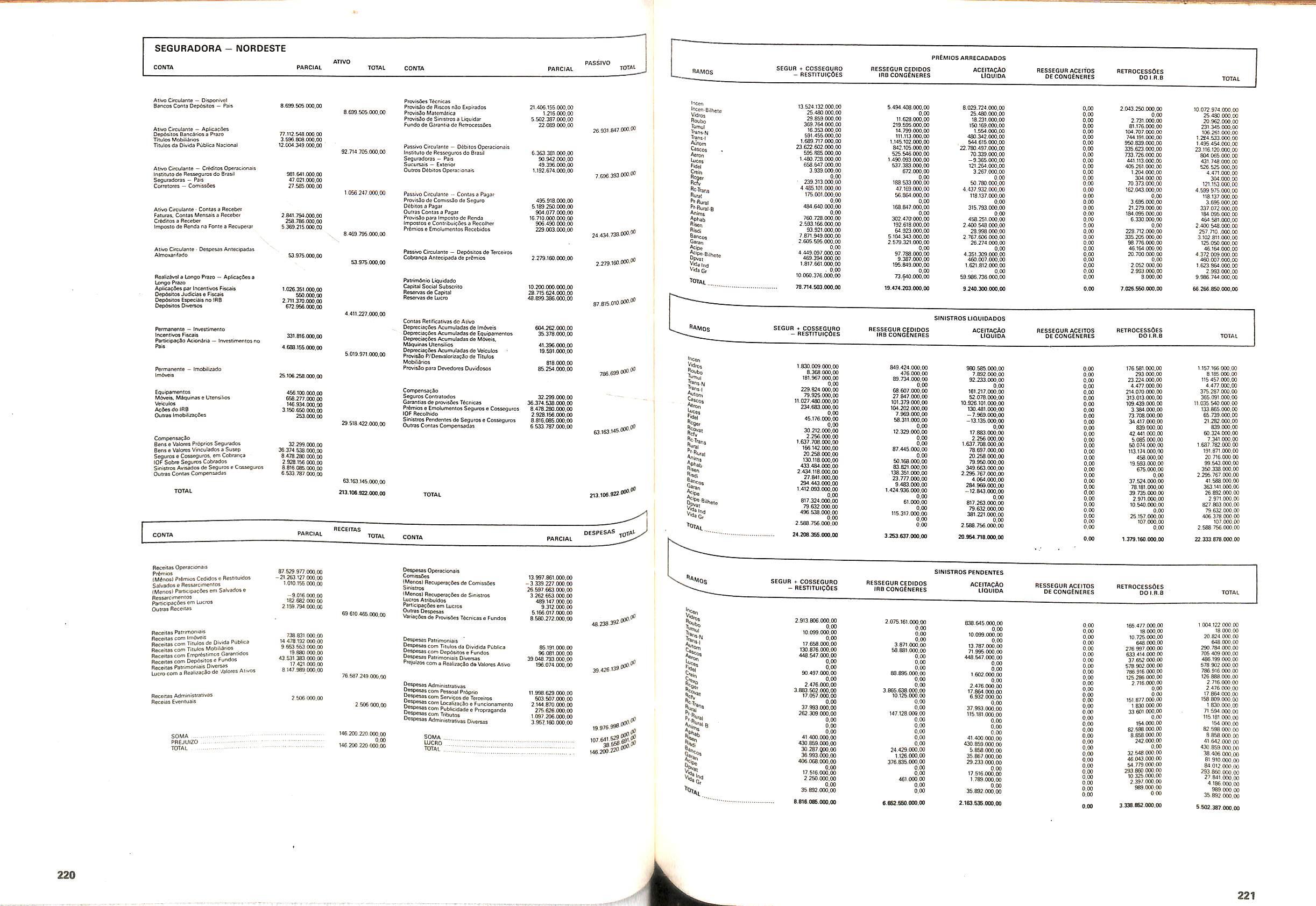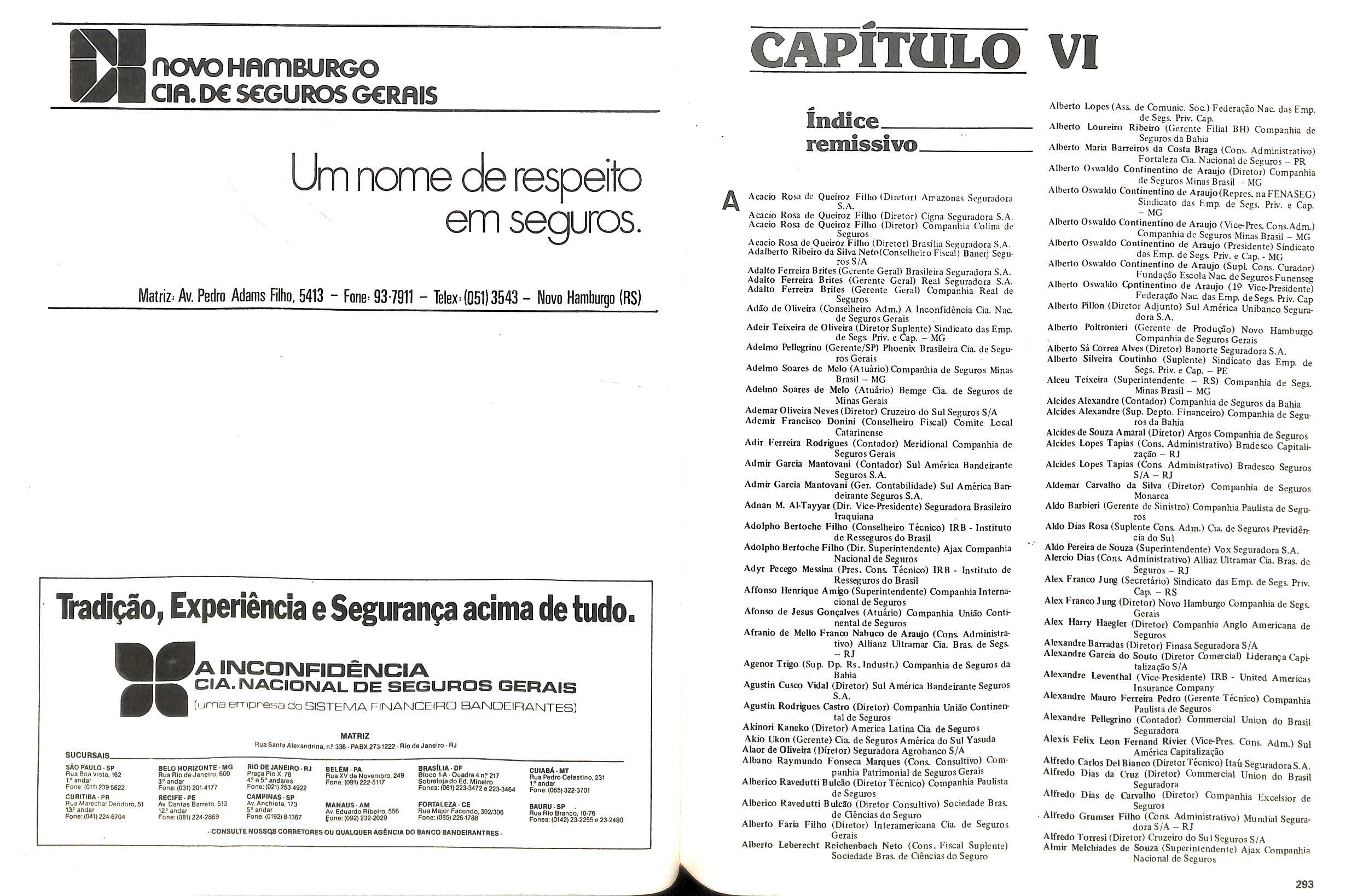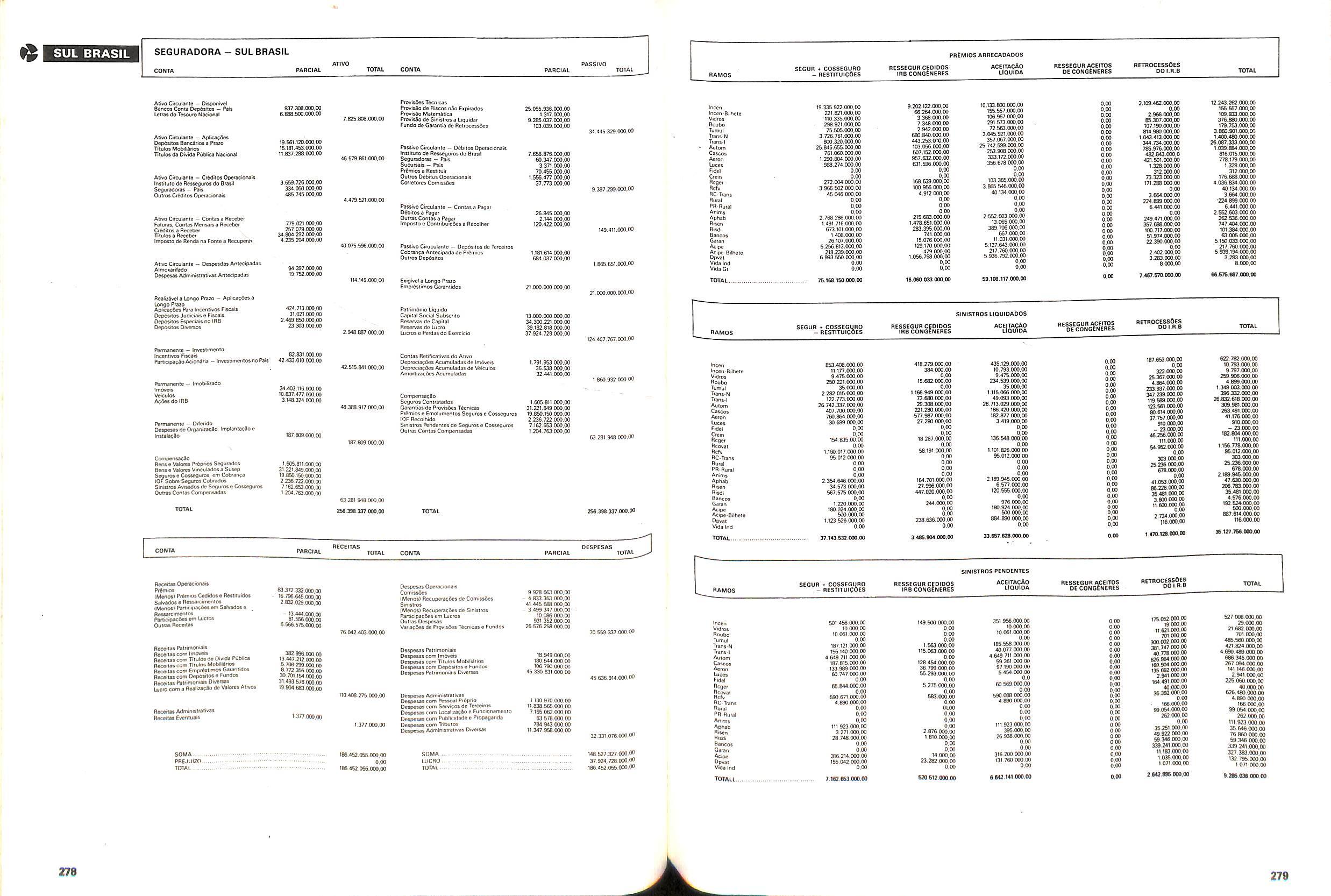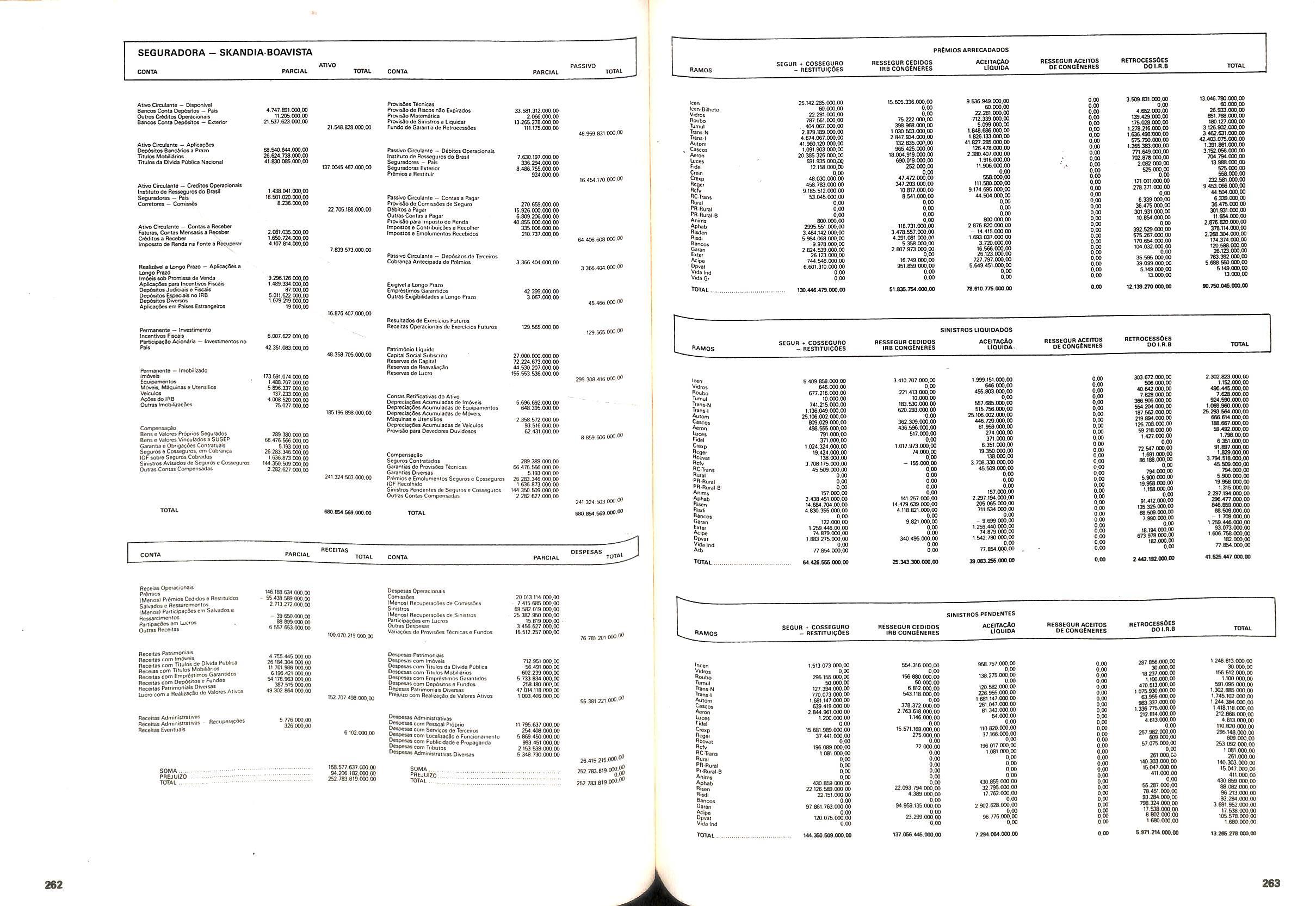 Histbrico; OriglnSria da representacao esirangelra da "Riuniona AdriStica de Sicurta". — Trieste — Itilia. Ano infcio operagoes: 1929; Atlvo iCquido: Cz$ 66.466.700,00; Elementares:482-1980; Capi tal Social: Cz$ 45.000.000,00; Limite operaclonal: Cz$ 1.402.000,00; Vida: 482 - 1980.