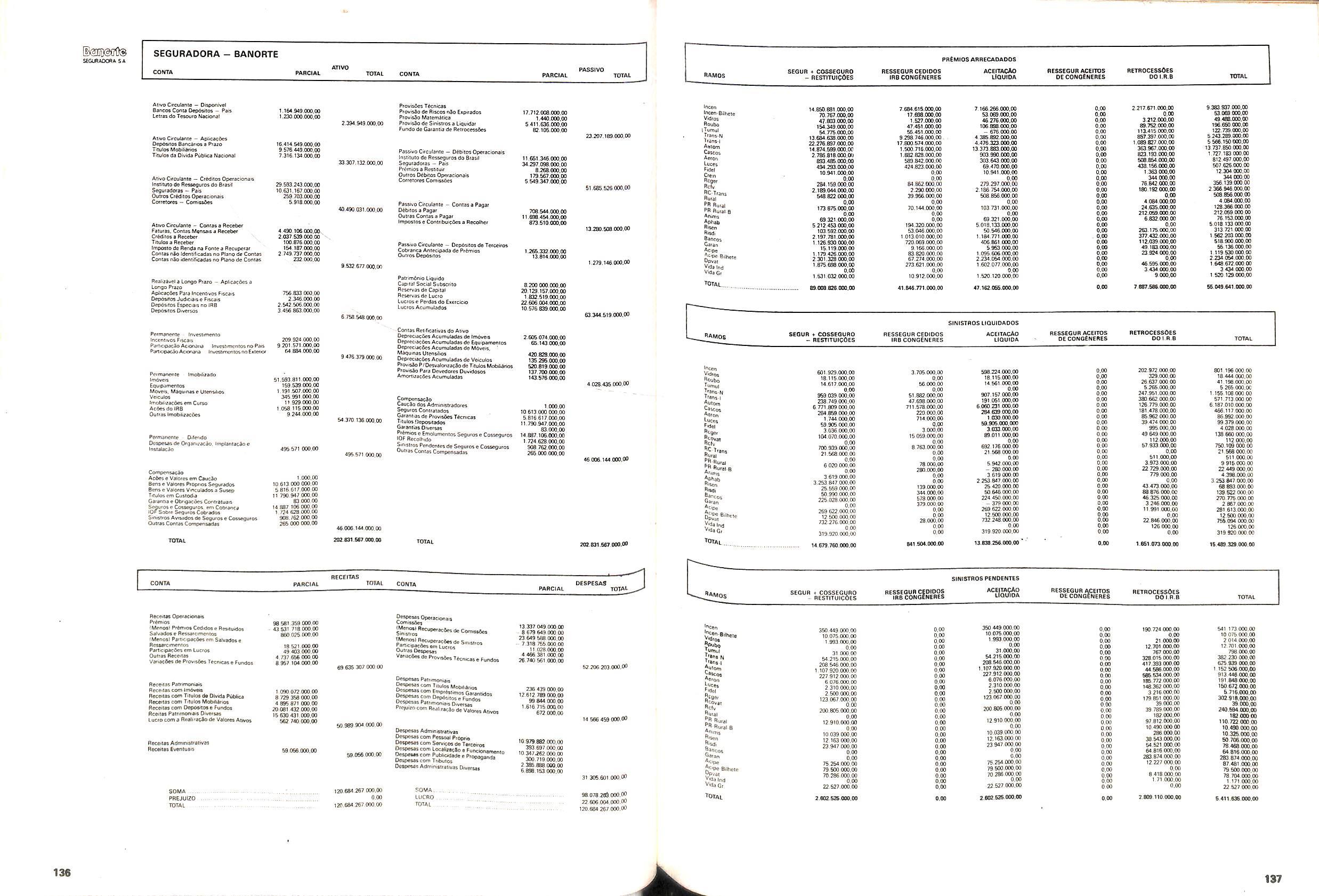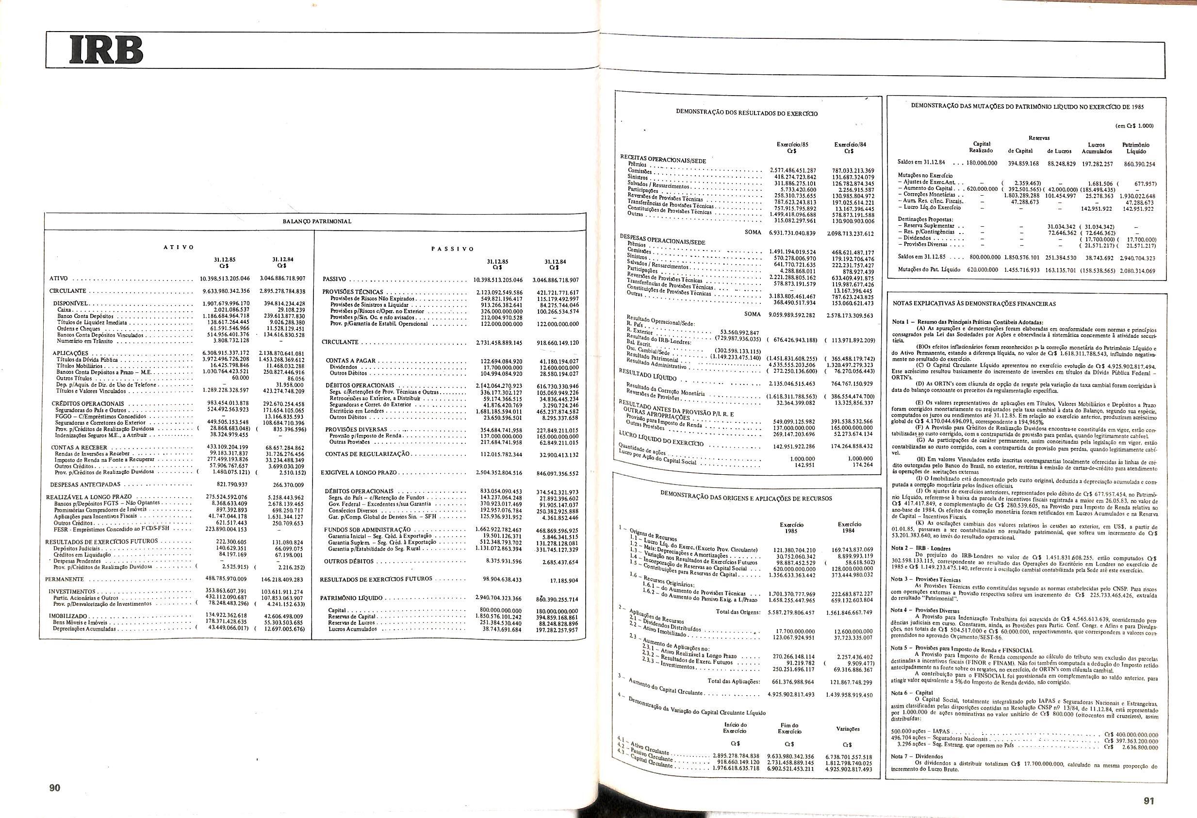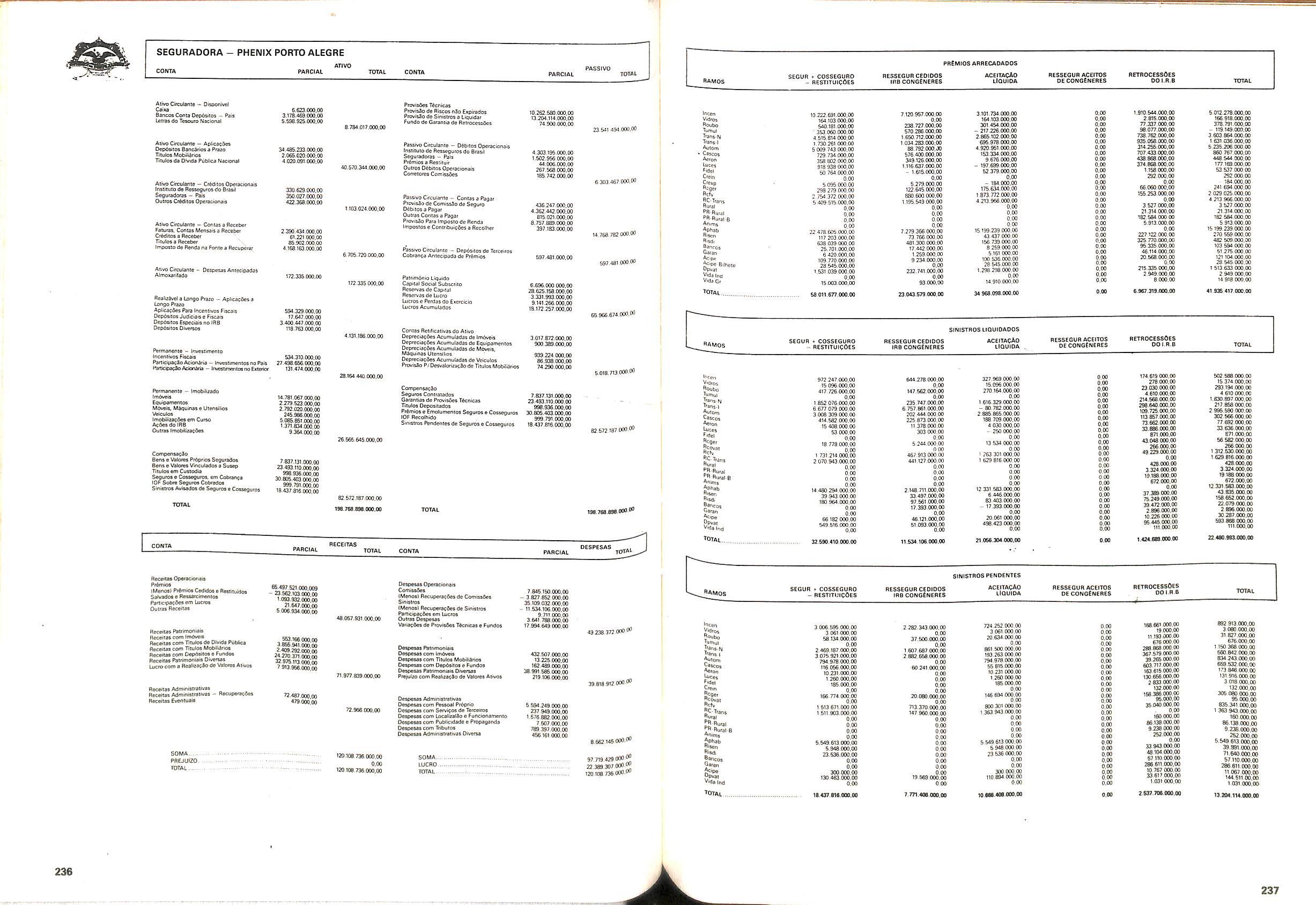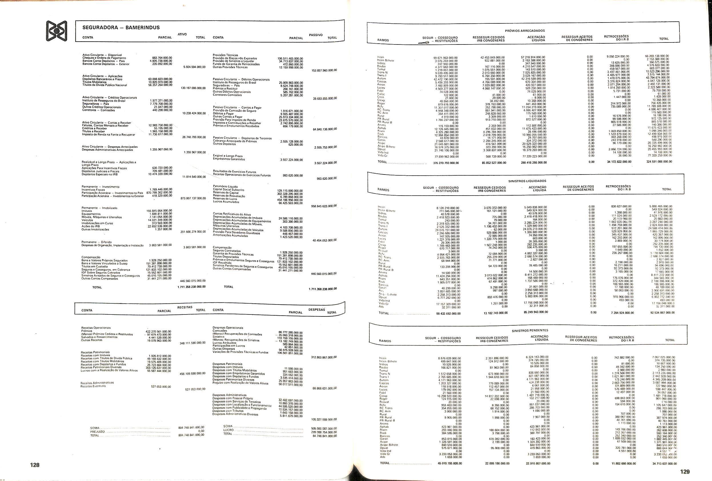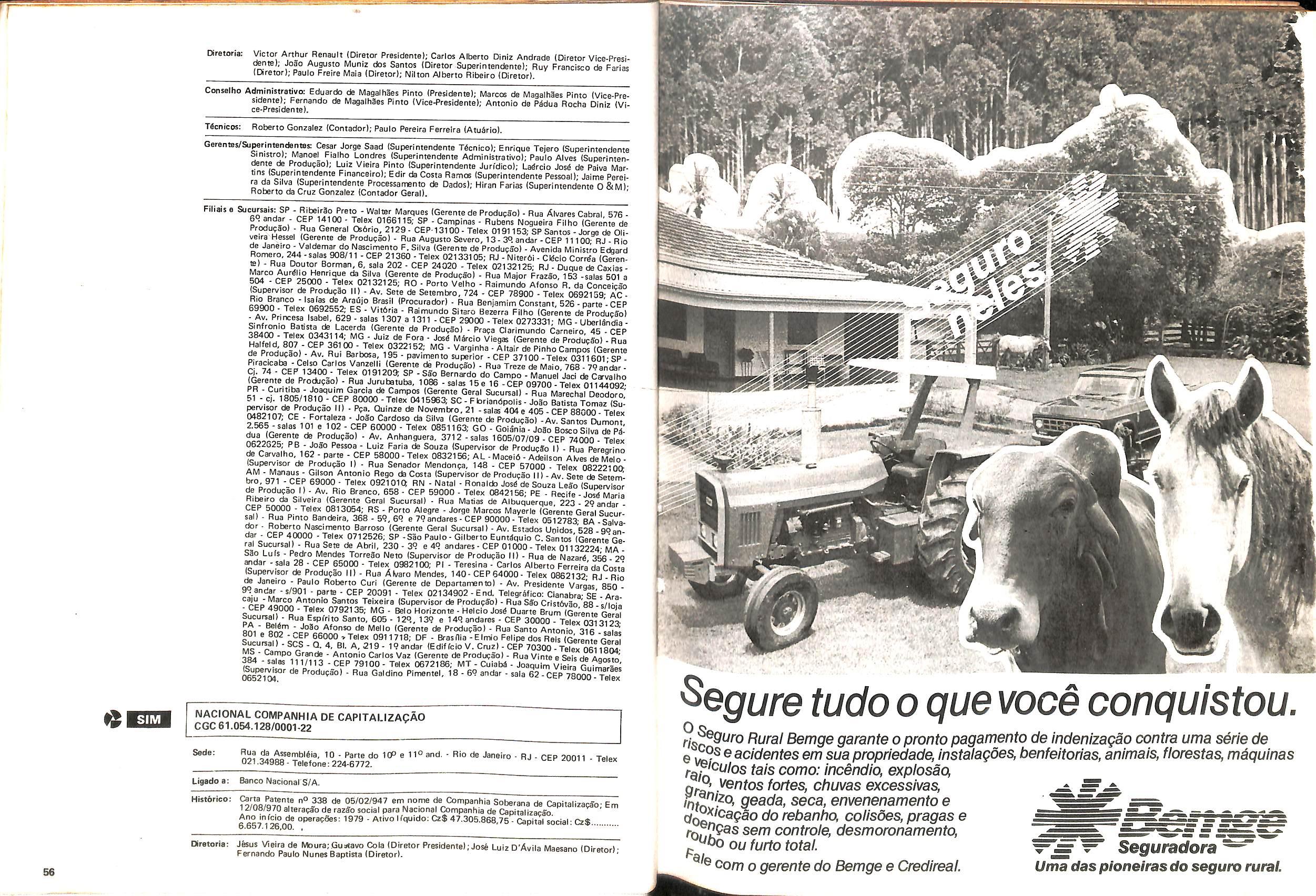 Histbrico; OriglnSria da representacao esirangelra da "Riuniona AdriStica de Sicurta". — Trieste — Itilia. Ano infcio operagoes: 1929; Atlvo iCquido: Cz$ 66.466.700,00; Elementares:482-1980; Capi tal Social: Cz$ 45.000.000,00; Limite operaclonal: Cz$ 1.402.000,00; Vida: 482 - 1980.