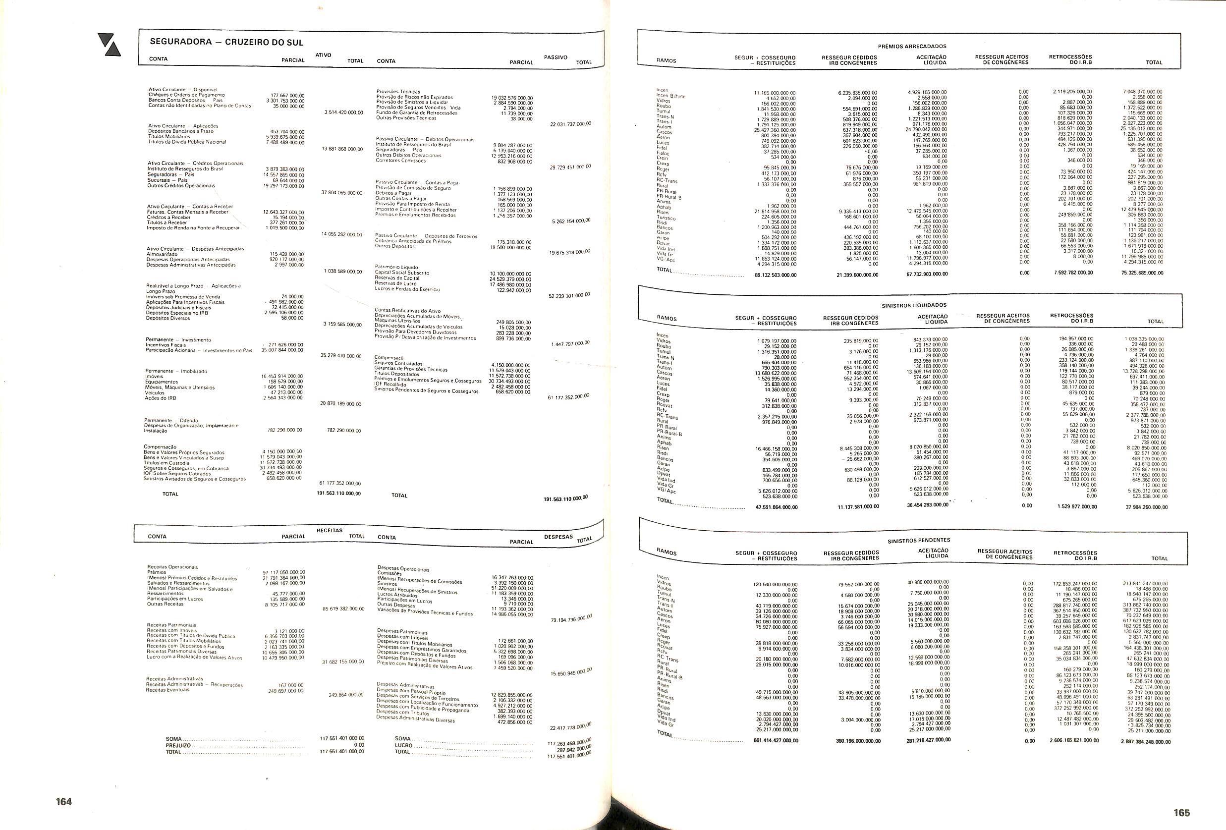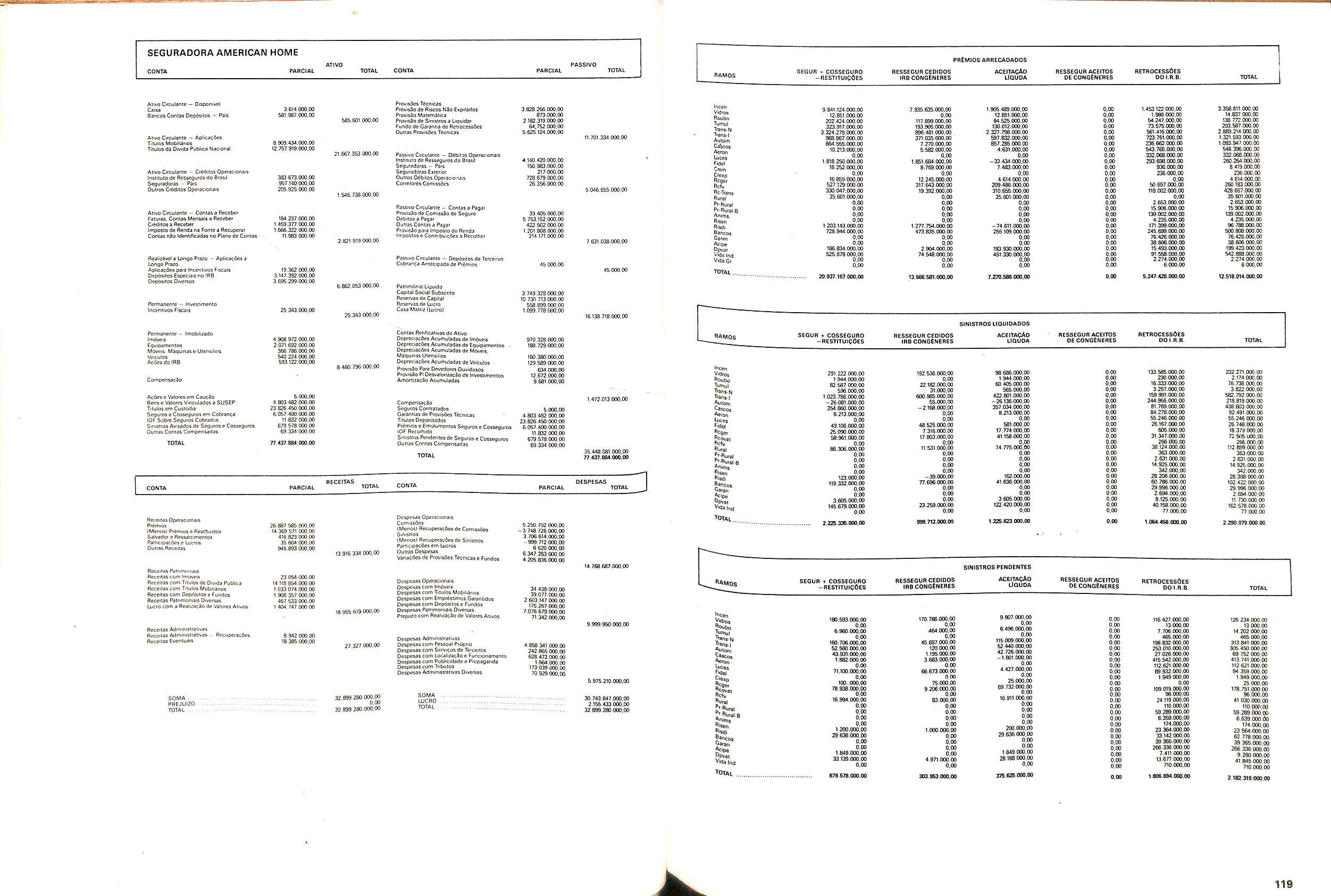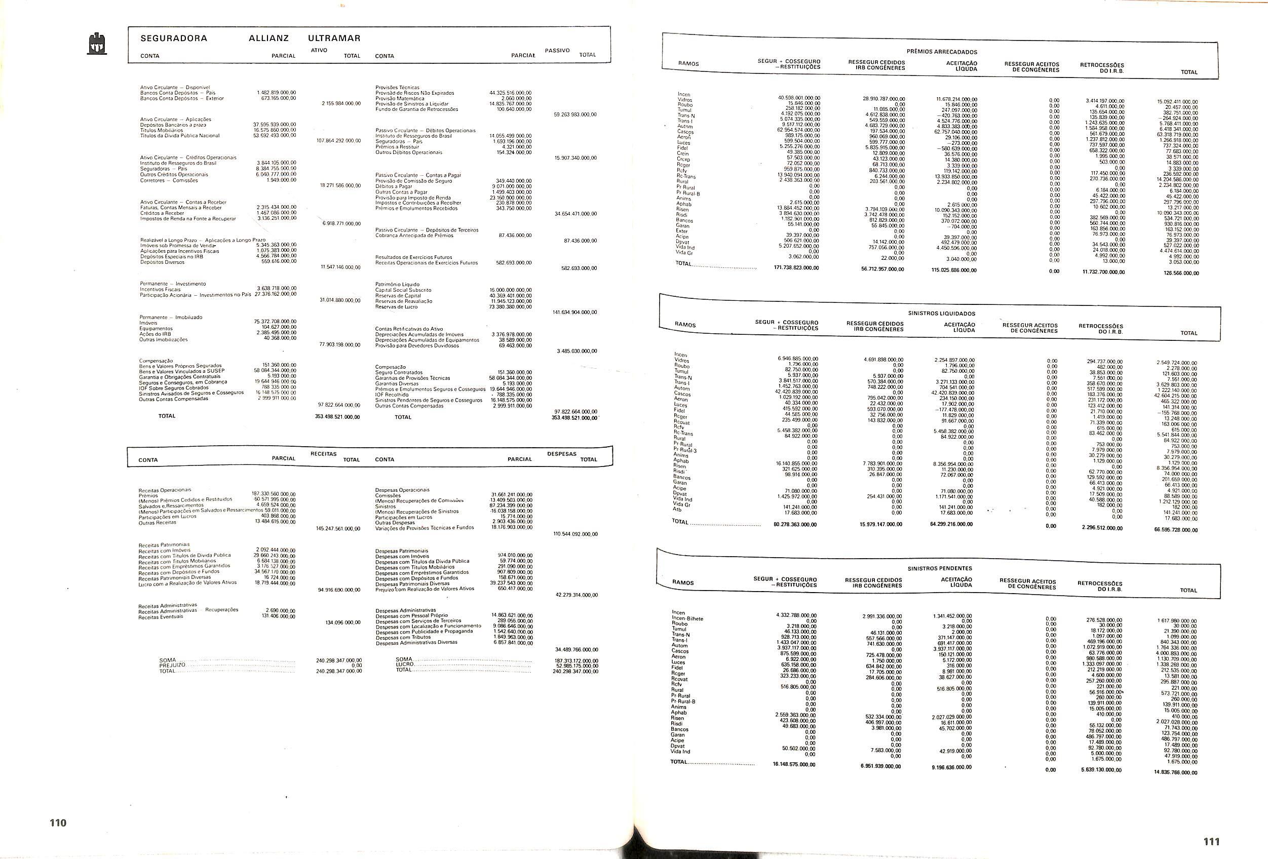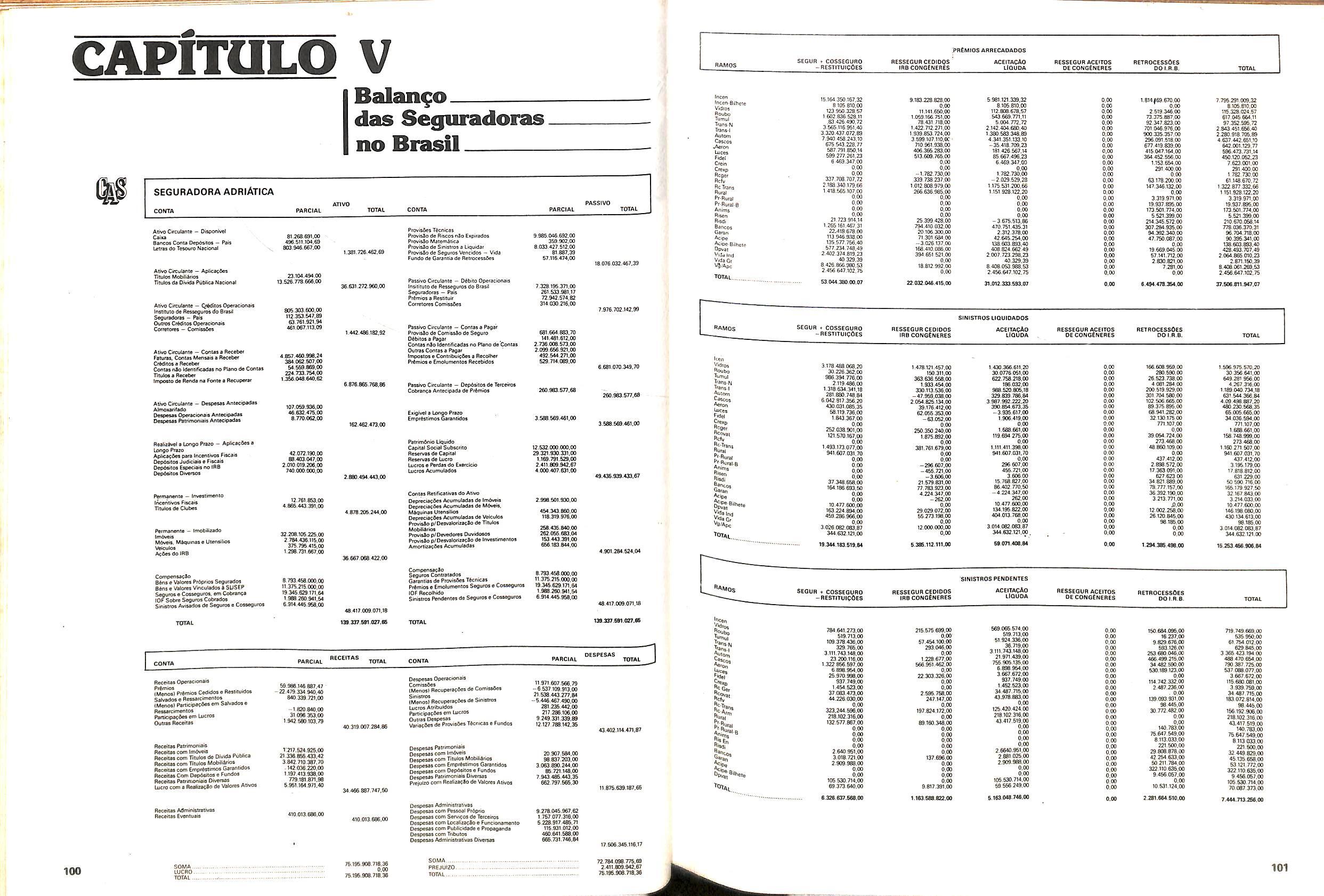 V Balan^o das Seguradoras no Brasil pag,lOO