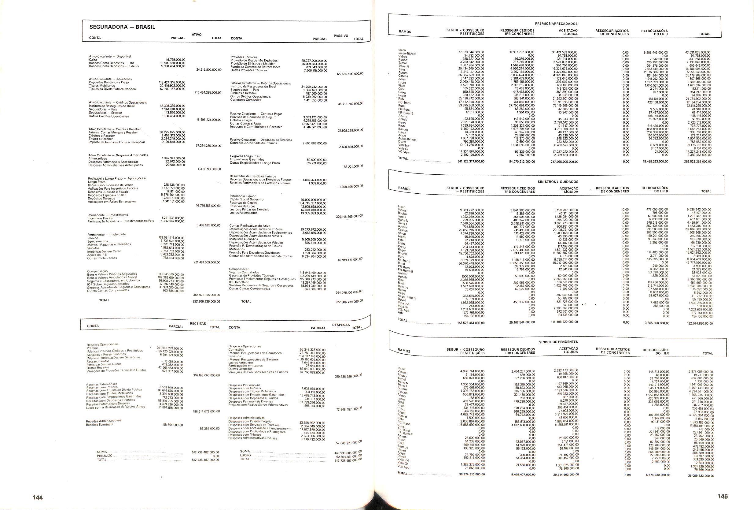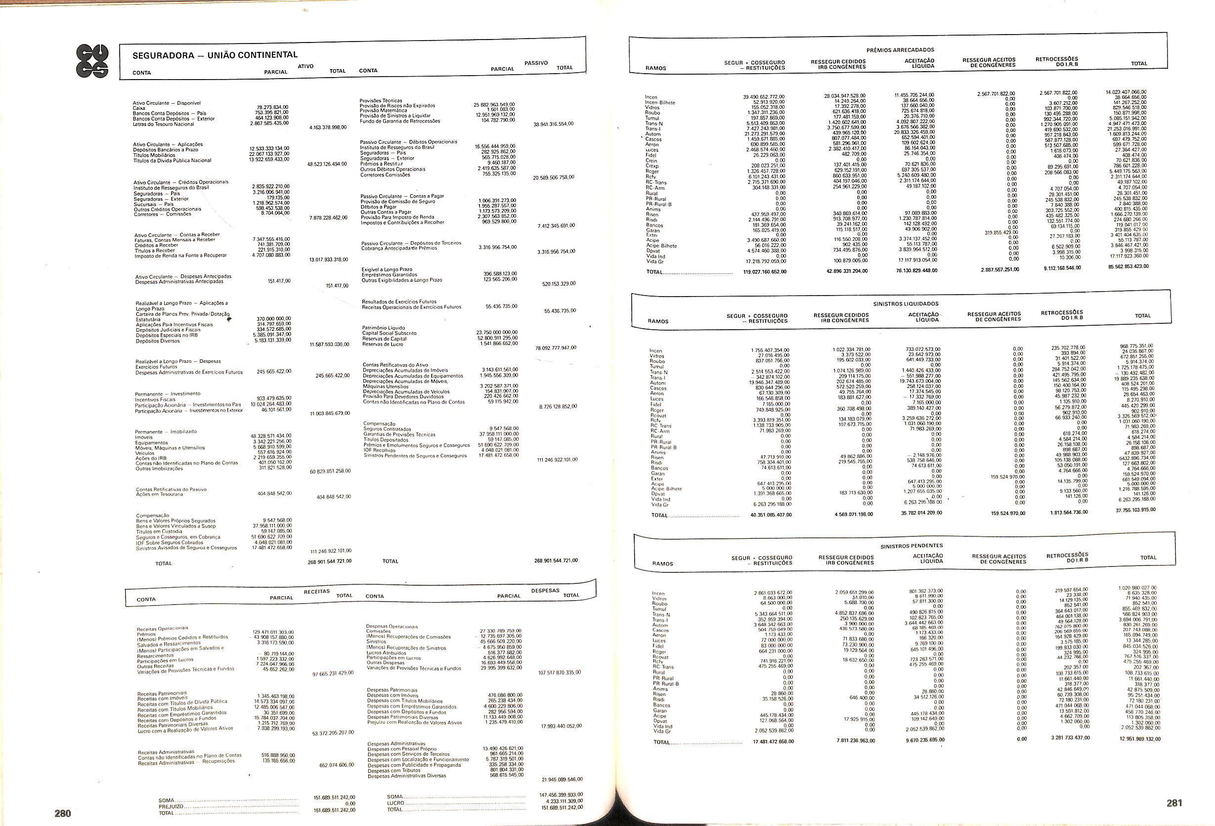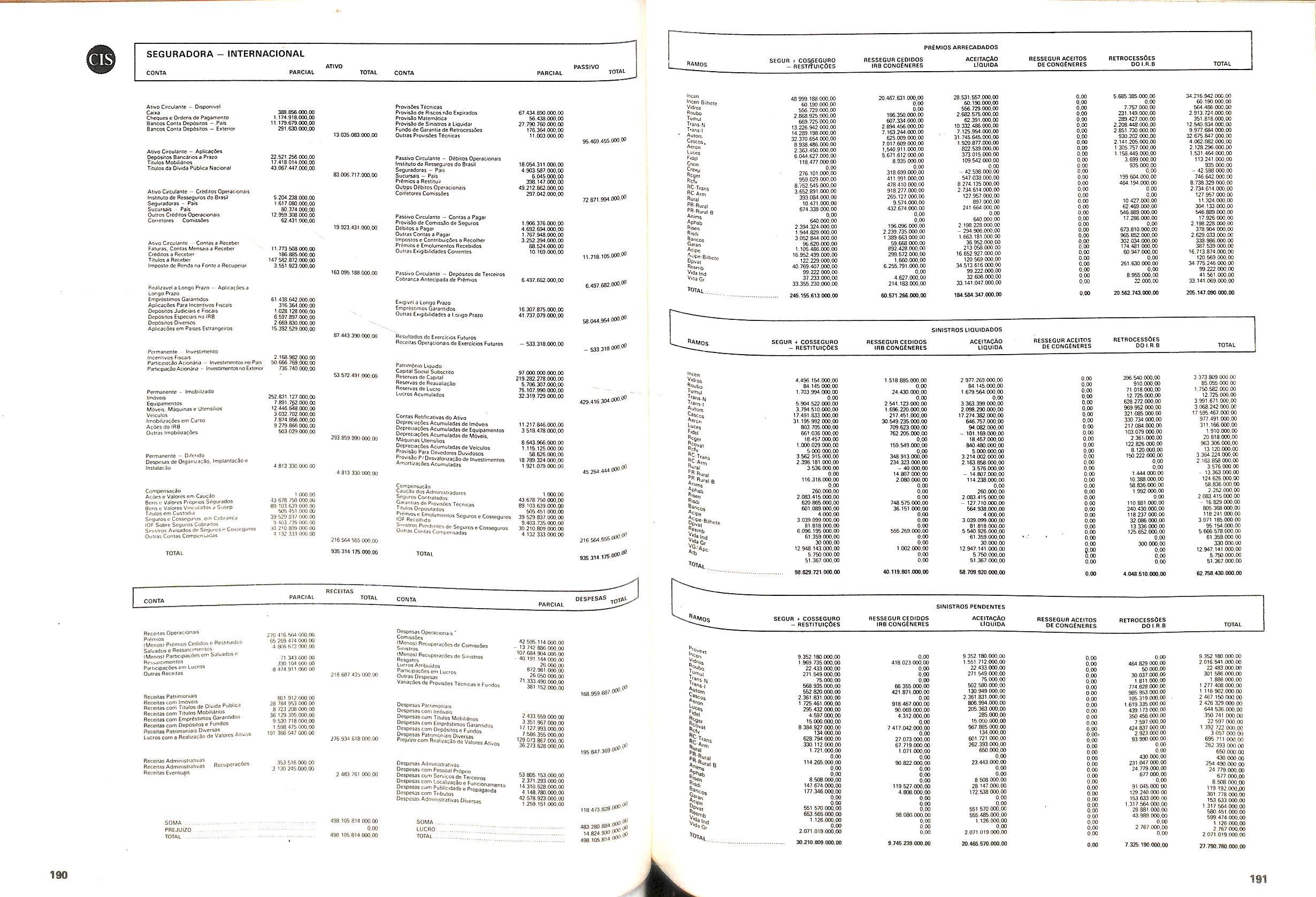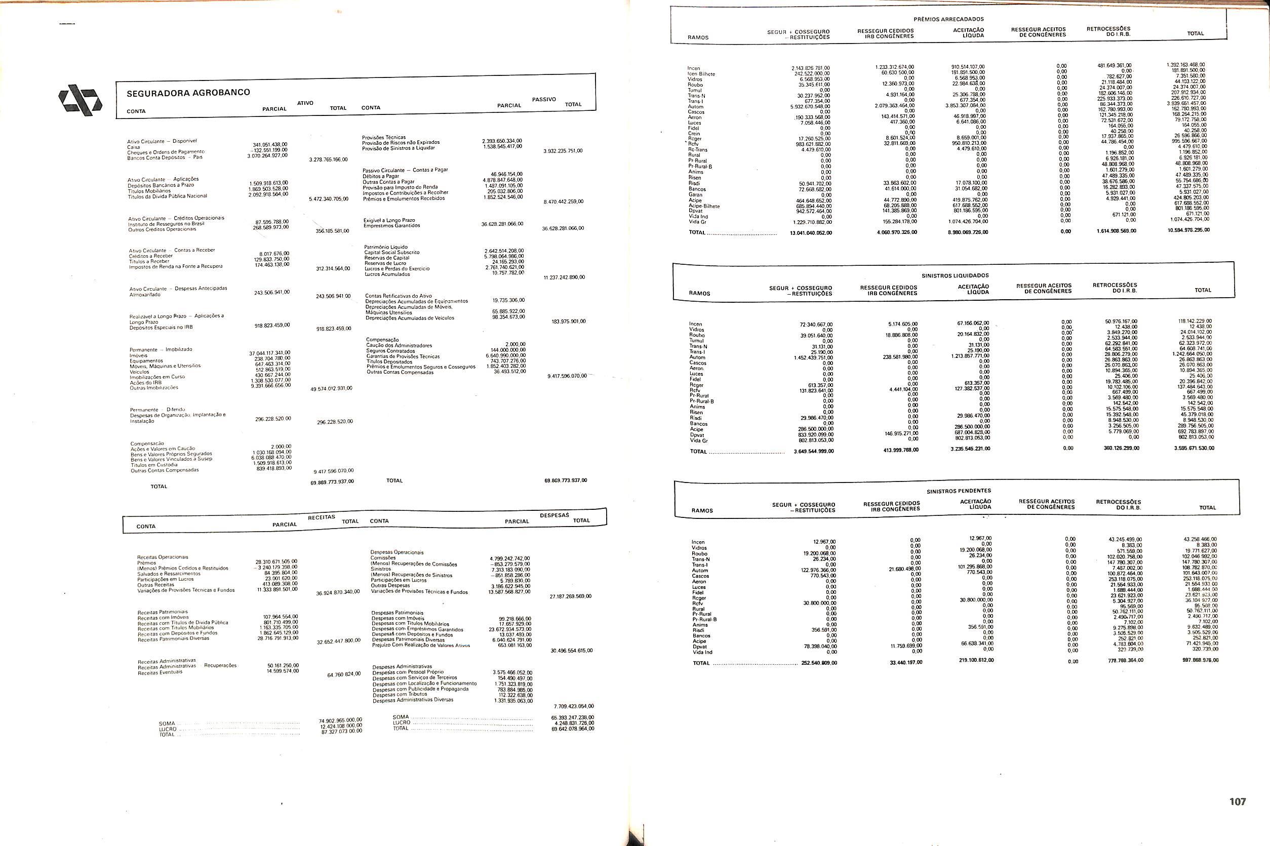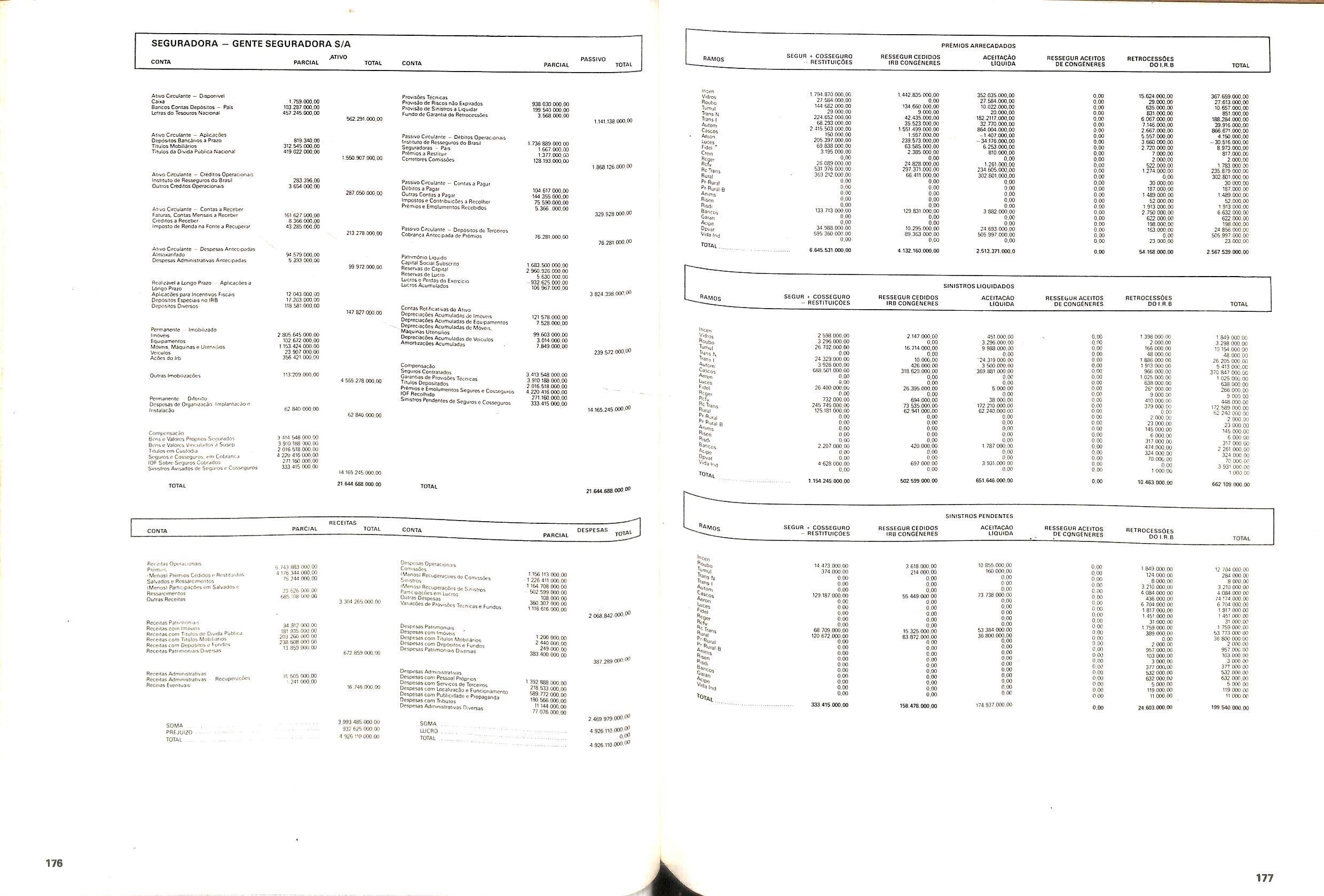 V Balan^o das Seguradoras no Brasil pag,lOO