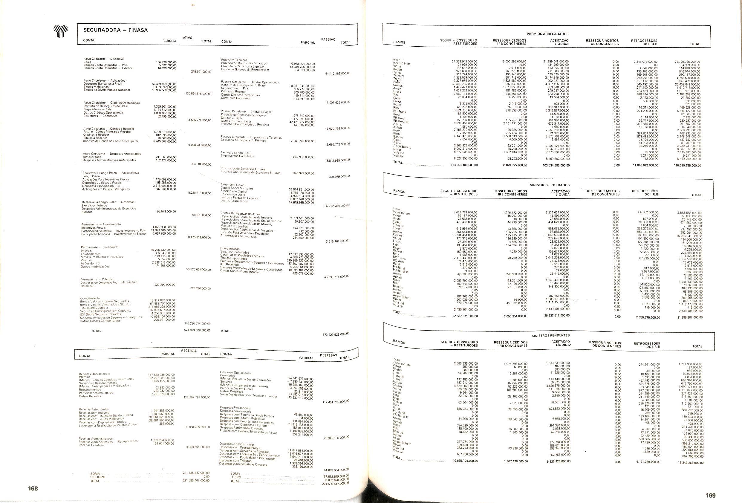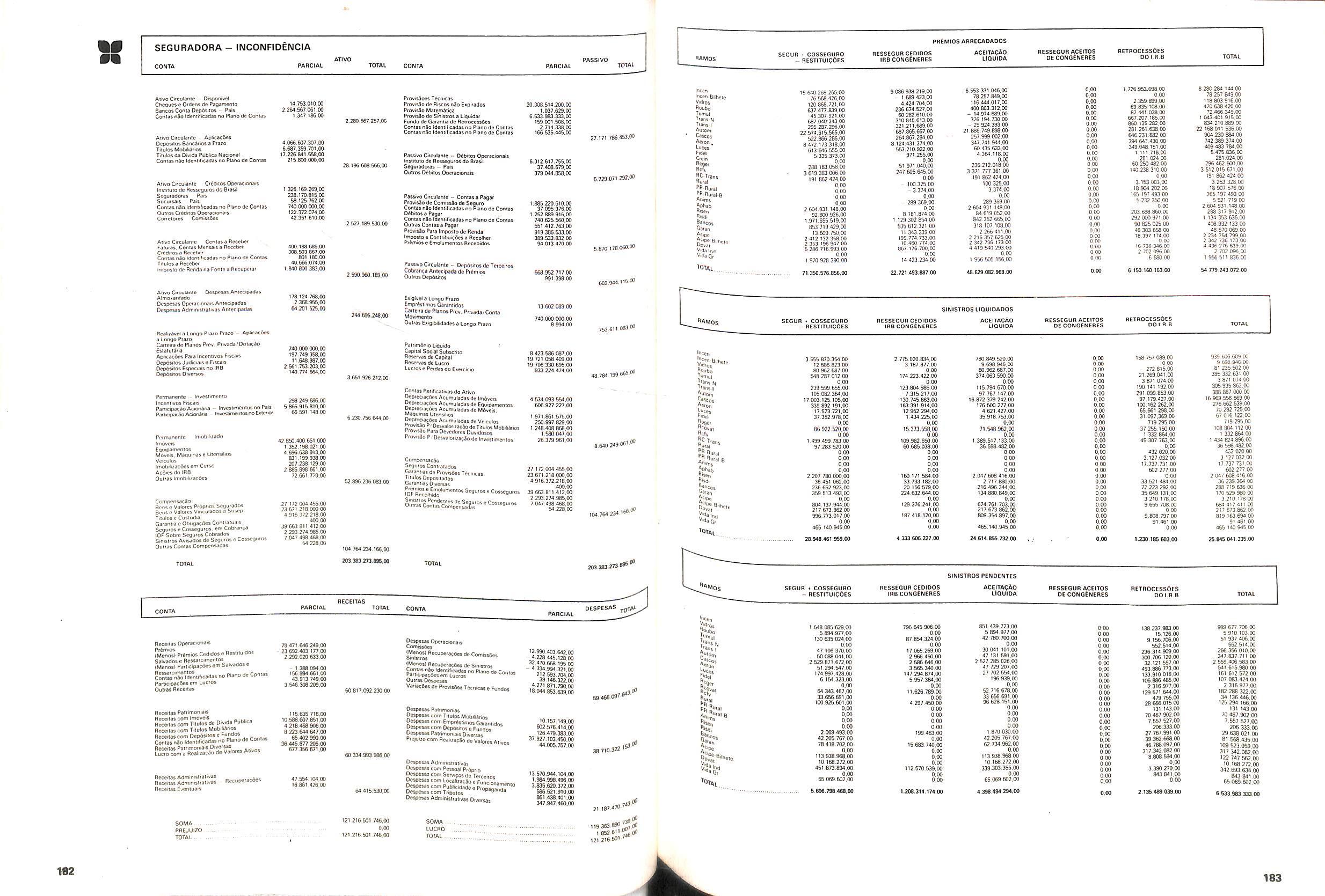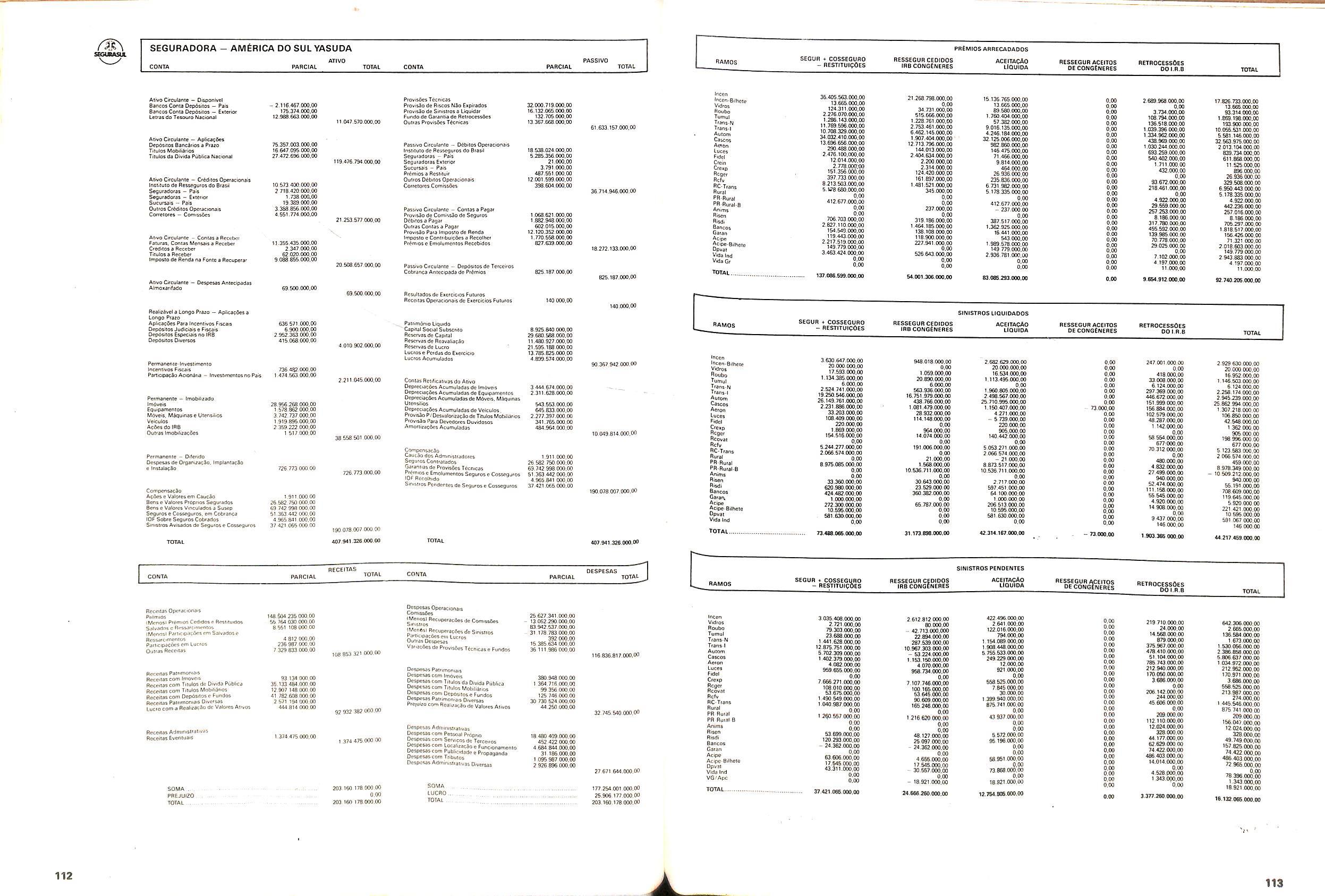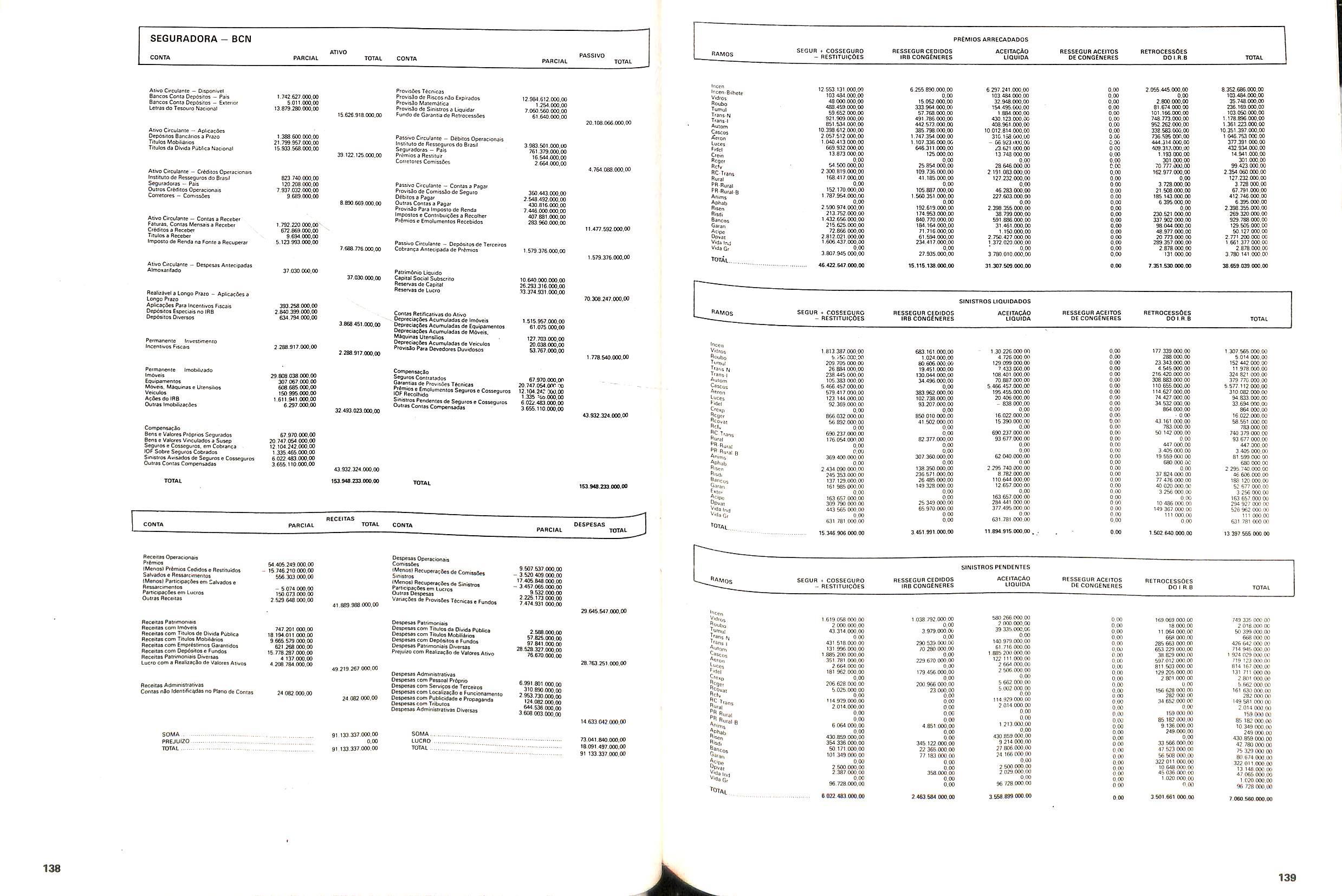 V Balan^o das Seguradoras no Brasil pag,lOO