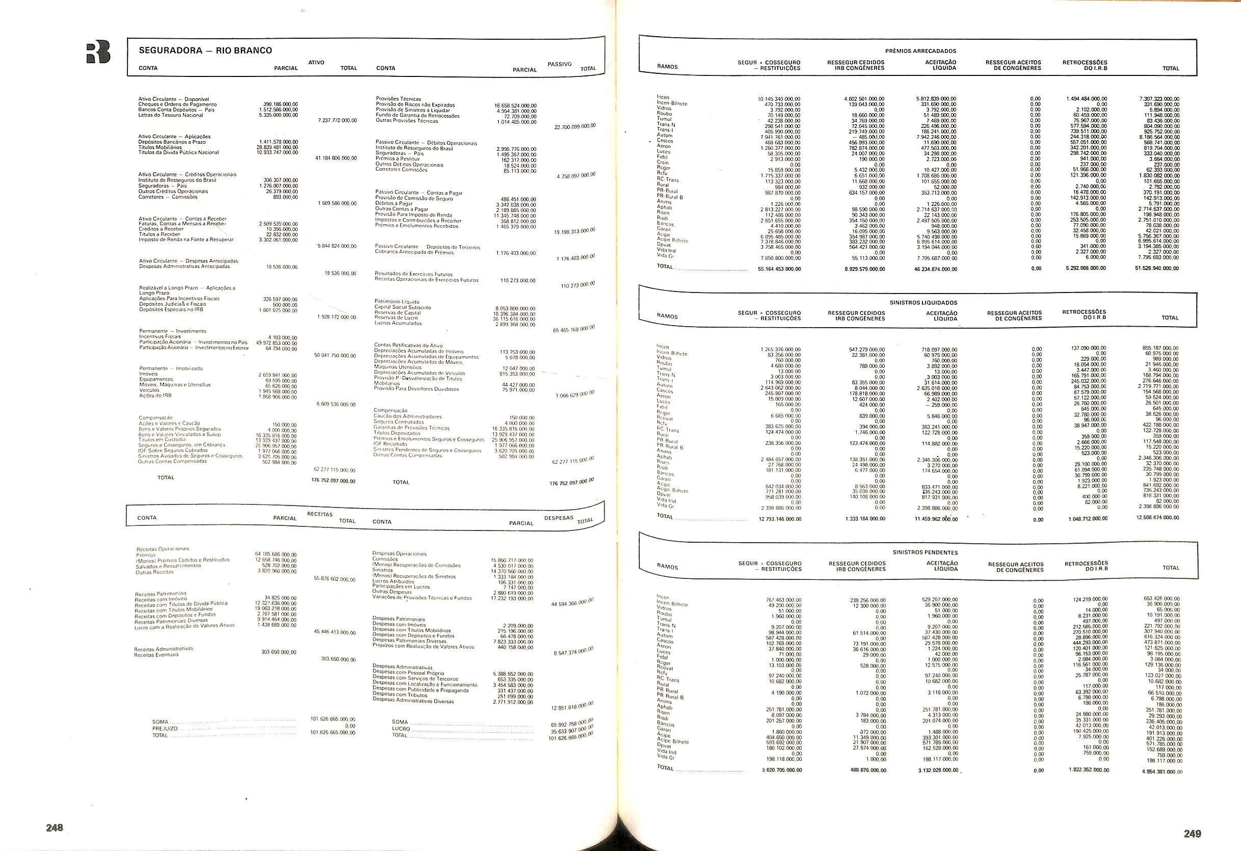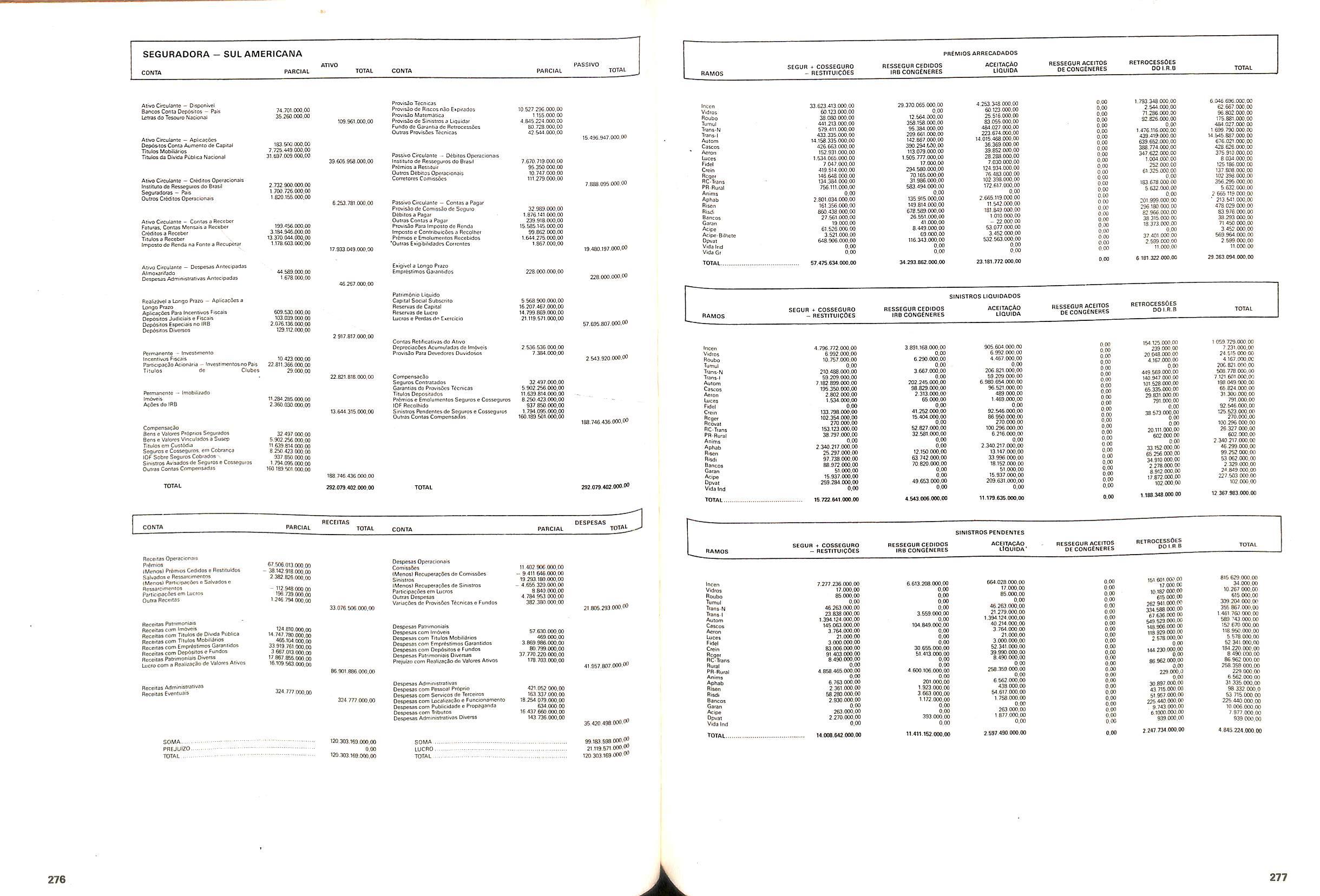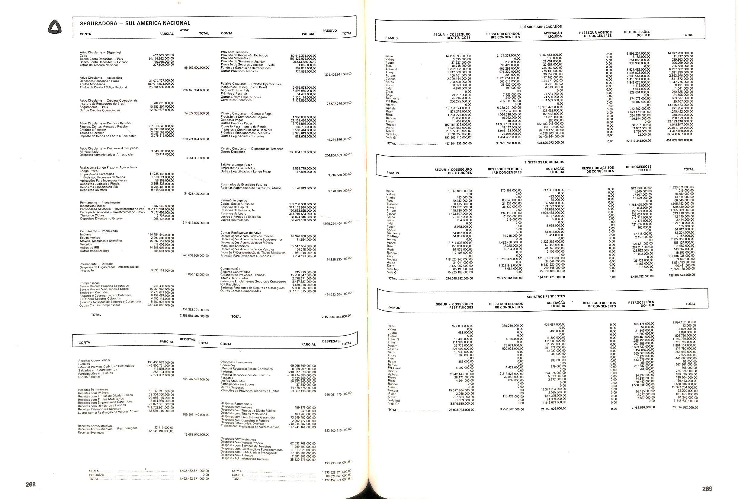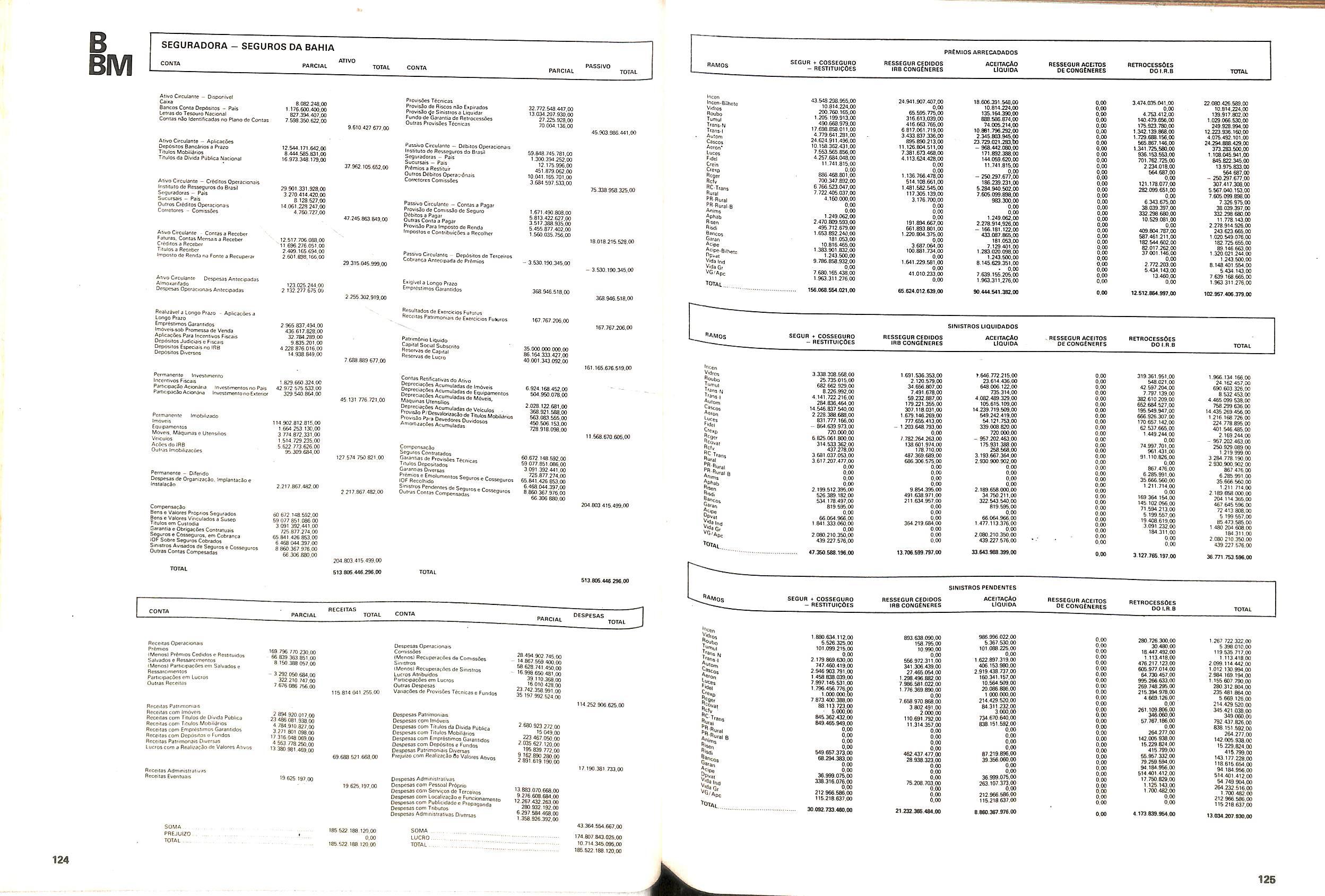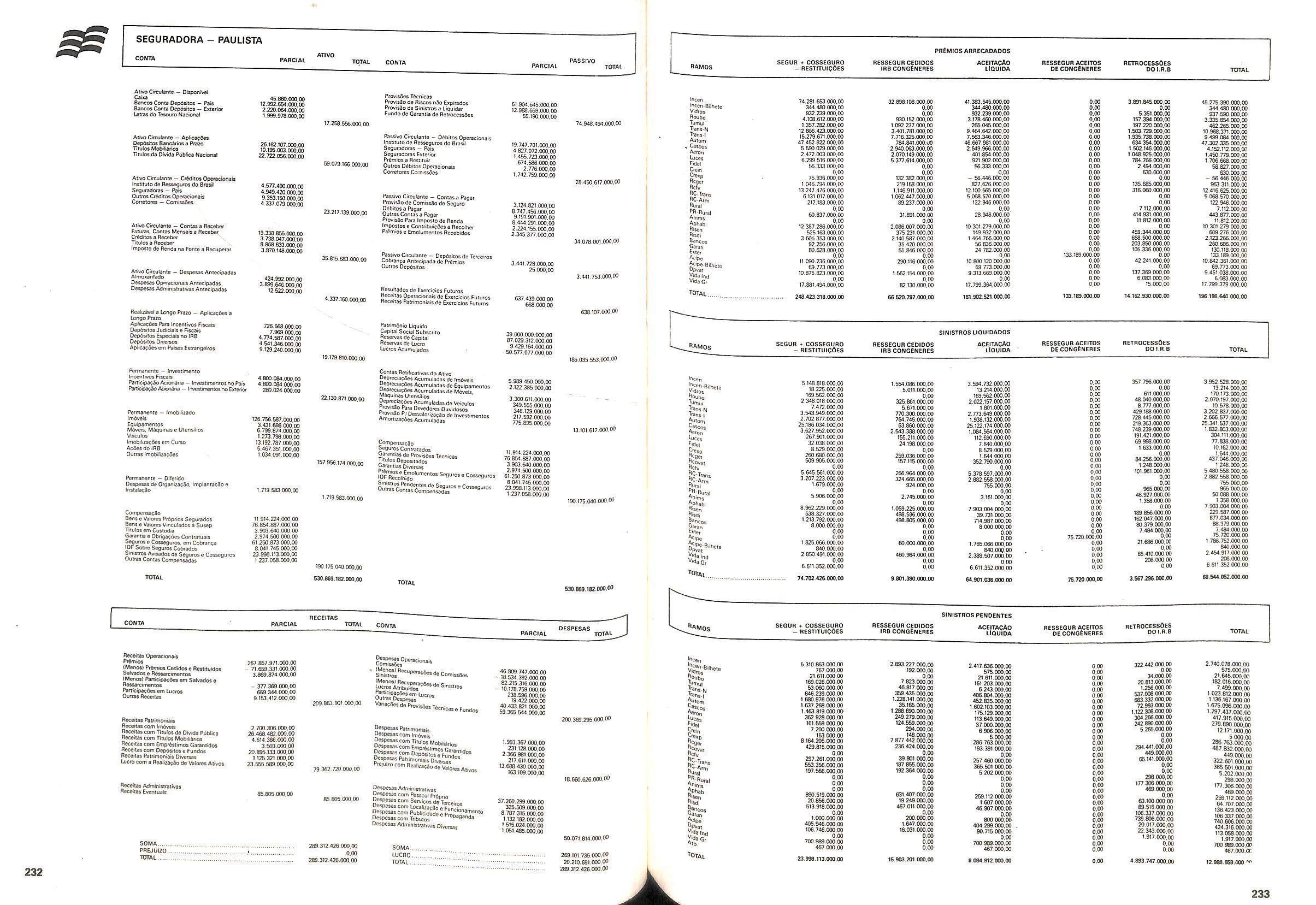 V Balan^o das Seguradoras no Brasil pag,lOO