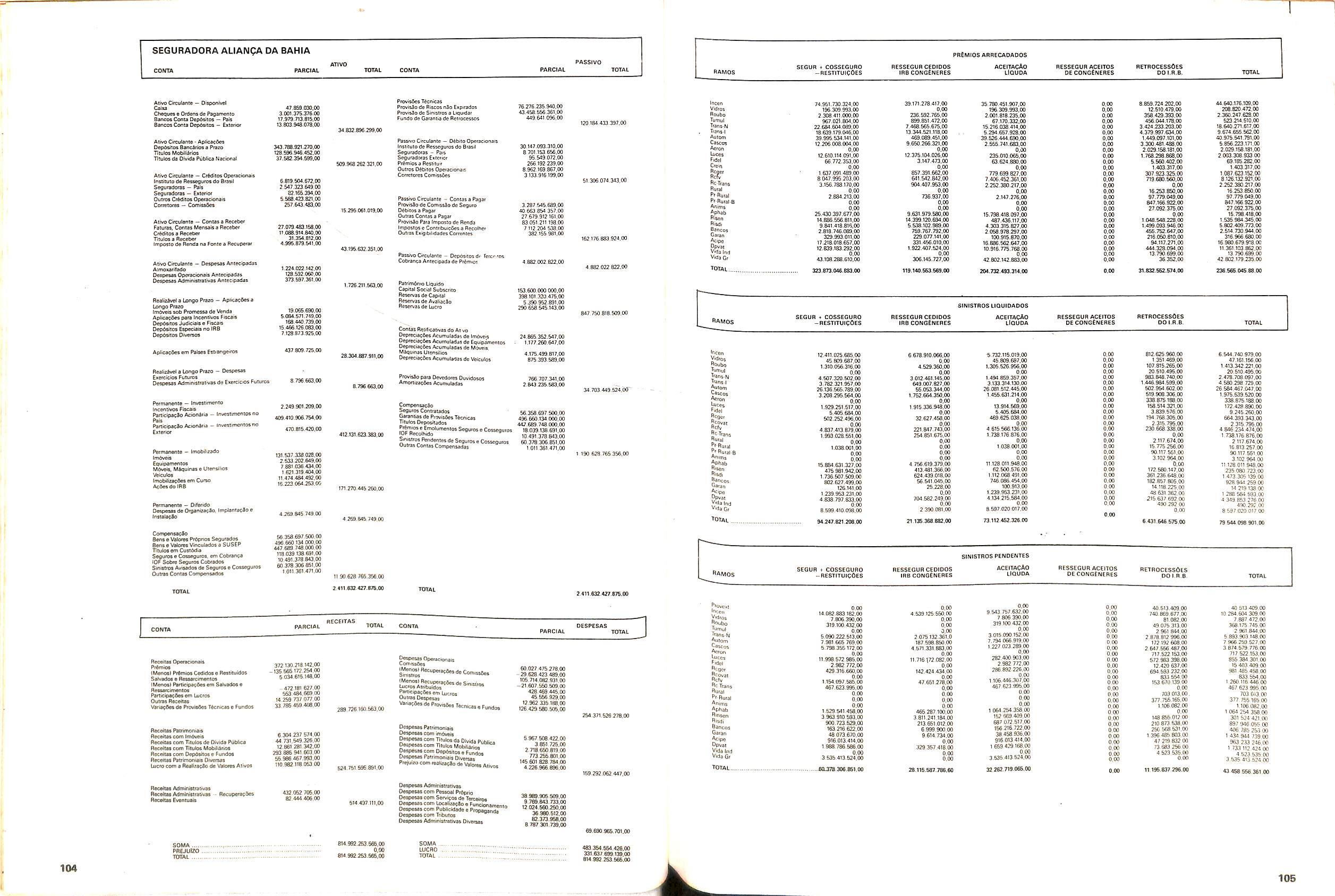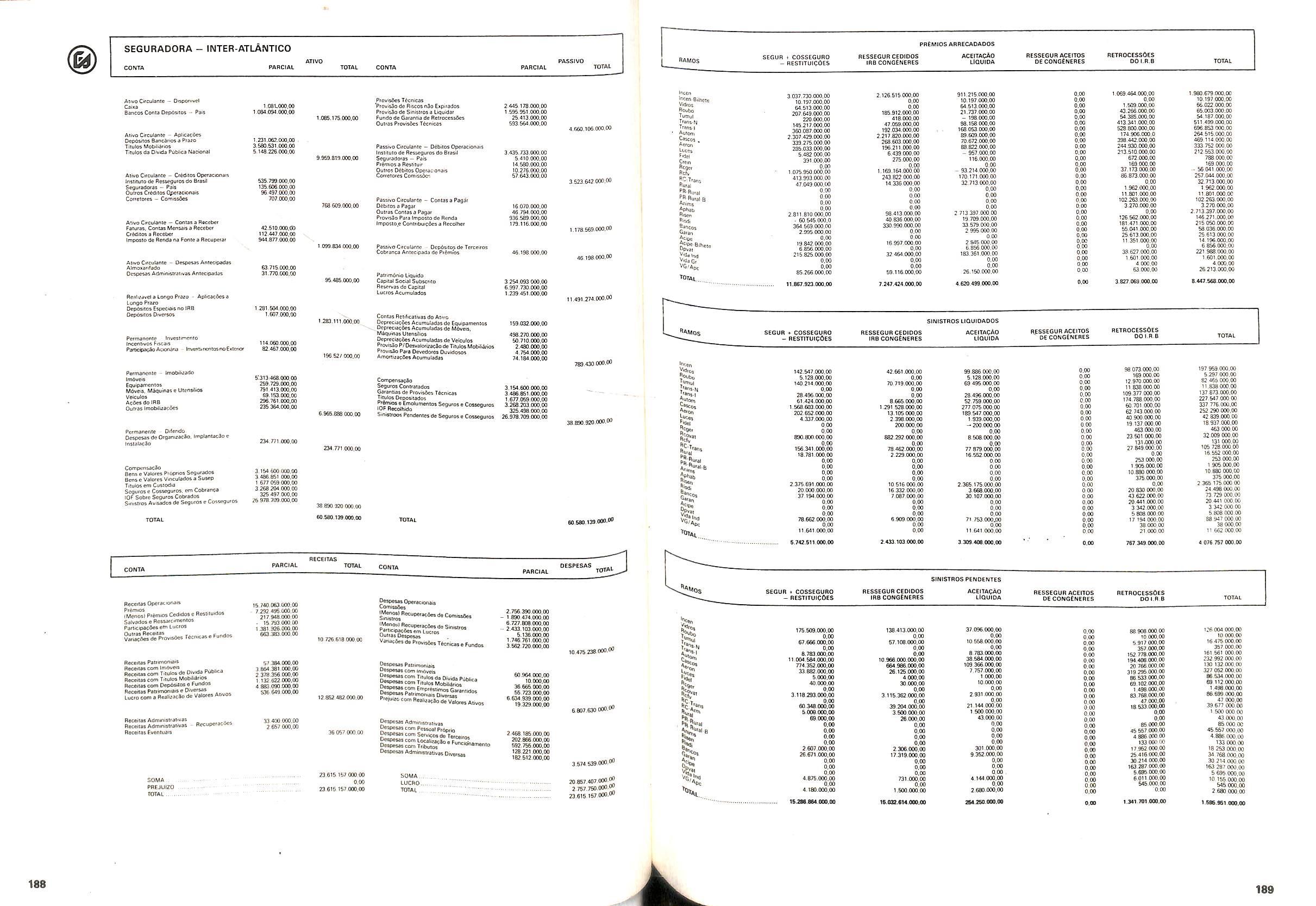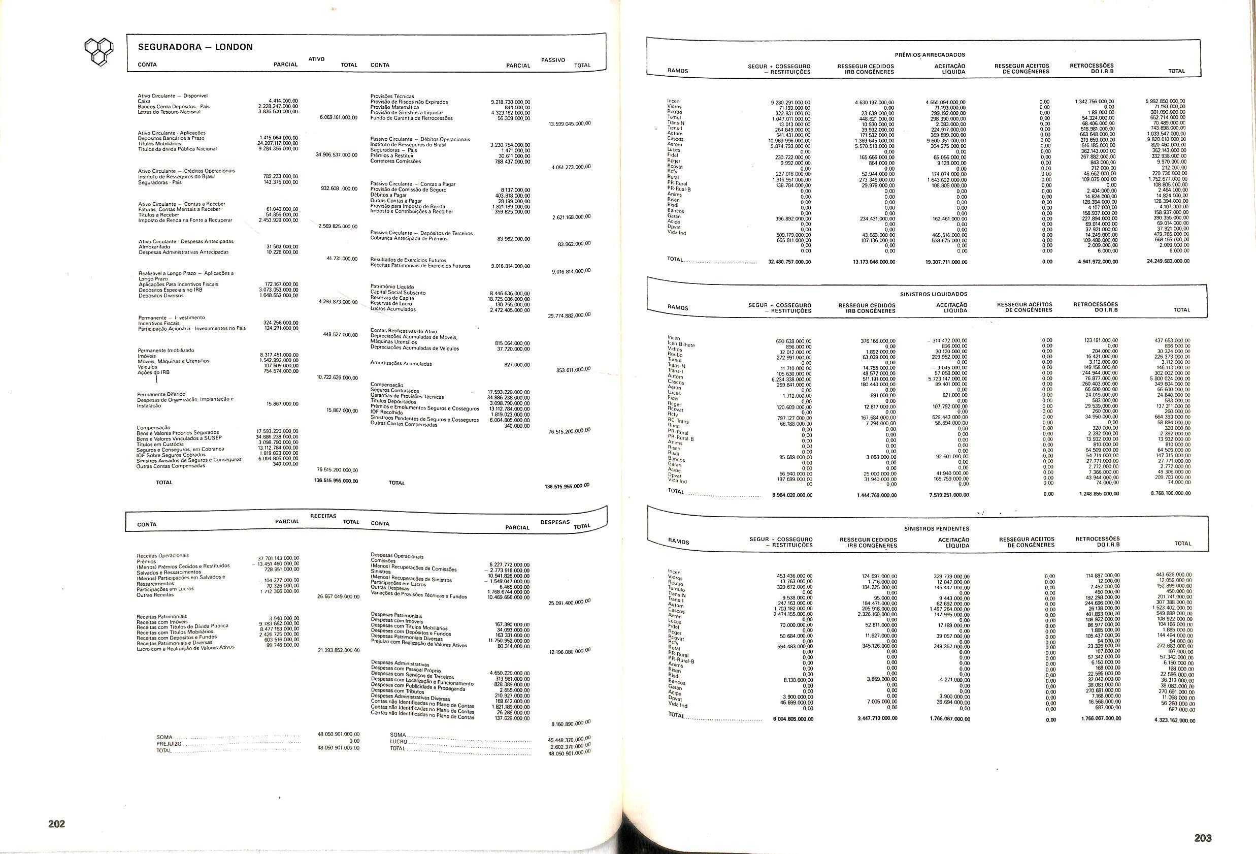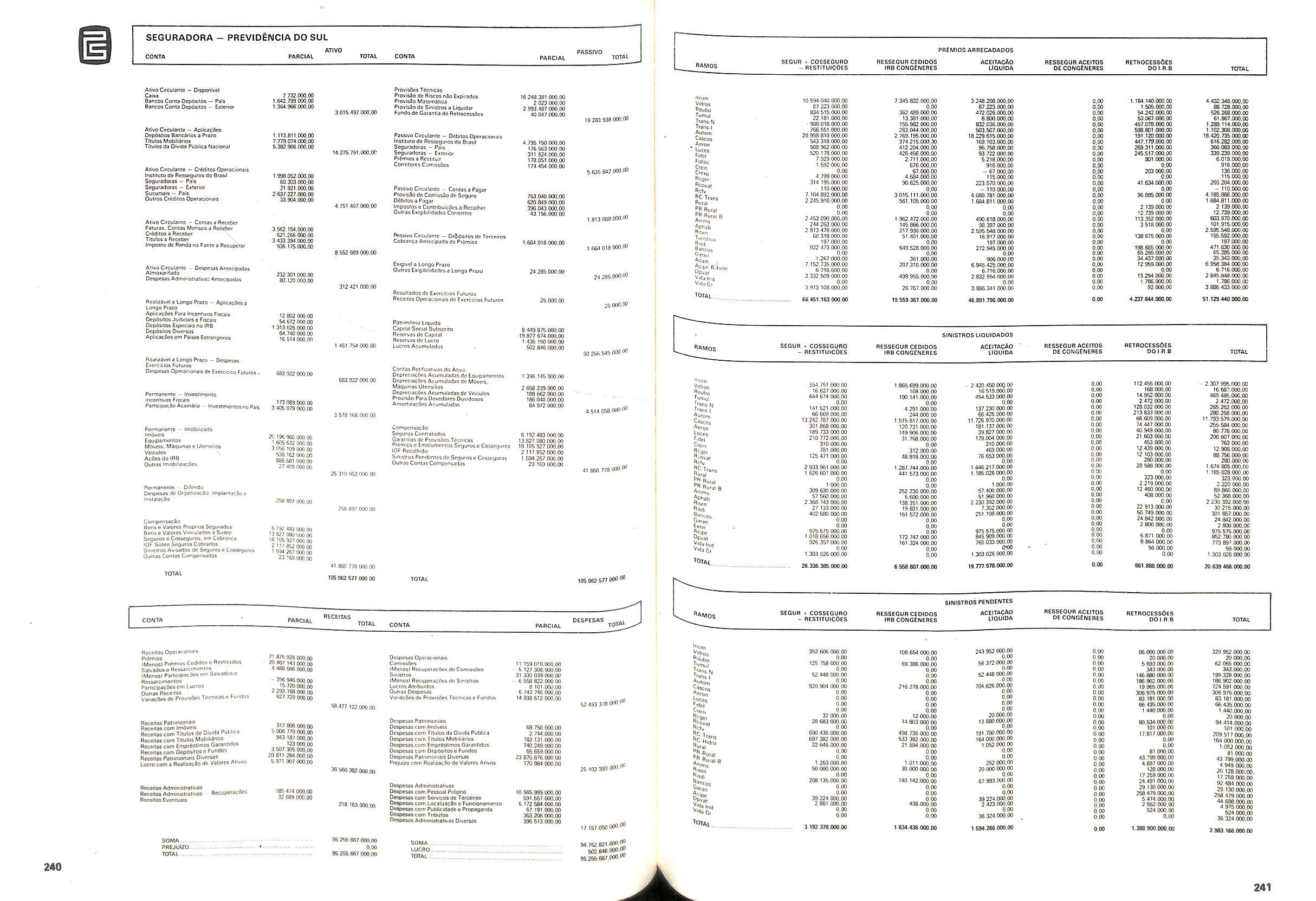 V Balan^o das Seguradoras no Brasil pag,lOO