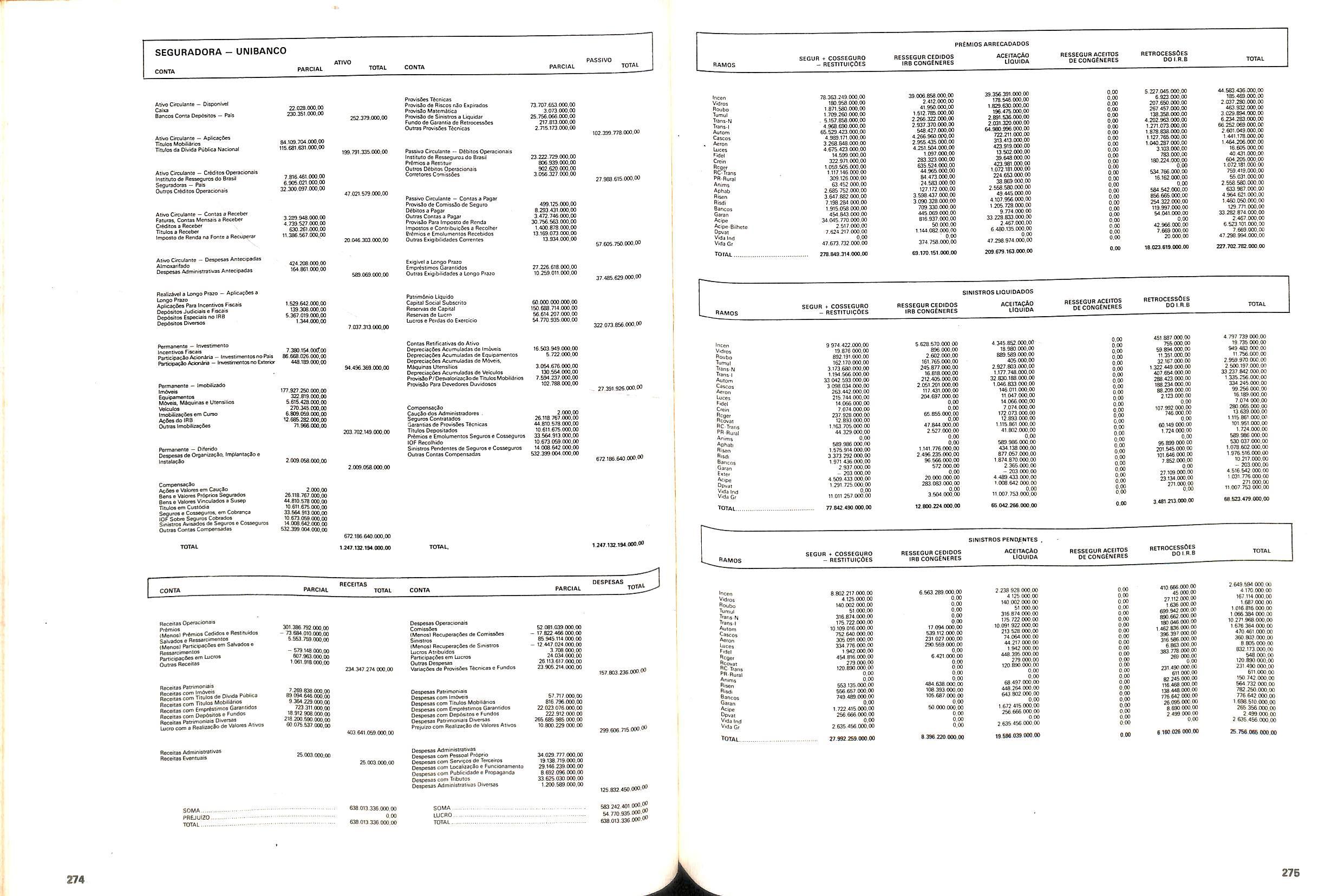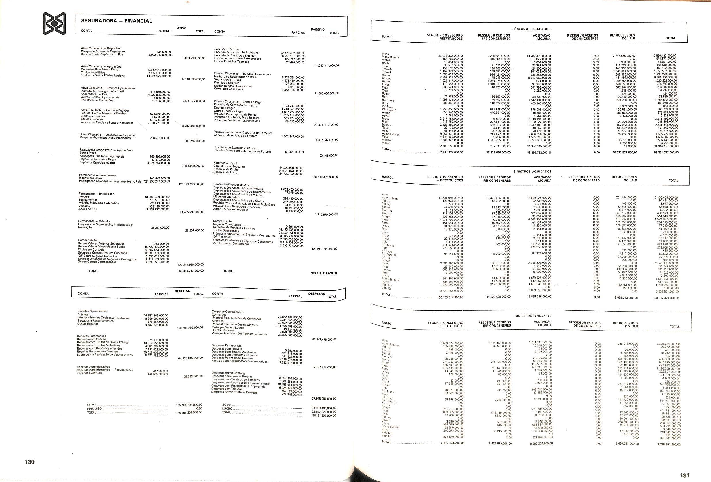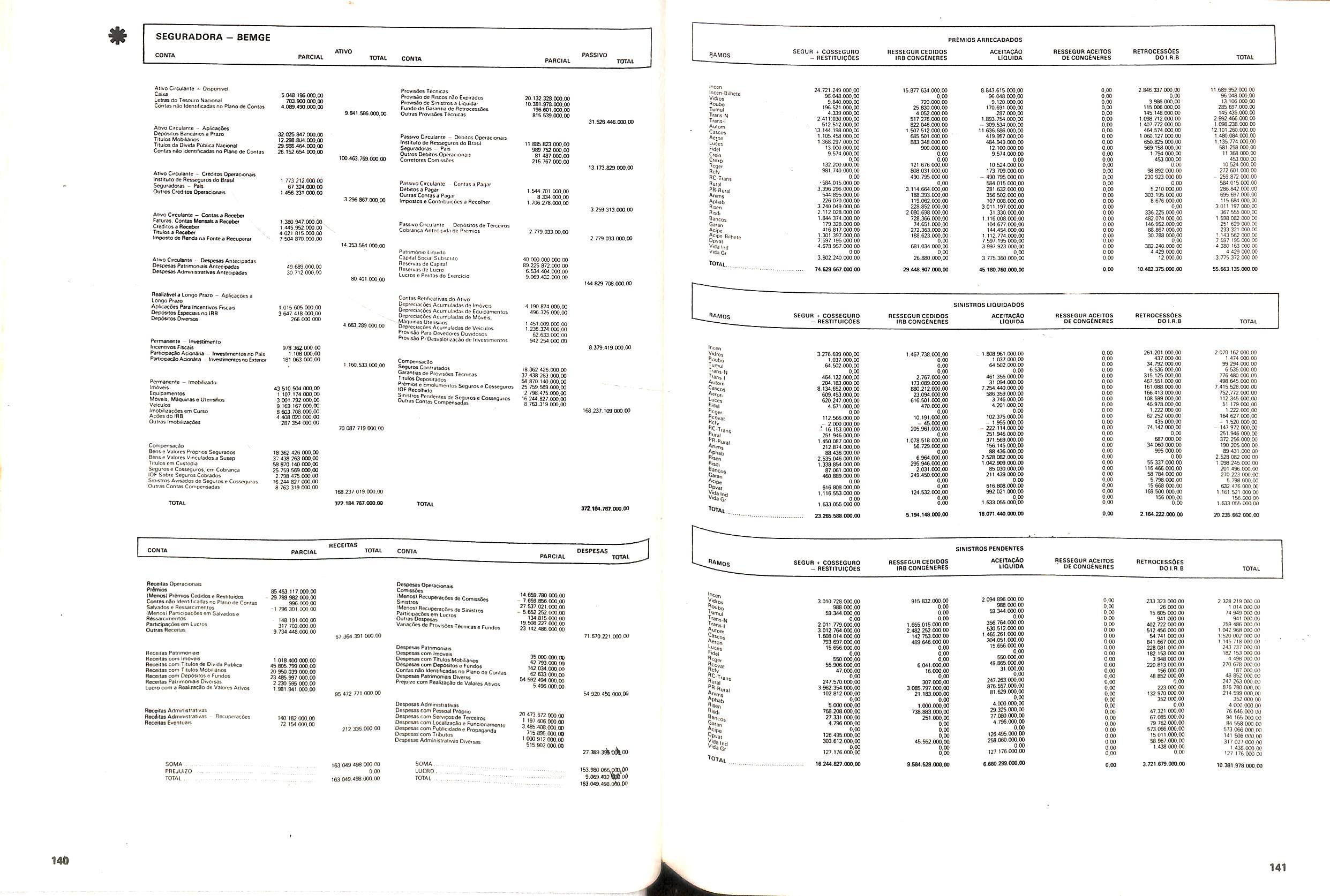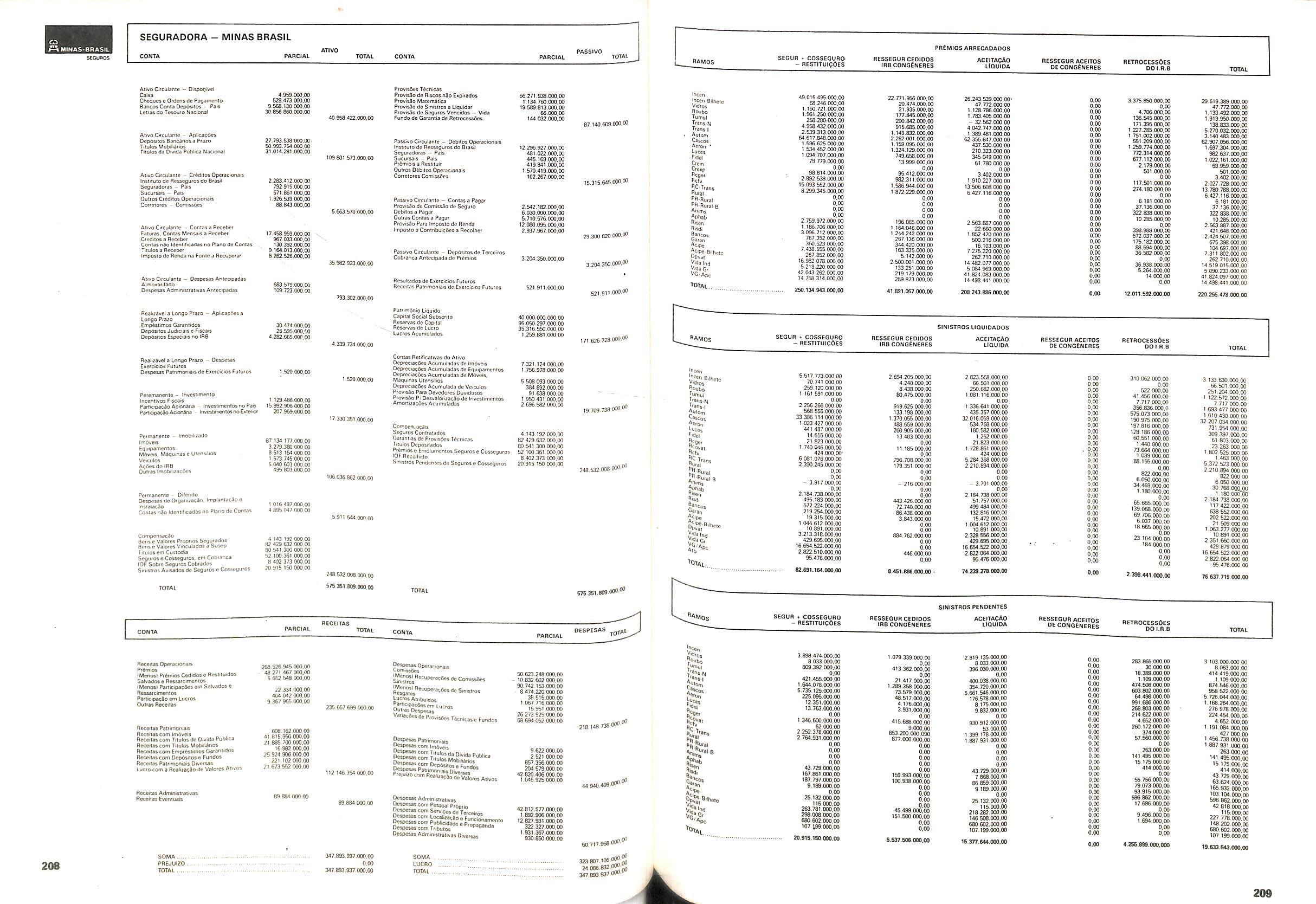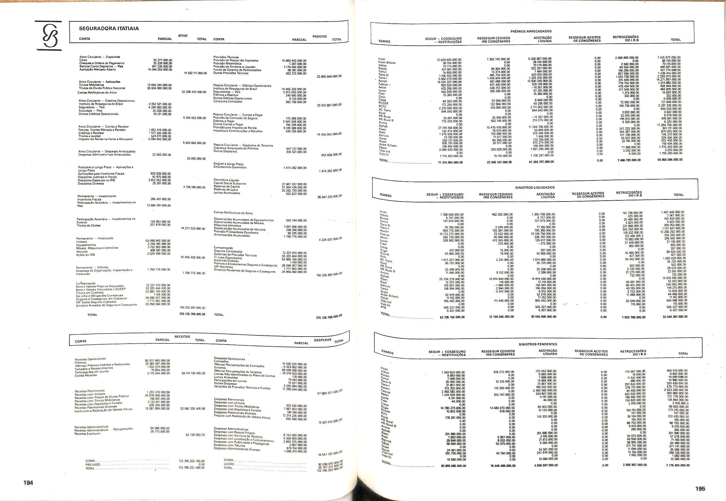 V Balan^o das Seguradoras no Brasil pag,lOO