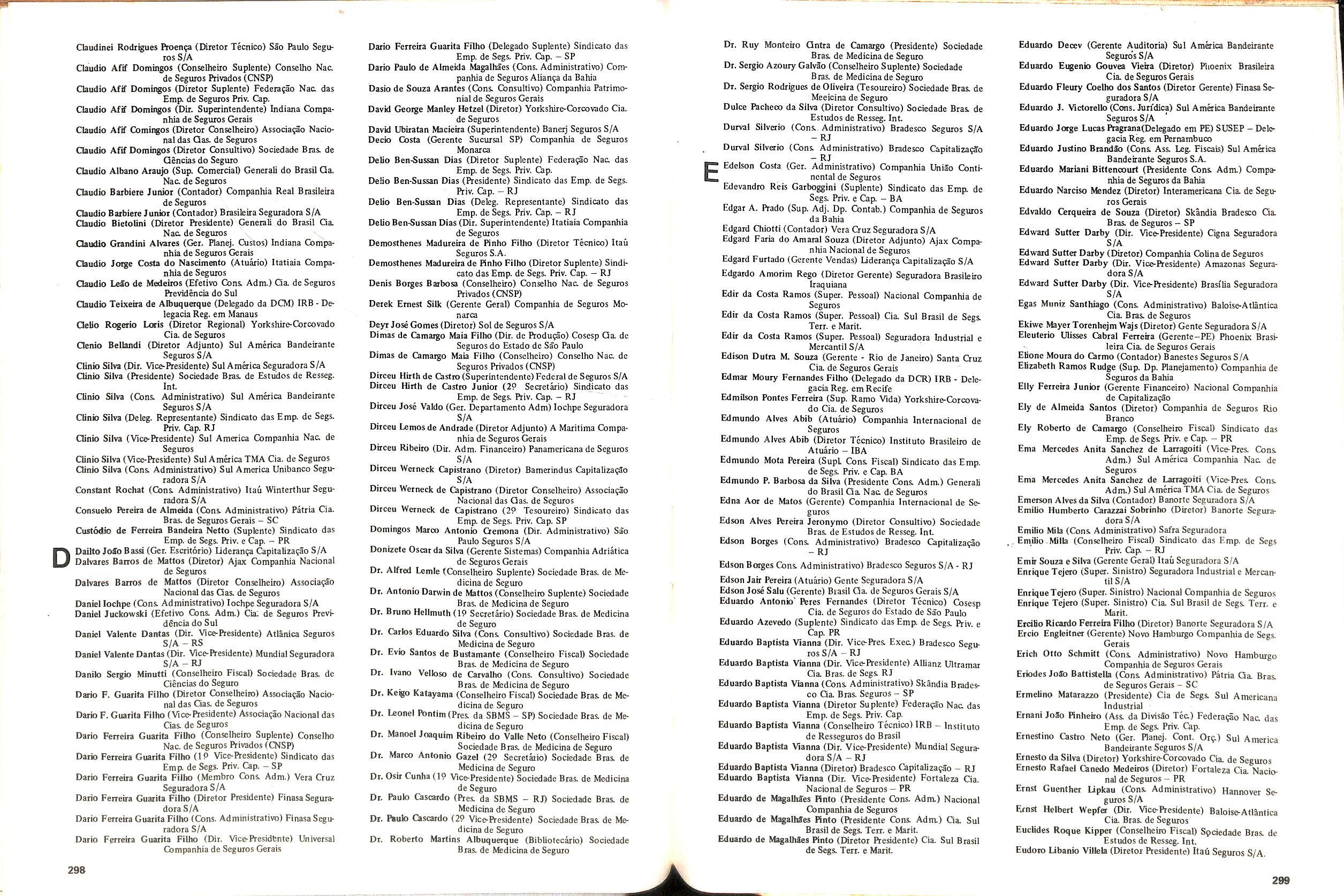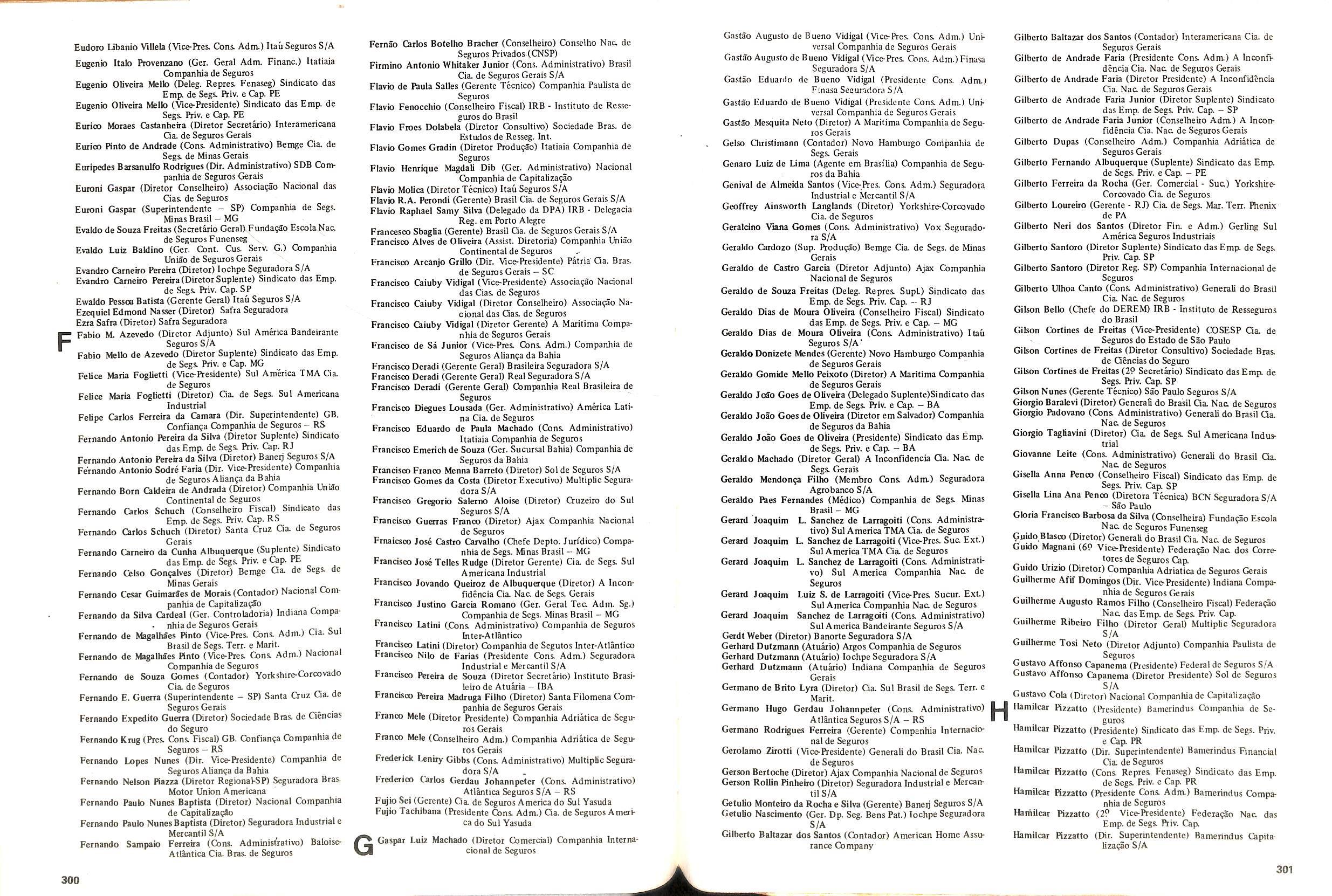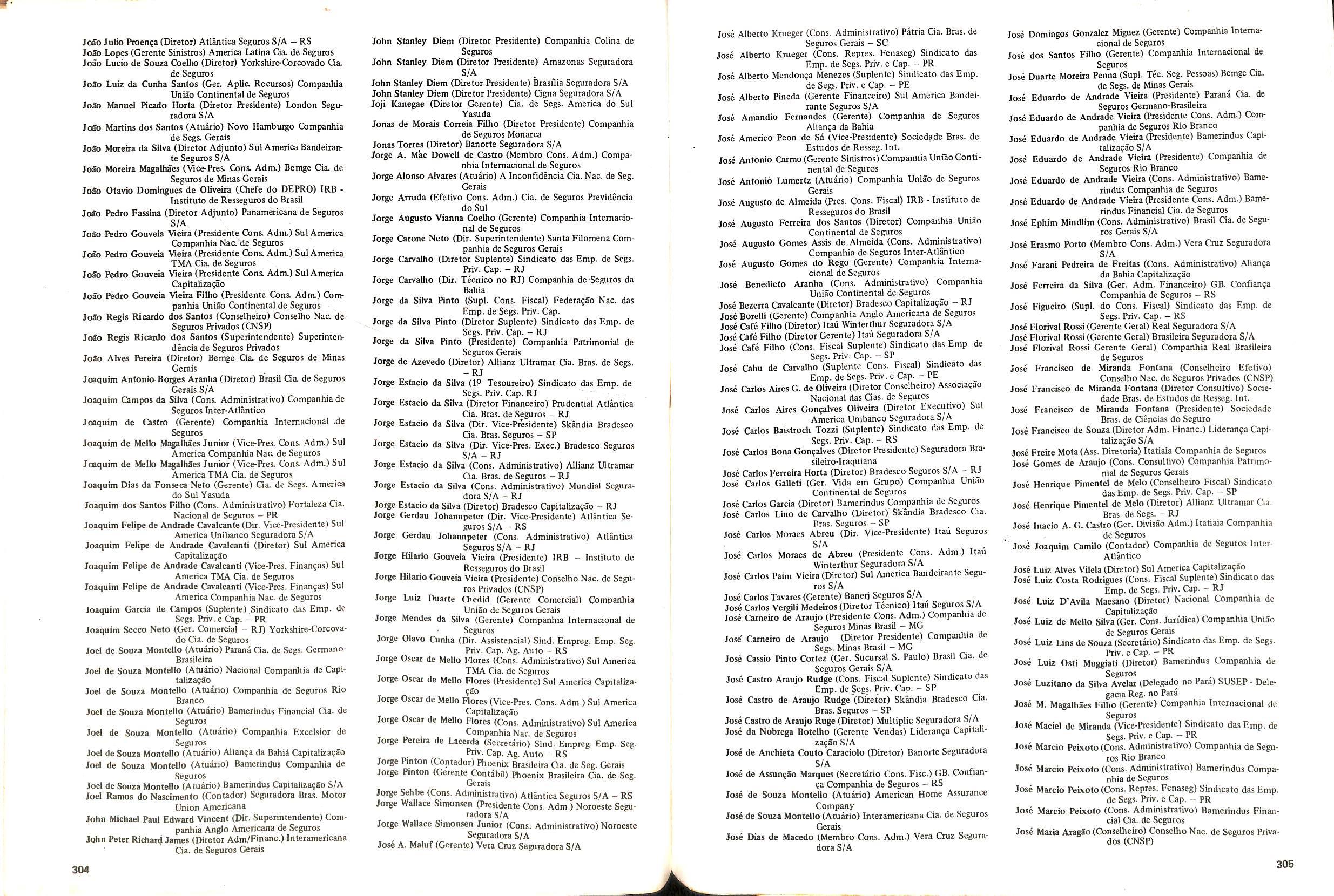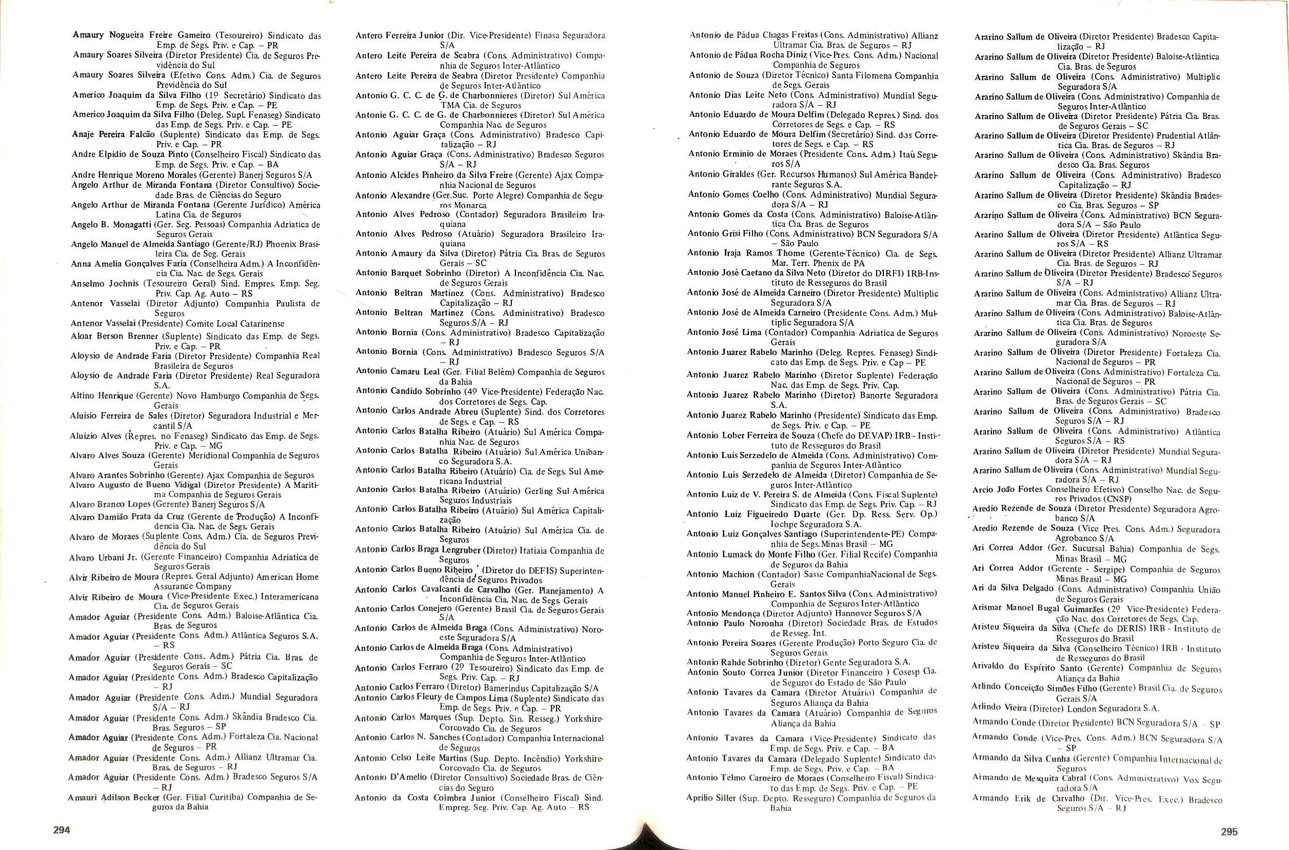 Walter Jose Bairos Gianeiro (Secretmo) Conselho Nac. de Segu ros ftivados(CNSP) , Walter Melega Fiotezzi(Ger. Sucursal - SP)Companhia de Segu ros da Bahia