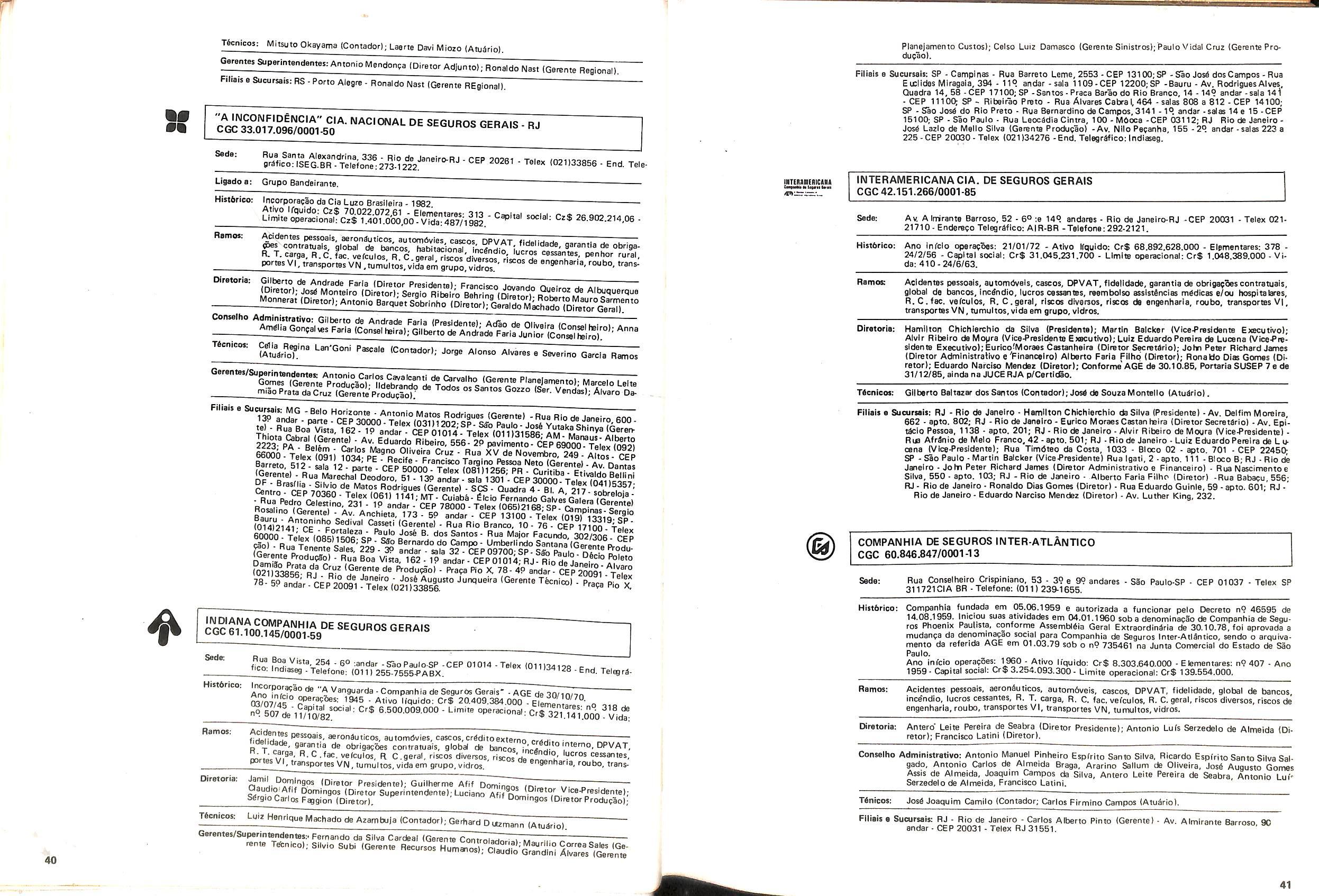 Gerentes Superintendentes; Alvaro UrbanI Jr. (Qer. Financeiro), Angela 6. Monegatti (Ger. Seg. Pessoas), Carlos Alberto Rolo (Ger. Tficnico), Carlos Roberto Marques (Ger, SInistros), Donizete Oscar da Silva (Ger. Slstemas), Jos6 Santos Silva (Ger. Transportes), Ovidto Favero (Ger. Comercial), Saverio Nasaill Rocca (Ger. Grandes Clientes).