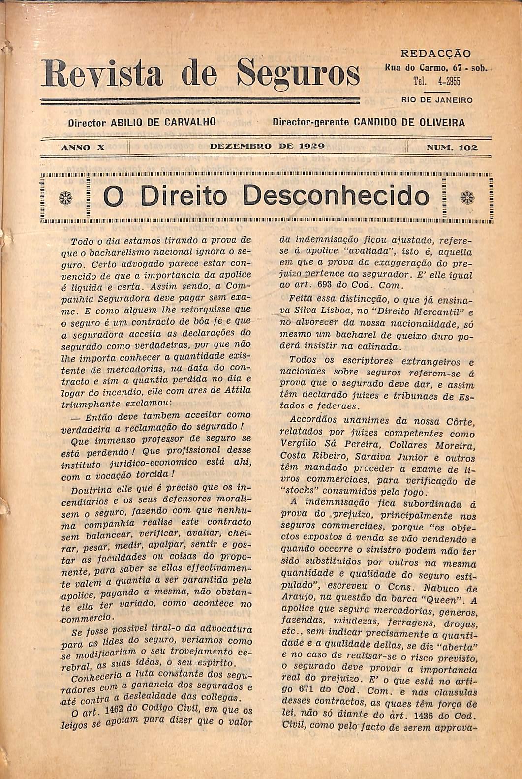 Se fosse possivel tiral-o da advocatura -gara as Udes do seguro, veriamos como se modiflcariam o seu trovejamento ce rebral, as suas idias, o seu espirito. • Conheceria a luta constante dos segu■radores com a ganancia dos segurados e ati contra a deslealdade das collegas. 0 art. Codigo Civil, em que os leigos se Opoiam para dizer que o valor