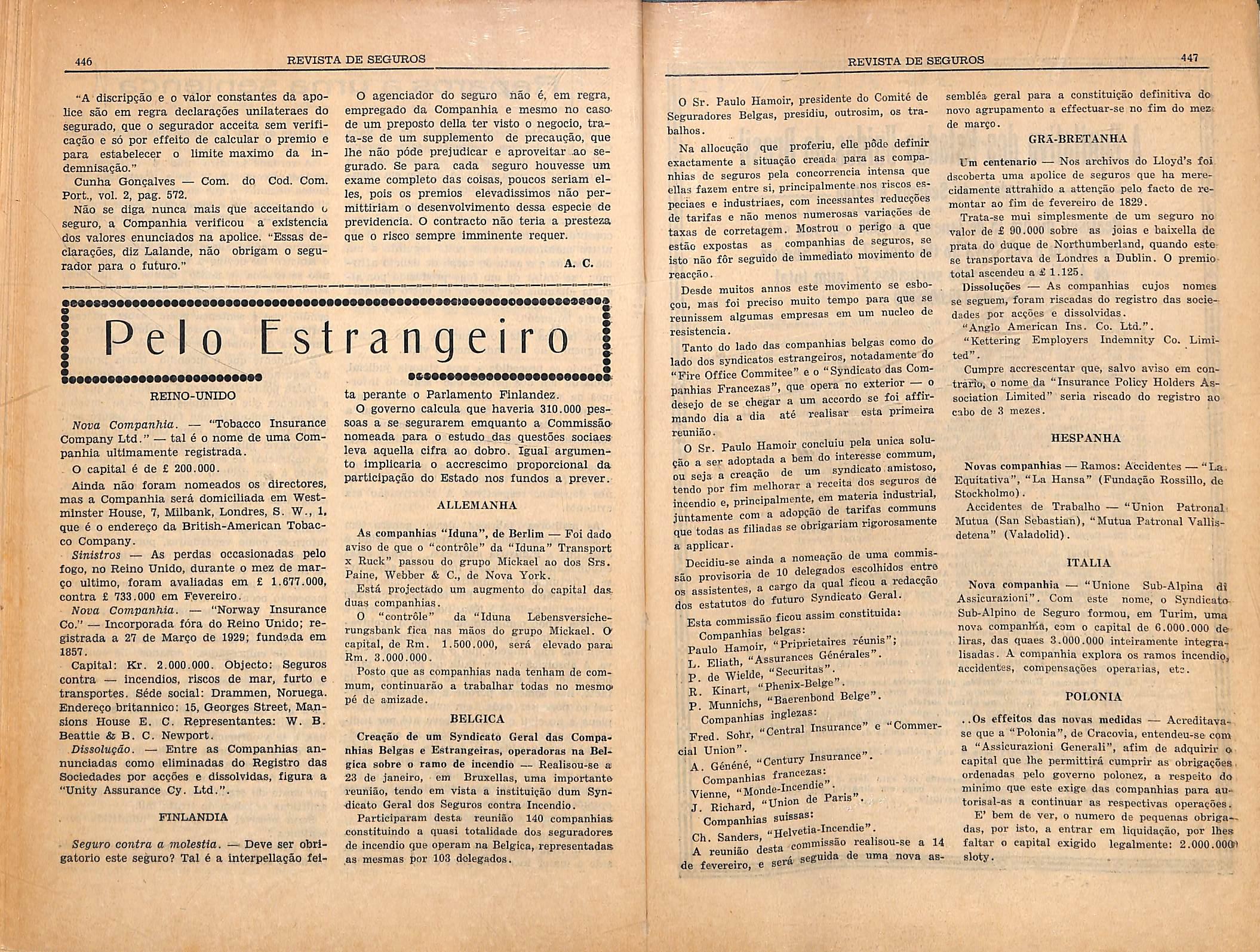 das pela Inspectoria de Seguros, de accordo com o art. 8 do Decreto de 31 de Desembro de 1924.