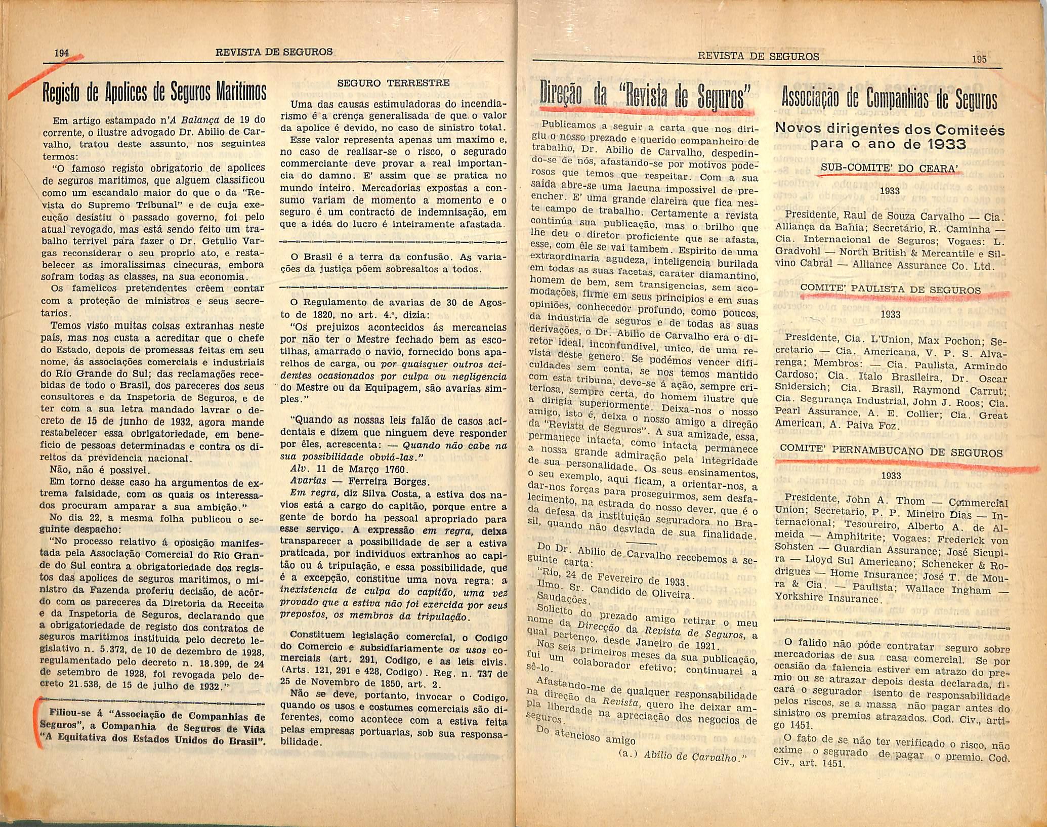 O Dr. Eneas de Faria Melo acaba de publicar um livro com a legislagdo sobre seguros e a jurisprudencia respecliva, da qual destacamos: