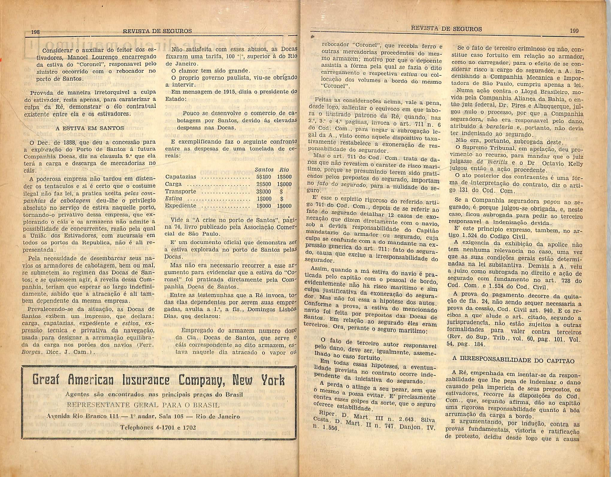 Falamos acima em civilisagdo. Se a possutssmos Jido haveria a compreensdo absurda de governas, juizes e de certas pessoas de destaque social sobre os seguTOs; ndo veriamos o sorriso zombe^ teiro de um ingles, tecnico nessa materia, sobre opinloes saidas da bdca de um desses magistradas, num julgamento a que assistiu, numq segunda instancia. Errpa que levariam d reprovagdo imediata qualquer aluno, numa terra em ■gue 0 ensino fosse airio...