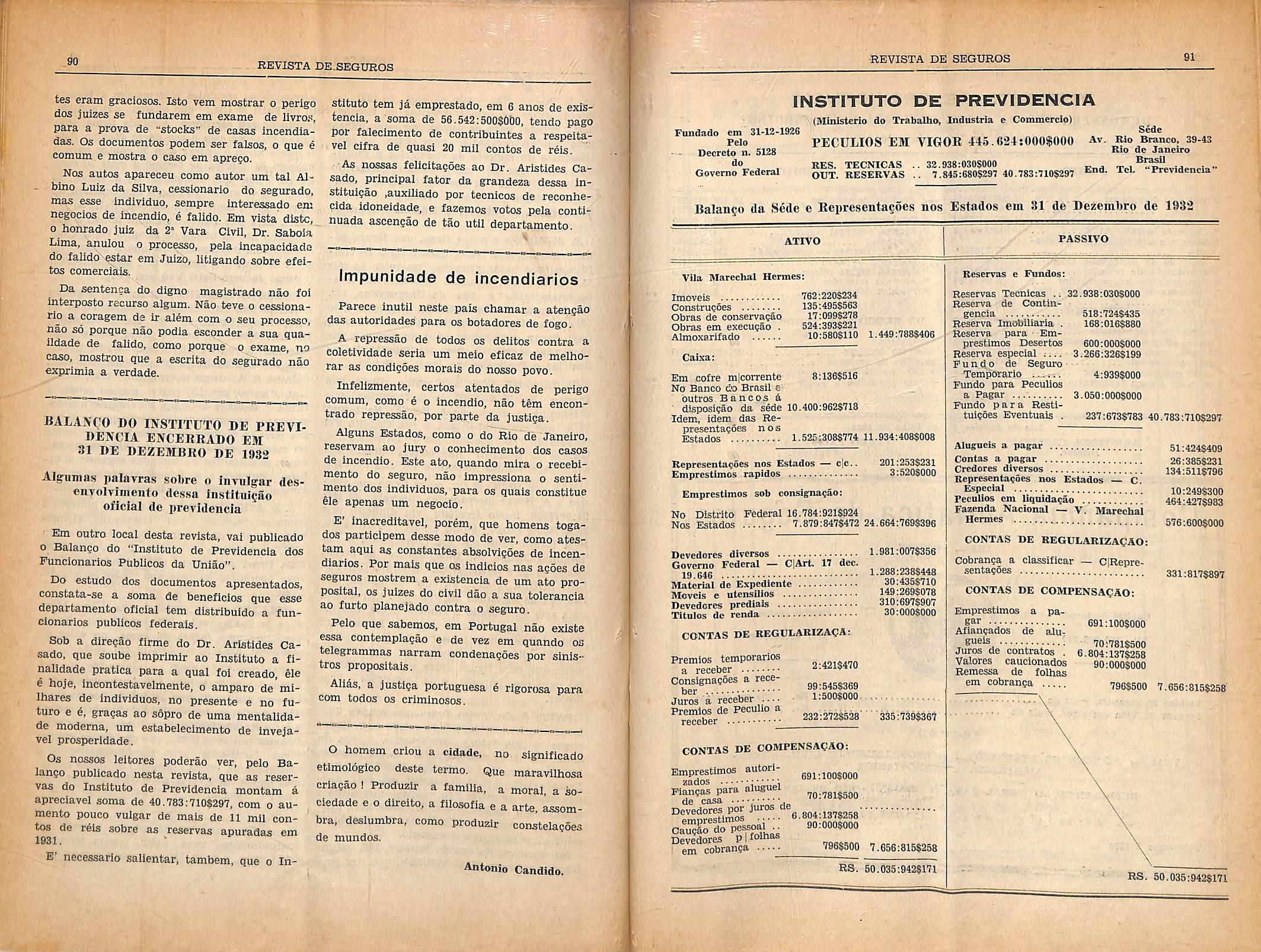 Sinistros pages desdc a ftmda^ae, em 1931, mais dc 30.000;0(H}$000