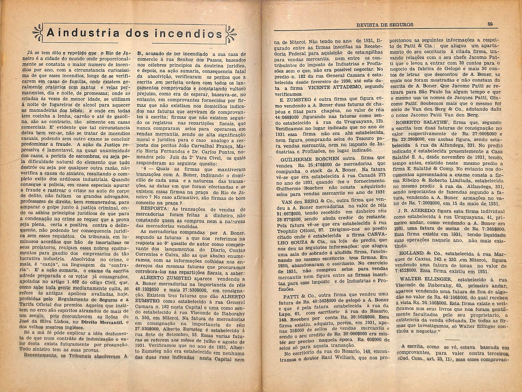 A exveriencia tern demonstrado que so ardem as casas em mas condigoes. n fZjo e frequents nas ocasioes de batxas violentas de pregos; quando ha um cmtTato de locagdo a termxnar. quando o "stocA:" e dlminuto e o seguro eleya- dn auando ha desvios de meTcadonas; nuando as cousas desusadas do uegocio sZ numerosas; quando emfim, o comercLite vai xnal, nao fazendo negocio ^tendo contas a pagar.