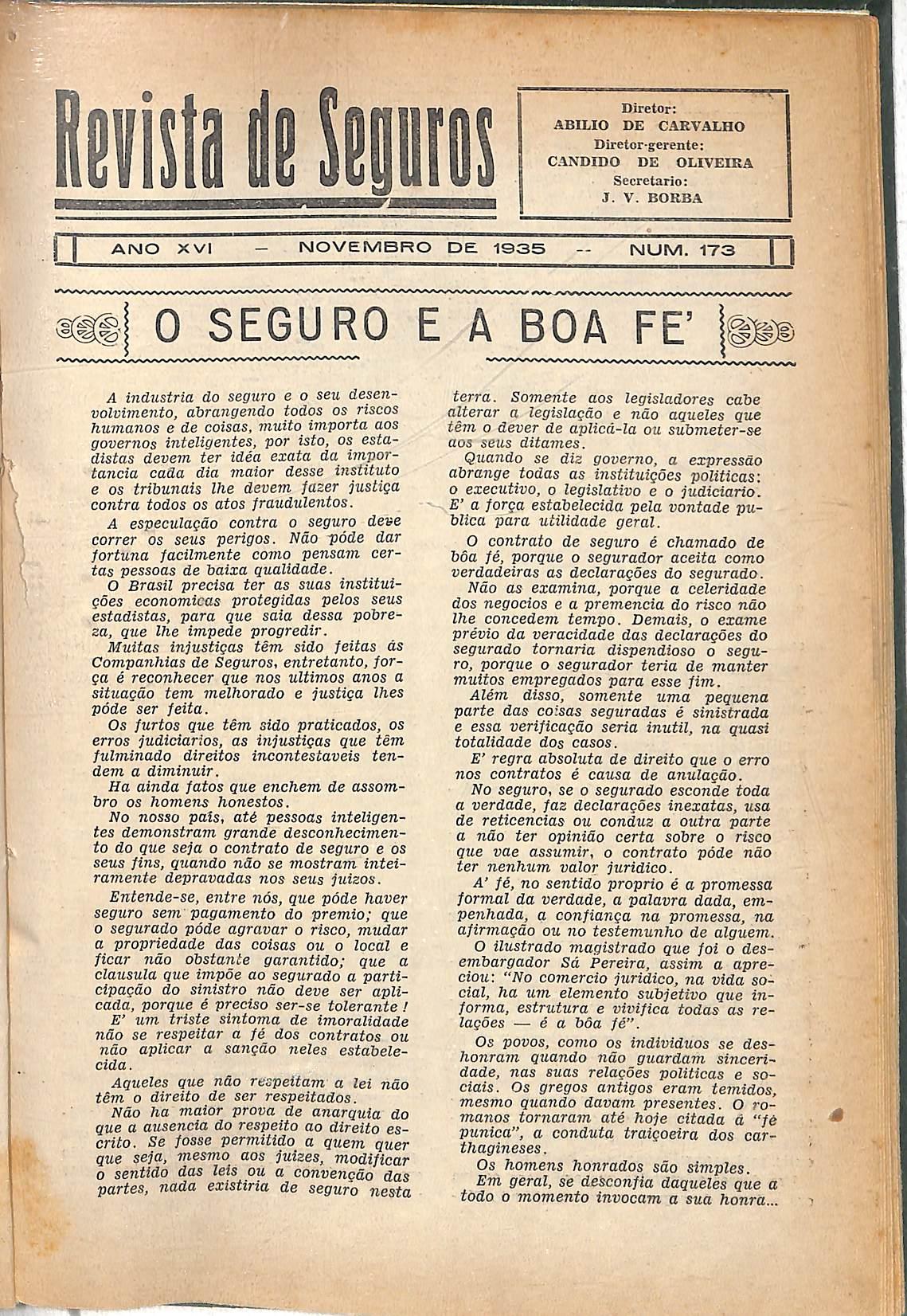 mens de bem. O seu retrato moral k um clarao que ilumfna o caminbo dos que vivera do seguro no Brasil.