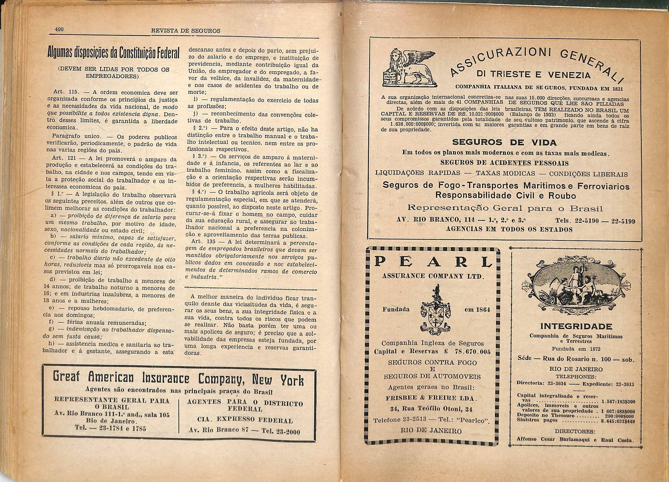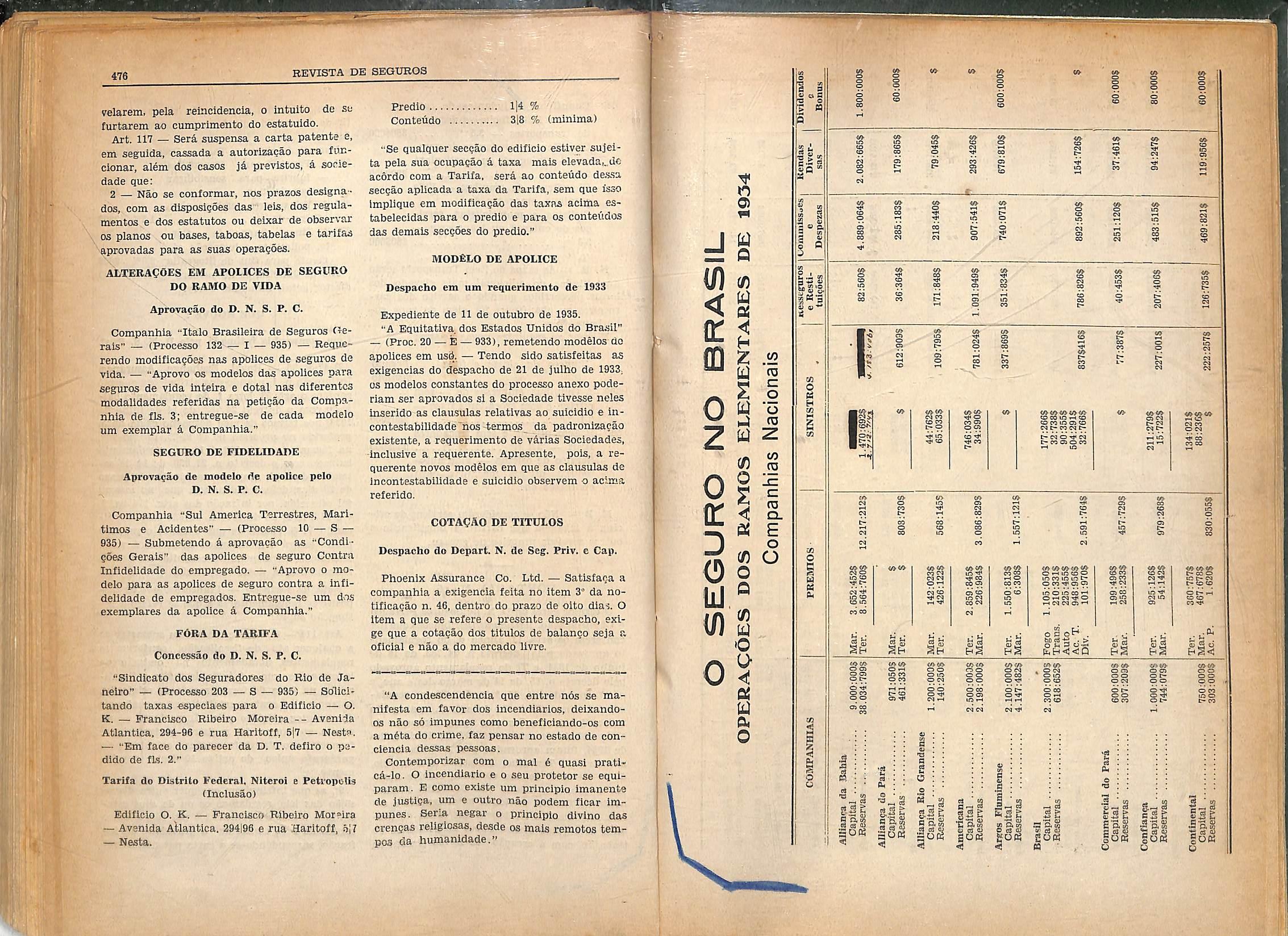 A recelta geral, segundo 0 relatorio de 1934, e de cerca de 34 mil contos de reis. E' para notar ter bavido anos em que as indenizagoes feitas aos seus segurados ascenderam a nove mil contos em cada exercicio.