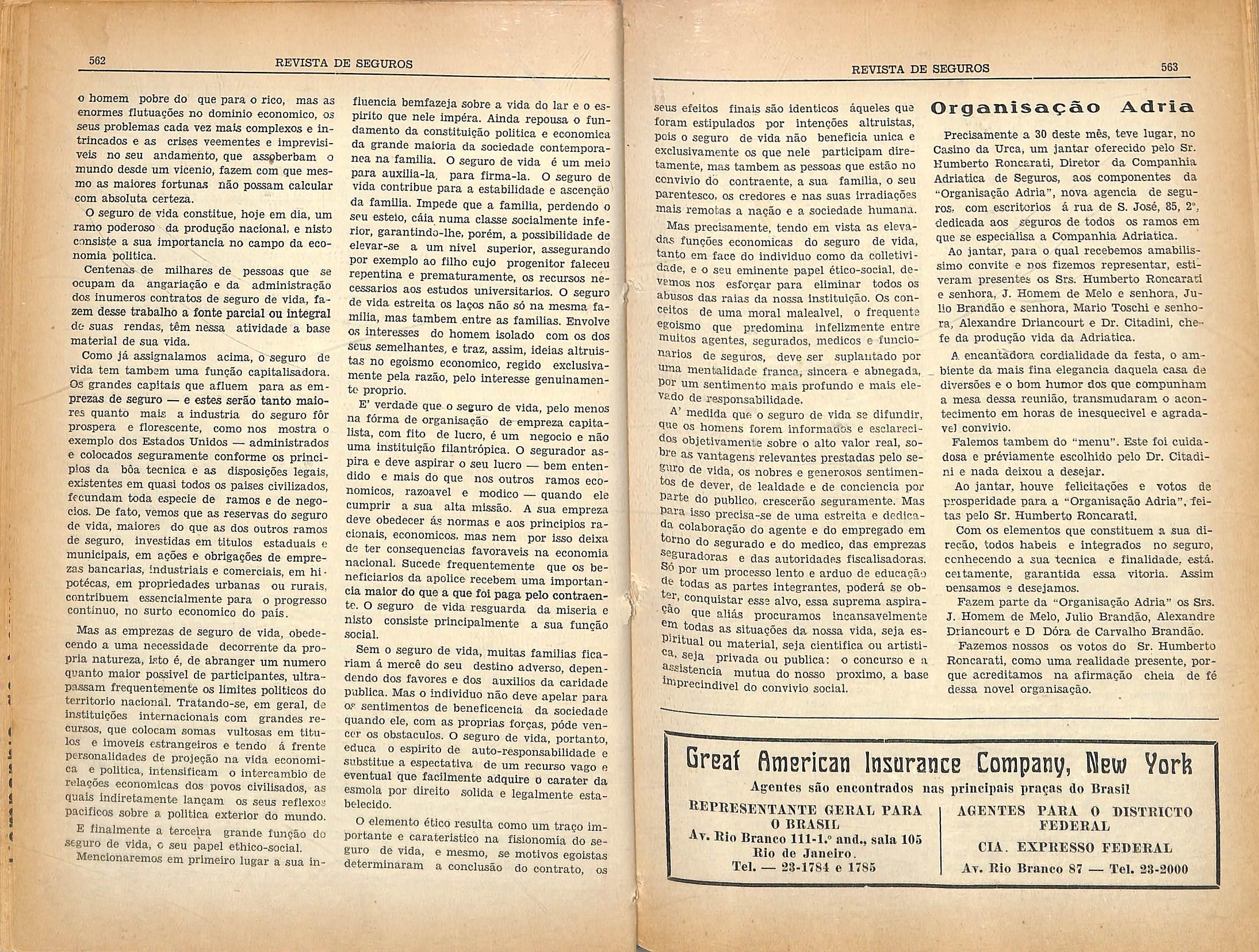 Nao possue, nem mesmo nas cidades mais populosas, um escrltorlo de corretor, a que uma pessoa se possa dirlgir e encarregar de fazer os seus seguros, com conhecfmento exato do contrato.