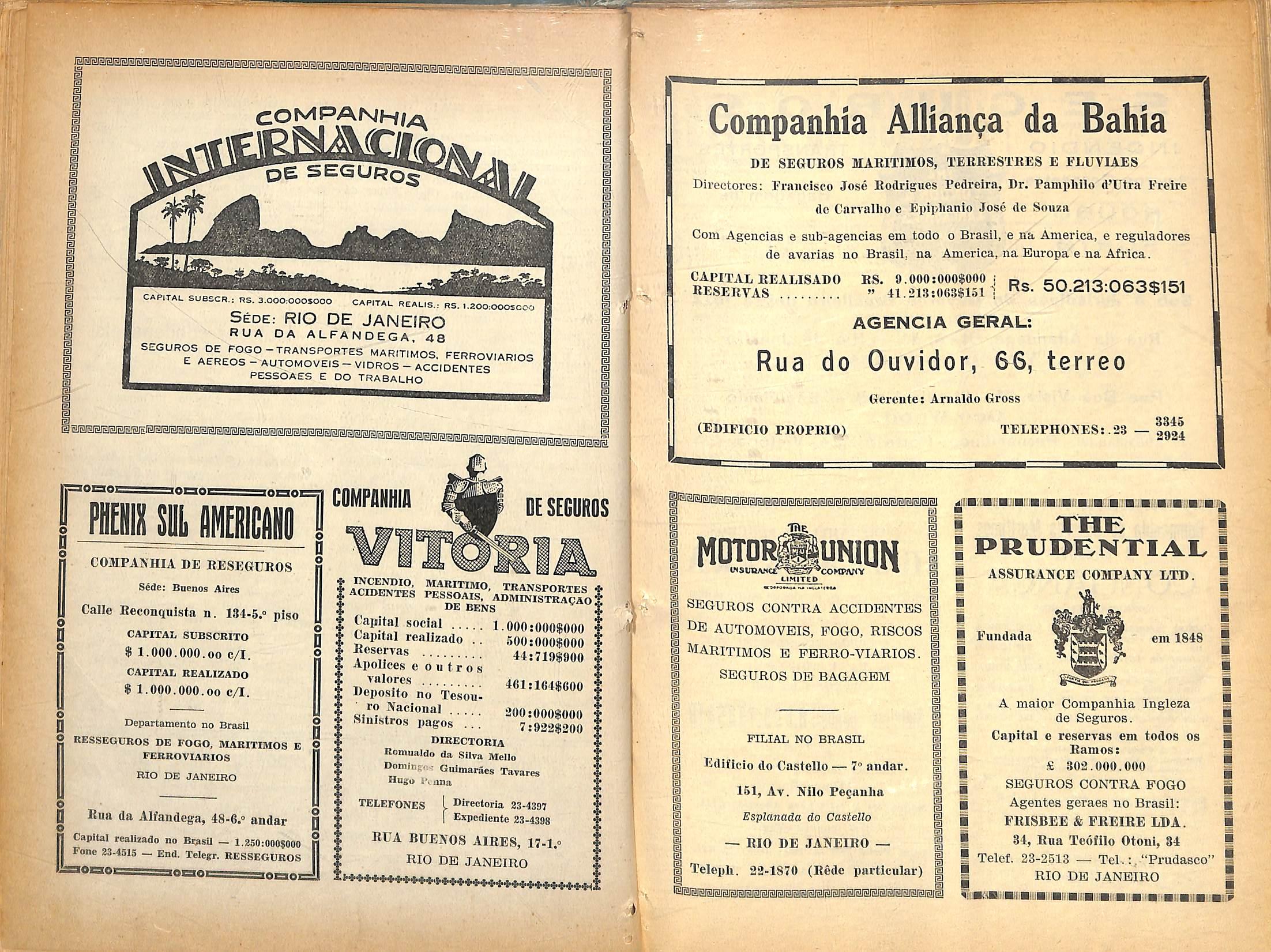Telephones 23-3S6S 33-3965 RUA DA ALFANDEGA, 49 (loja) Rio de Janeiro S 5 tie Incendio jj e Transportes J a Capital integralizado 5 Rs. 1.000:000sii000 S FUNDADA EM 1903