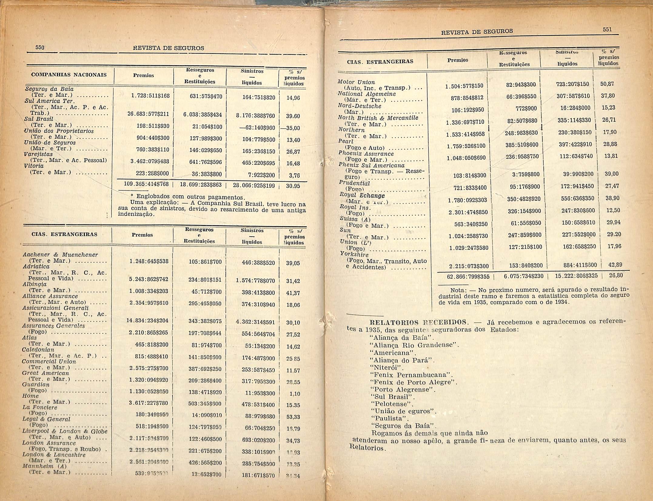 que, pelo Balance dessa segutadora, publicado no mesmo numero da "Revista de Seguros", as Reservas estao ai representadas pela Impresslonante cifra de 293.755:0475530.