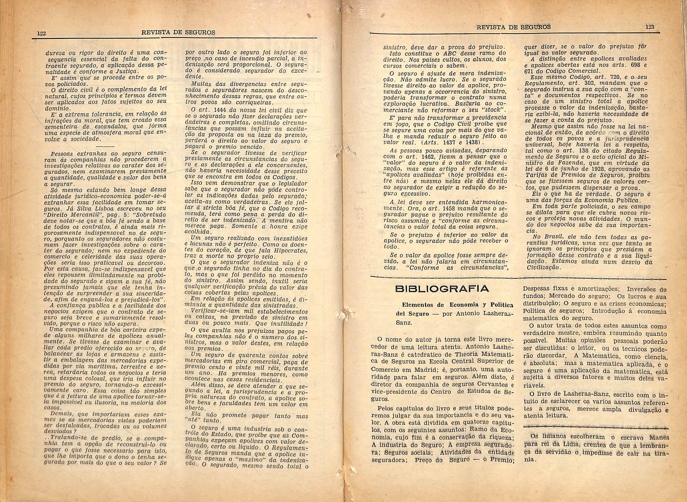 O livro de Lasheras-Sanz, escrito com o intuito de esclarecer os varies assuntos referentes a seguros, merece ampla dlvulgagao e atenta leitura.