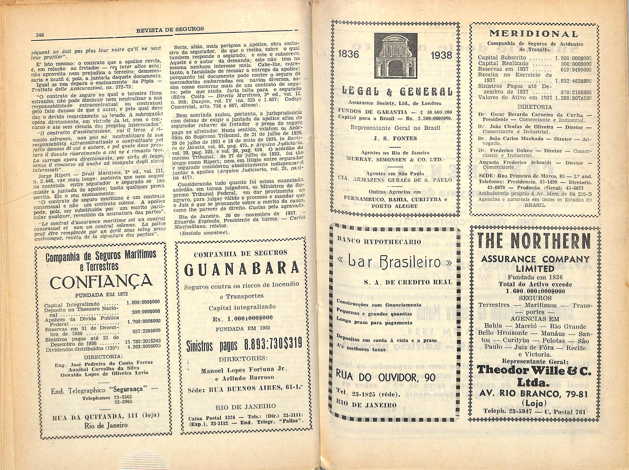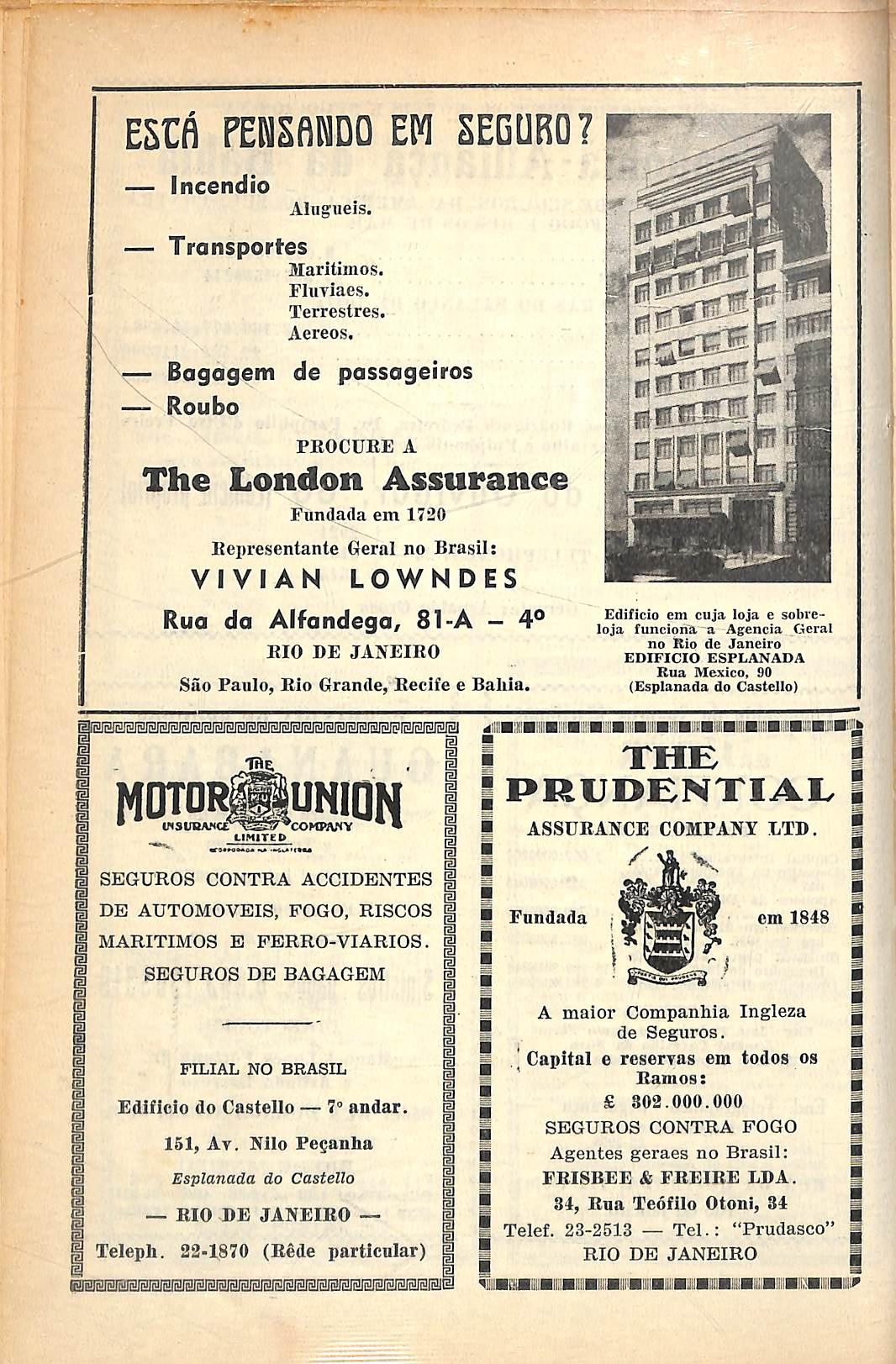 SEGUROS CONTRA ACOIDENTES DE AUTOMOVEIS, FOGG, RISCOS MARITIMOS E FBRRO-VIAHIOS.